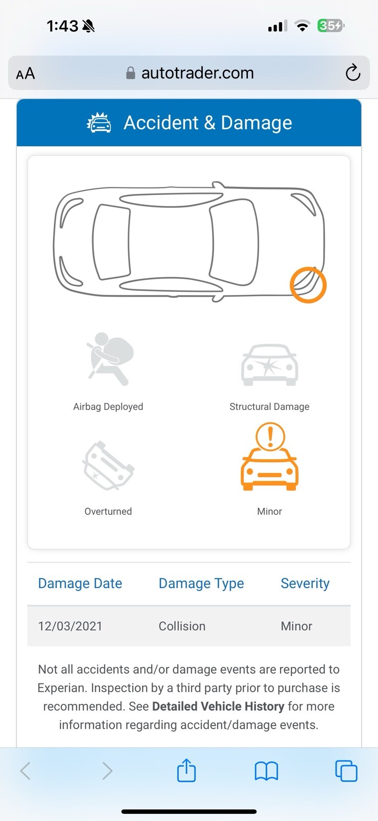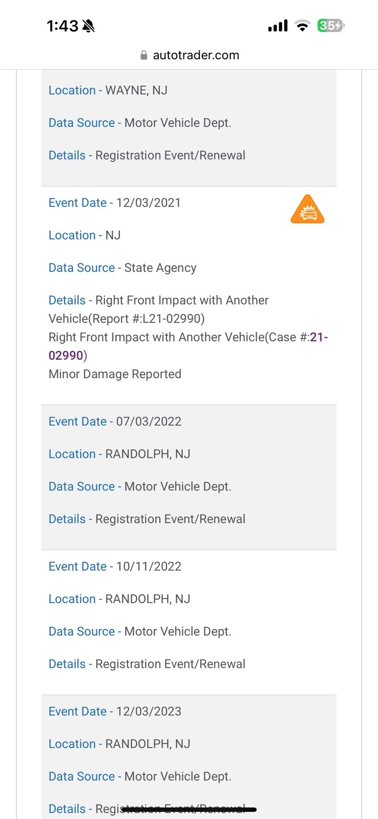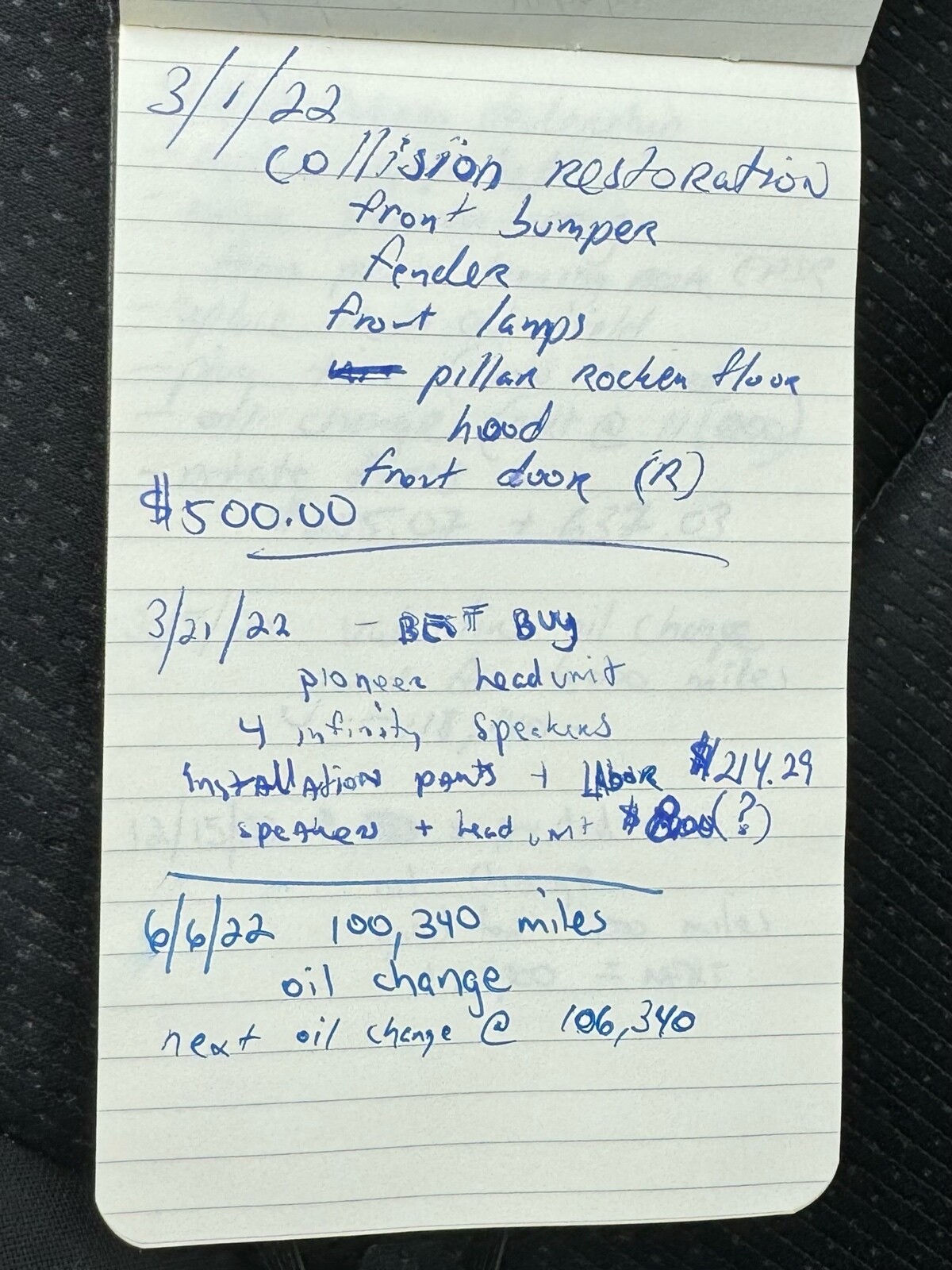 One tiny accident front end. See notes. Everything fixed perfectly. All records available.