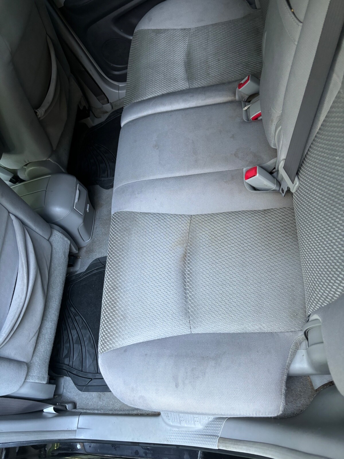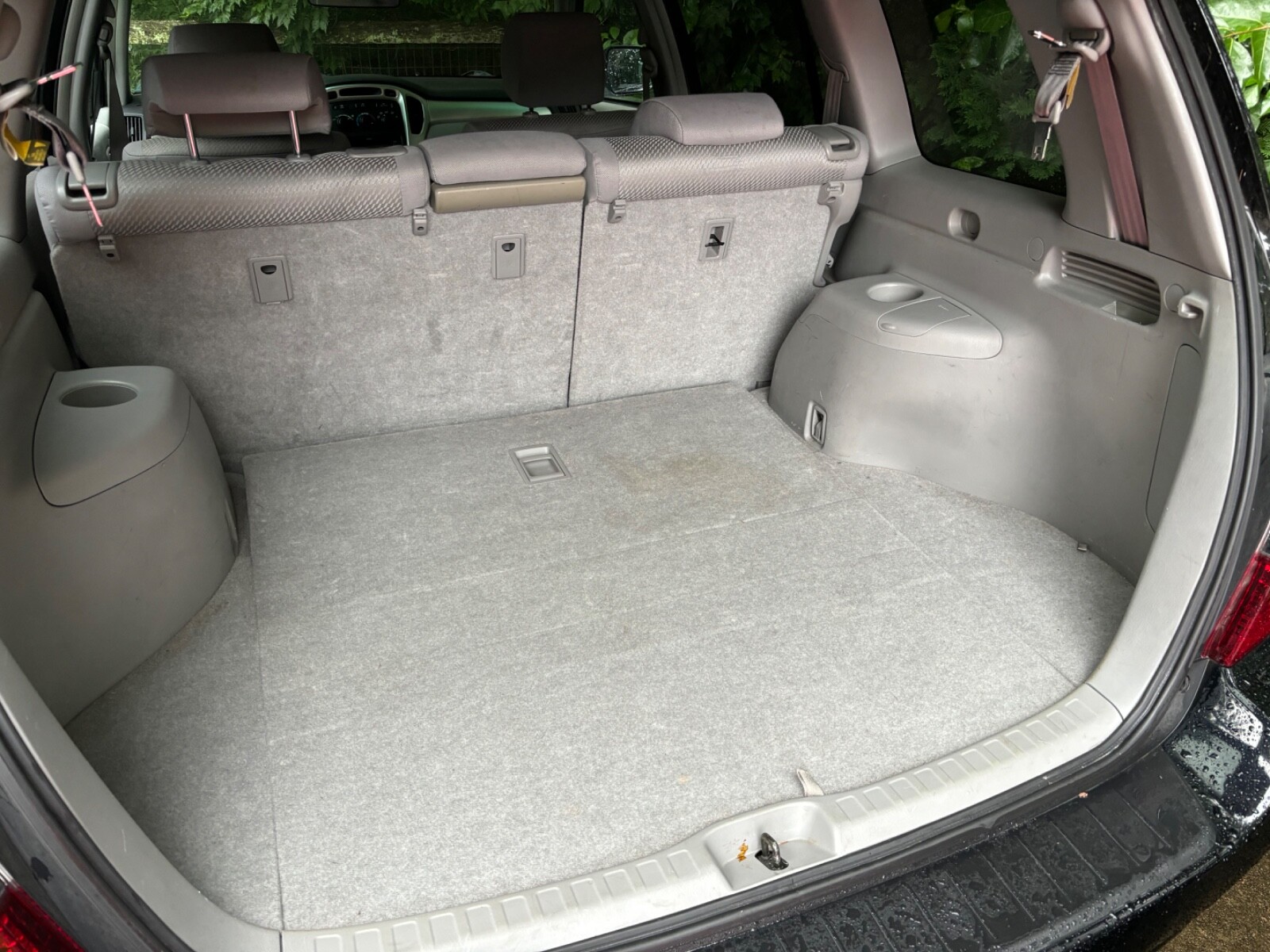 SUV is in good condition for age, low miles, kept in a garage. Two sets of keys and car has had regular maintenance. There are scratches on the front left of body and a dent in the roof ( hard to see, particularly in pictures). Inside is in decent shape; as the dashboard looks good and everything works. There is some staining in the second row and passenger seats, but there are no tears or rips in the cloth.