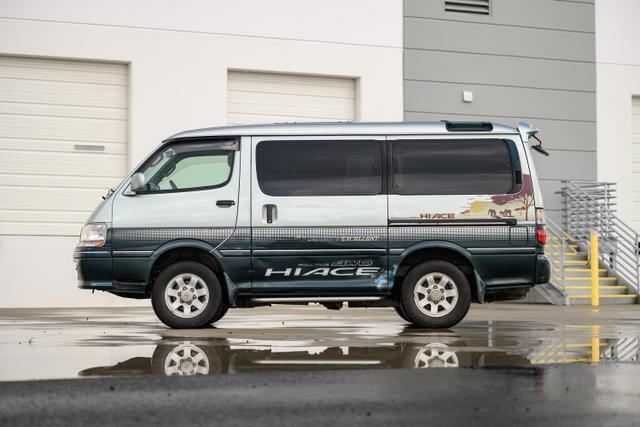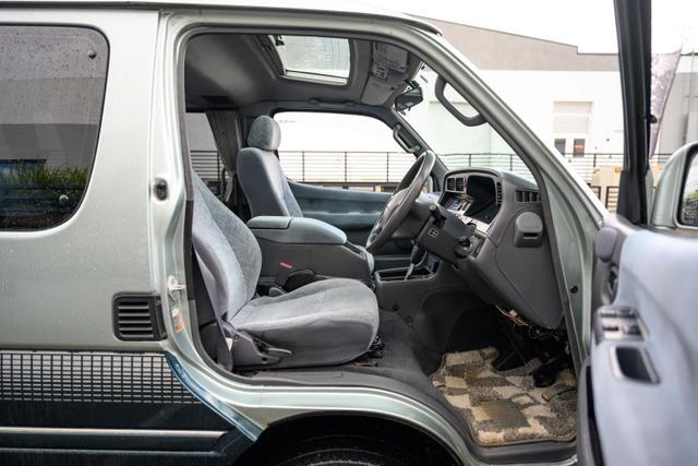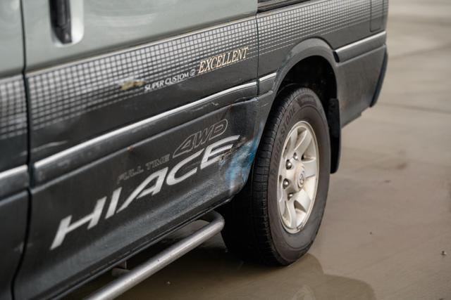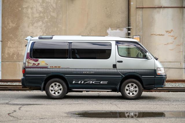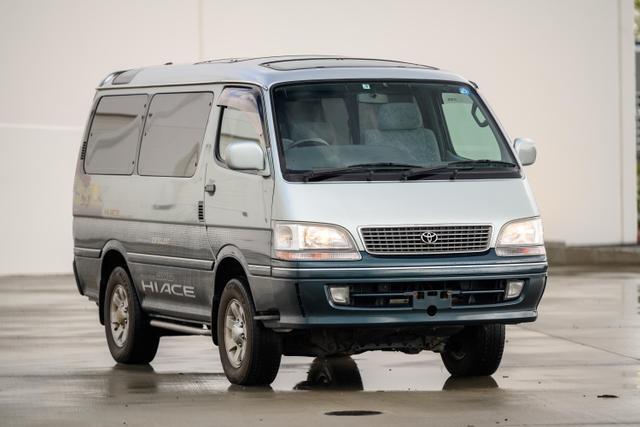 The KZH106 Hiace Super Custom G Excellent is THE 4WD van to have and the perfect companion for your next series of adventures. An excellent mix of features and utility, these vans are great as people haulers, low key campers, and for dirt road or cross country excursions. Toyota's Fulltime 4WD system paired with the 3.0 liter 1KZ-TE turbo diesel makes for a highly capable platform both on and off road and in any season. This van features a lot of pretty cool factory options such as rear TV, Cool Box w/ ice maker, power curtains, and more! Despite the higher miles, it runs and drives quite well and presents nicely (if you ignore its kind of ugly passenger side). It was imported in February 2024 and is offered for your consideration.