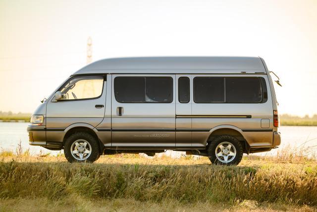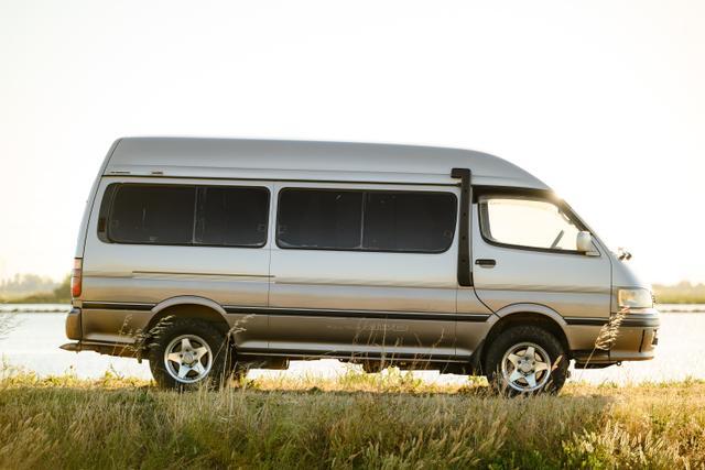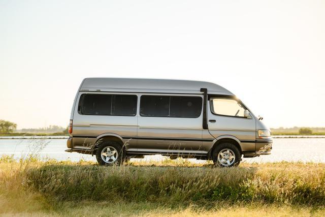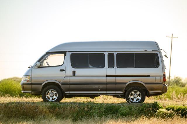 The KZH138 spec Toyota Hiace is THE Hiace to have if you are looking to build your own adventure van. The long wheel base and high roof paired with Toyota's 1KZ-TE turbo Diesel engine and Full-time 4WD system is an extremely rare combination. With the KZH138 you have the most possible room for a build out in a Hiace platform, a truly highway capable engine (compared to the slow but steady '3L' NA diesel most commonly found in the larger variants), and a formidable 4WD system ready to tackle any terrain you throw at it (within reason - it is a van after all). This particular specimen is currently equipped with a minimalist camper setup (complete with a dinette, bed, and a 'kitchen') and can be enjoyed right away - just toss in your gear and go. It can also easily serve double duty as a people hauler with seating for 8. It is a solid rig with up-to-date maintenance that runs and drives like an absolute champ. It was imported from Japan in February 2024 and is offered for your consideration.