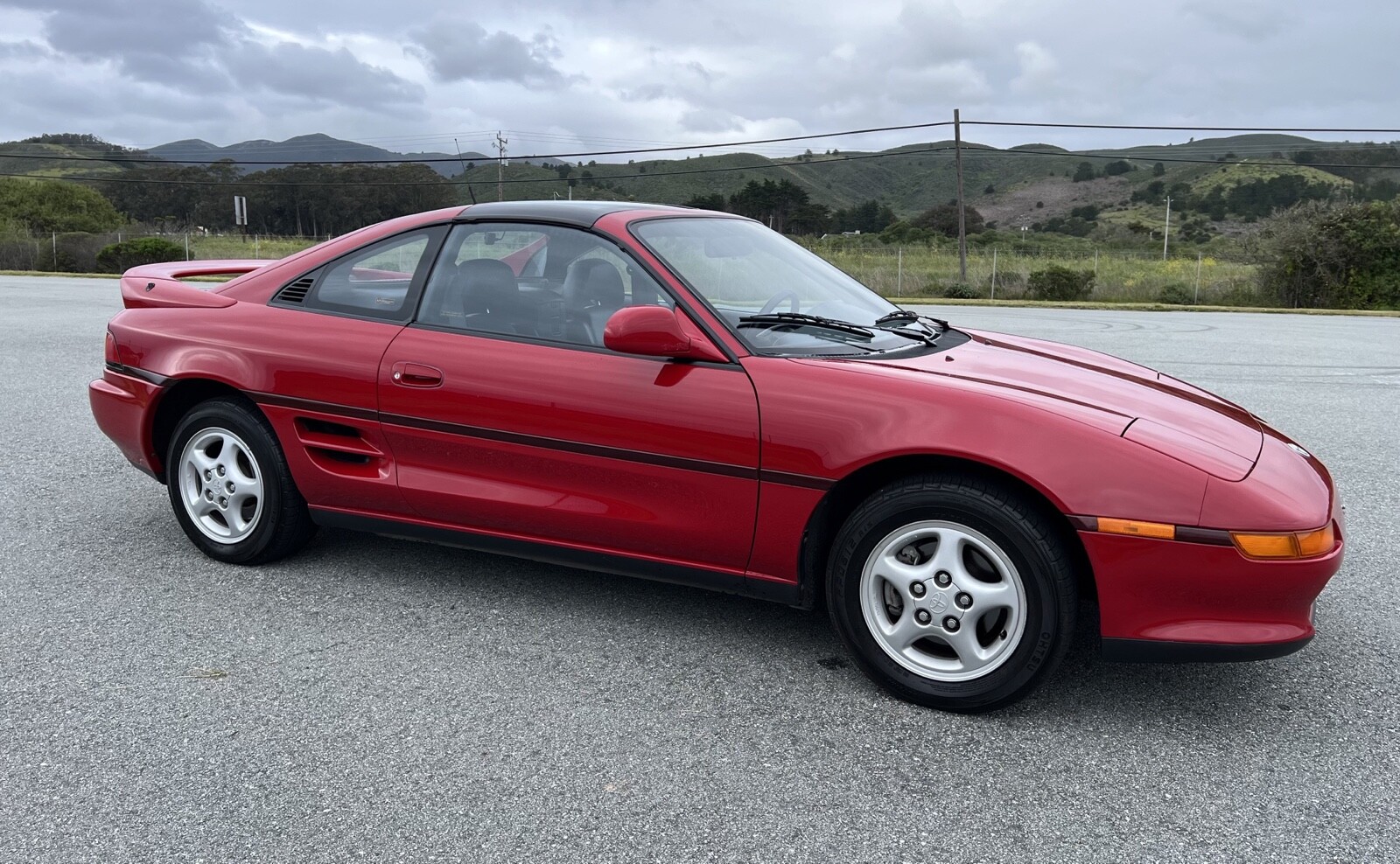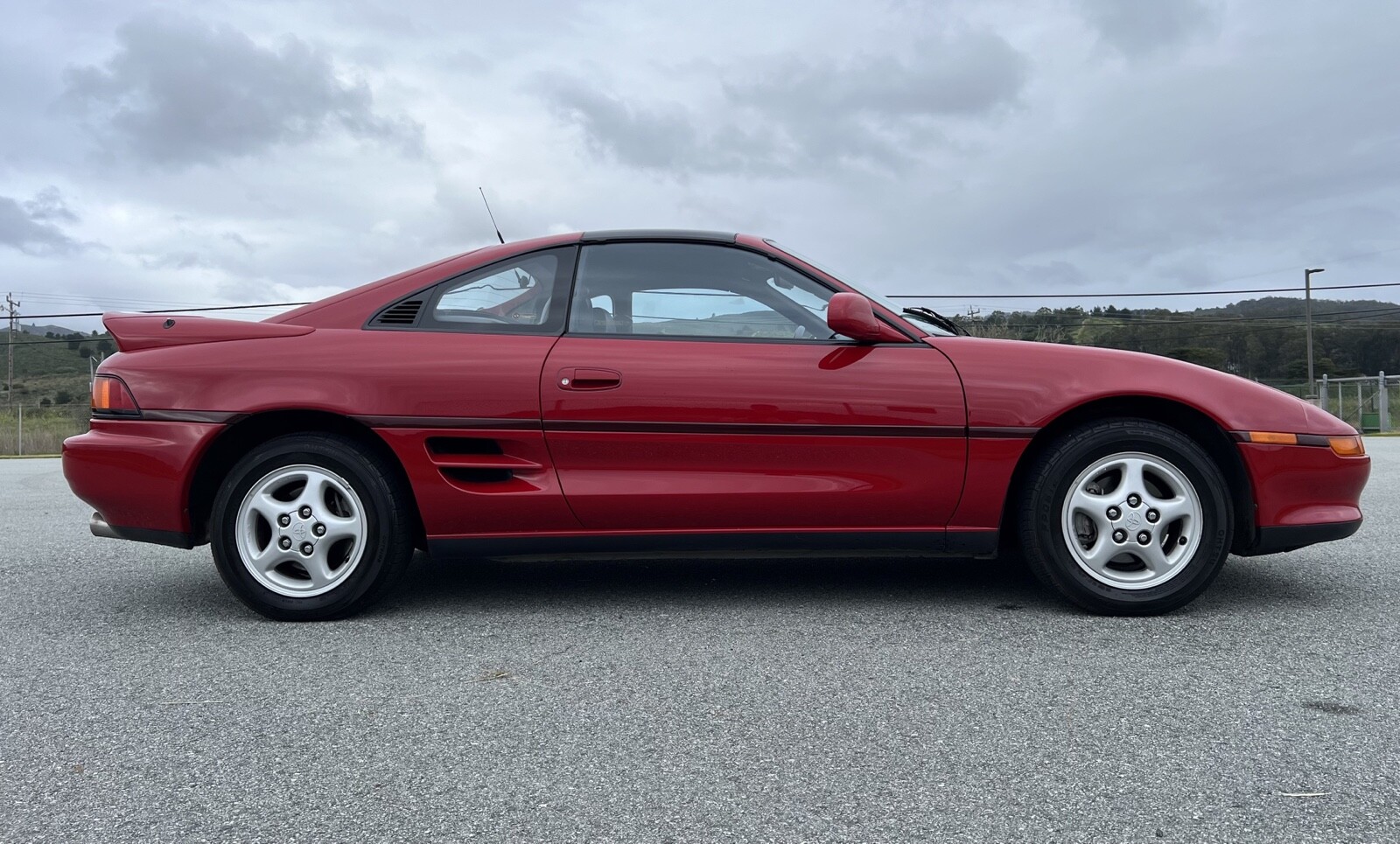 This 1991 Toyota MR2 Turbo was purchased new in July 1991 at Stevens Creek Toyota of San Jose, California, and subsequently acquired by the seller on BaT in March 2020. The car is finished in Crimson Red over black leather and is powered by a turbocharged 2.0-liter inline-four mated to a five-speed manual transaxle. Additional features include glass T-top panels, a period Motorola car phone, air conditioning, power steering, cruise control, and a CD/cassette stereo. This SW20 Turbo shows 41k miles and is offered at no reserve with T-top storage bags, manufacturer’s literature, service records, an accident-free Carfax report, and a clean Arizona title in the seller’s name.