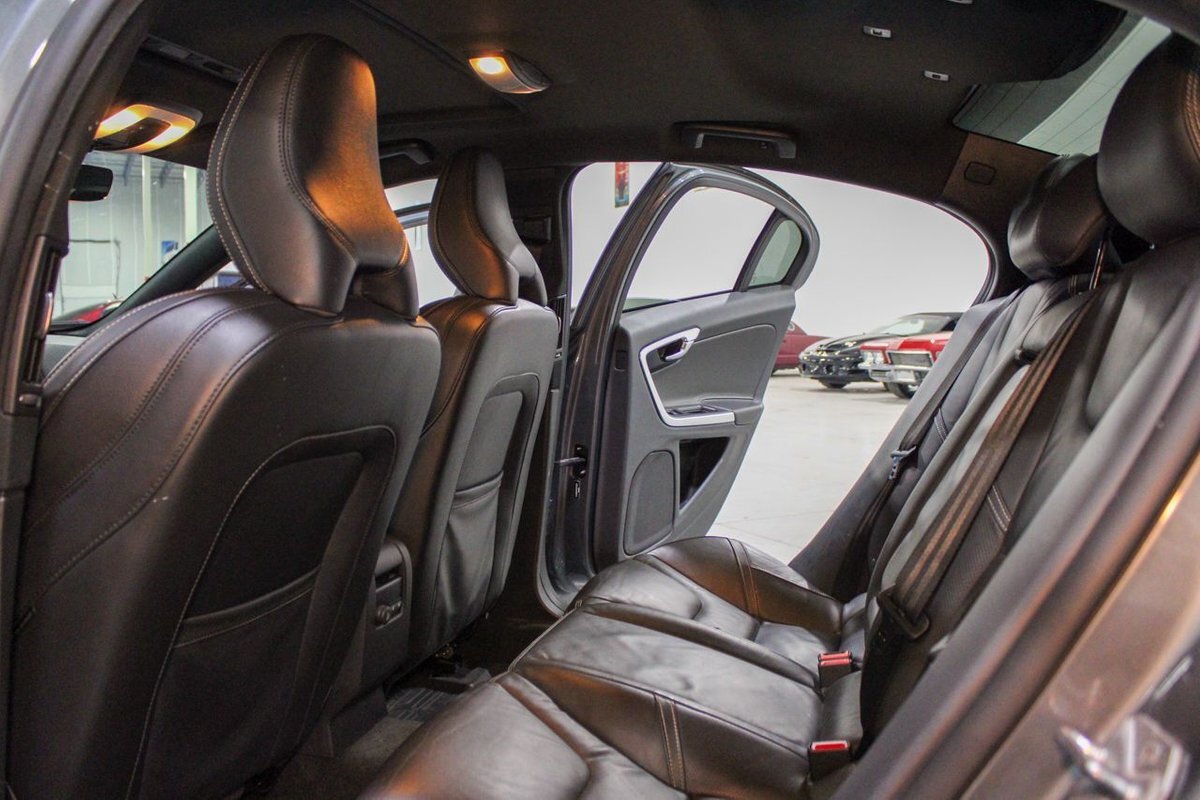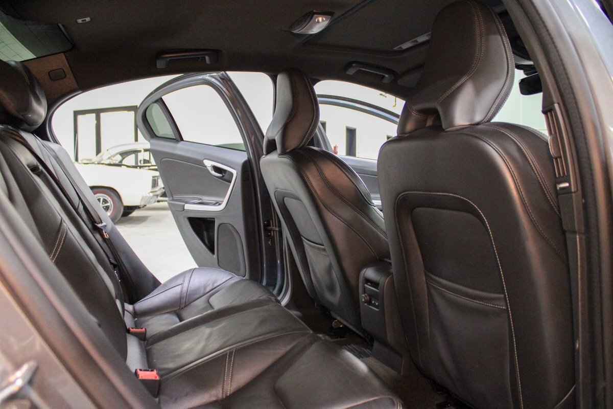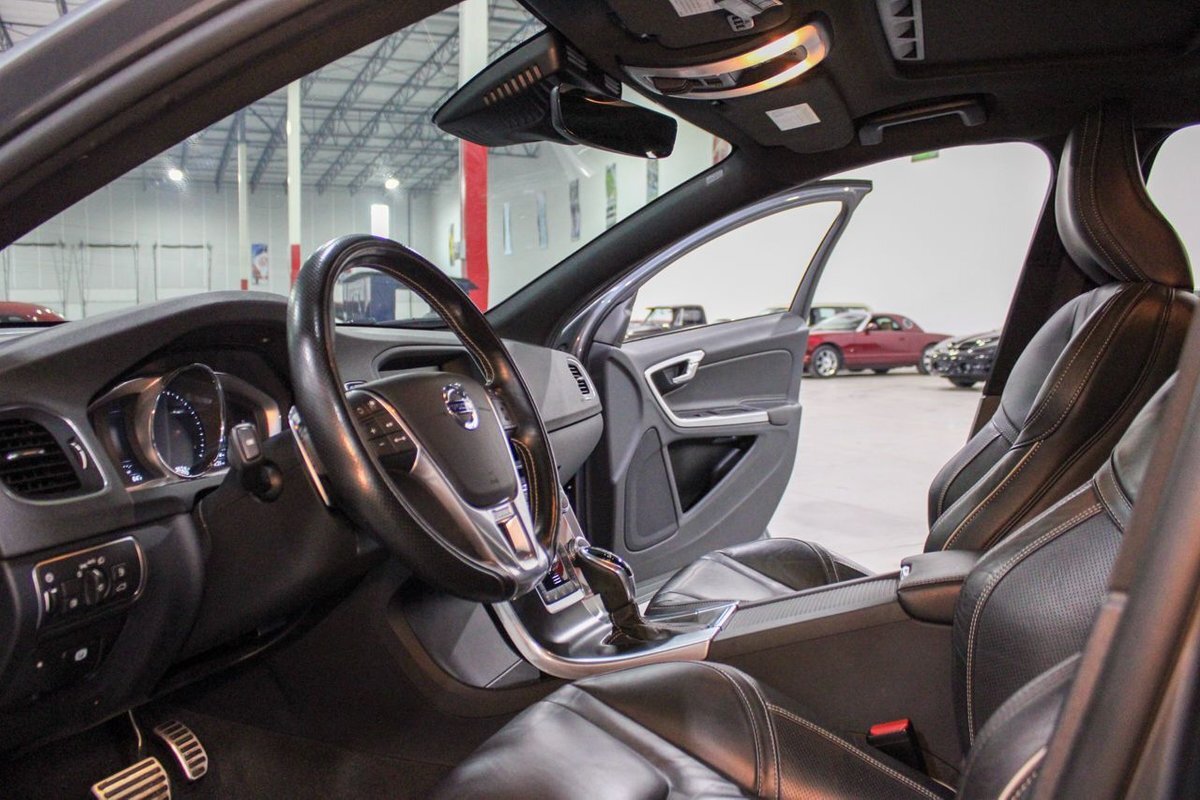The R-Design trim elevates the S60's sporty appeal with unique styling cues, including a sleek body kit, signature grille, and distinctive R-Design badges, all accentuating its dynamic presence on the road. Inside, the S60 T6 R-Design envelops occupants in a lavish and meticulously crafted cabin. Premium materials abound, with supple leather upholstery, aluminum accents, and soft-touch surfaces throughout. The driver-centric cockpit is thoughtfully designed for maximum comfort and convenience, featuring supportive sports seats with power adjustment, a leather-wrapped steering wheel, and an intuitive infotainment system with a responsive touchscreen display. Advanced safety features such as Volvo's City Safety collision avoidance system and adaptive cruise control further enhance the driving experience, providing peace of mind on every journey.
