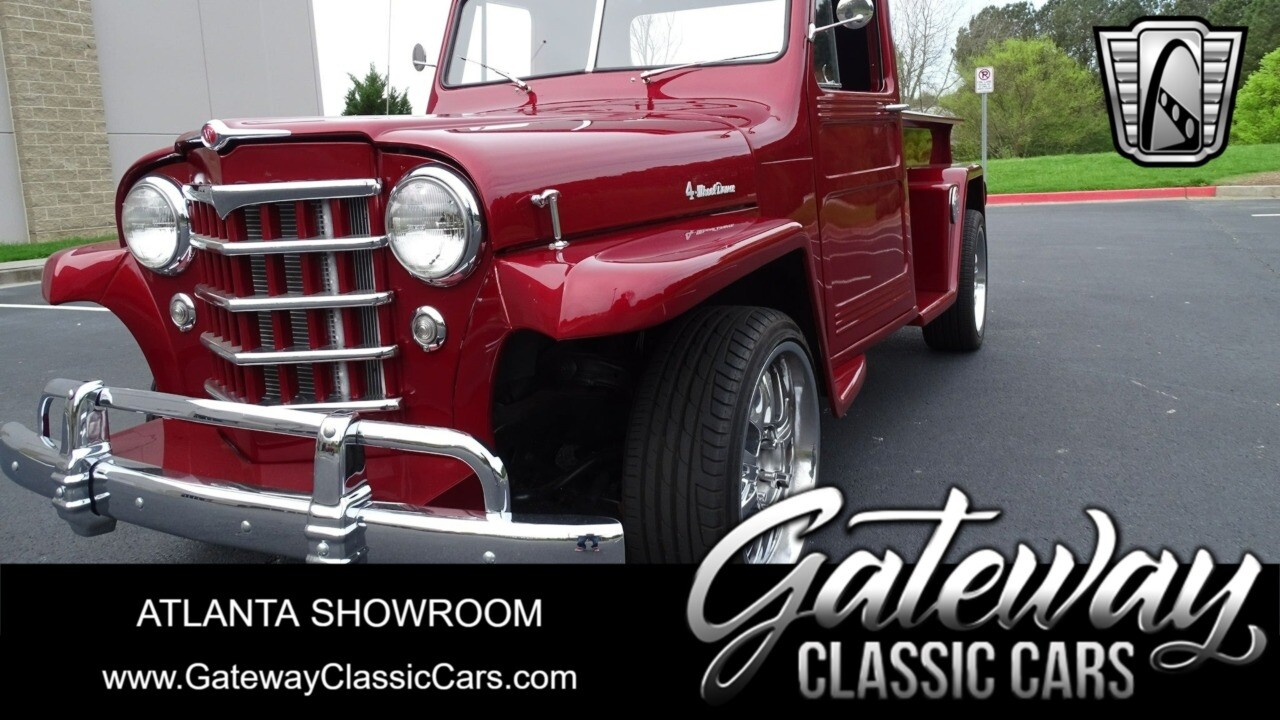 Gateway Classic Cars of Atlanta is proud to represent this Restomod 1951 Willy's Pickup! The Jeep Truck was introduced in 1947 as a 1-ton four-wheel drive truck with a wheelbase of 118 inches. It was available as a pickup truck, a platform stake truck, a chassis cab, or a bare chassis. A -ton two-wheel drive version became available by 1949. The truck was restyled in 1950 with the addition of a V-shaped grille with five horizontal bars. Optional accessories included an engine governor, a power takeoff, and a pulley drive. [ omitted ]. [ omitted ].
