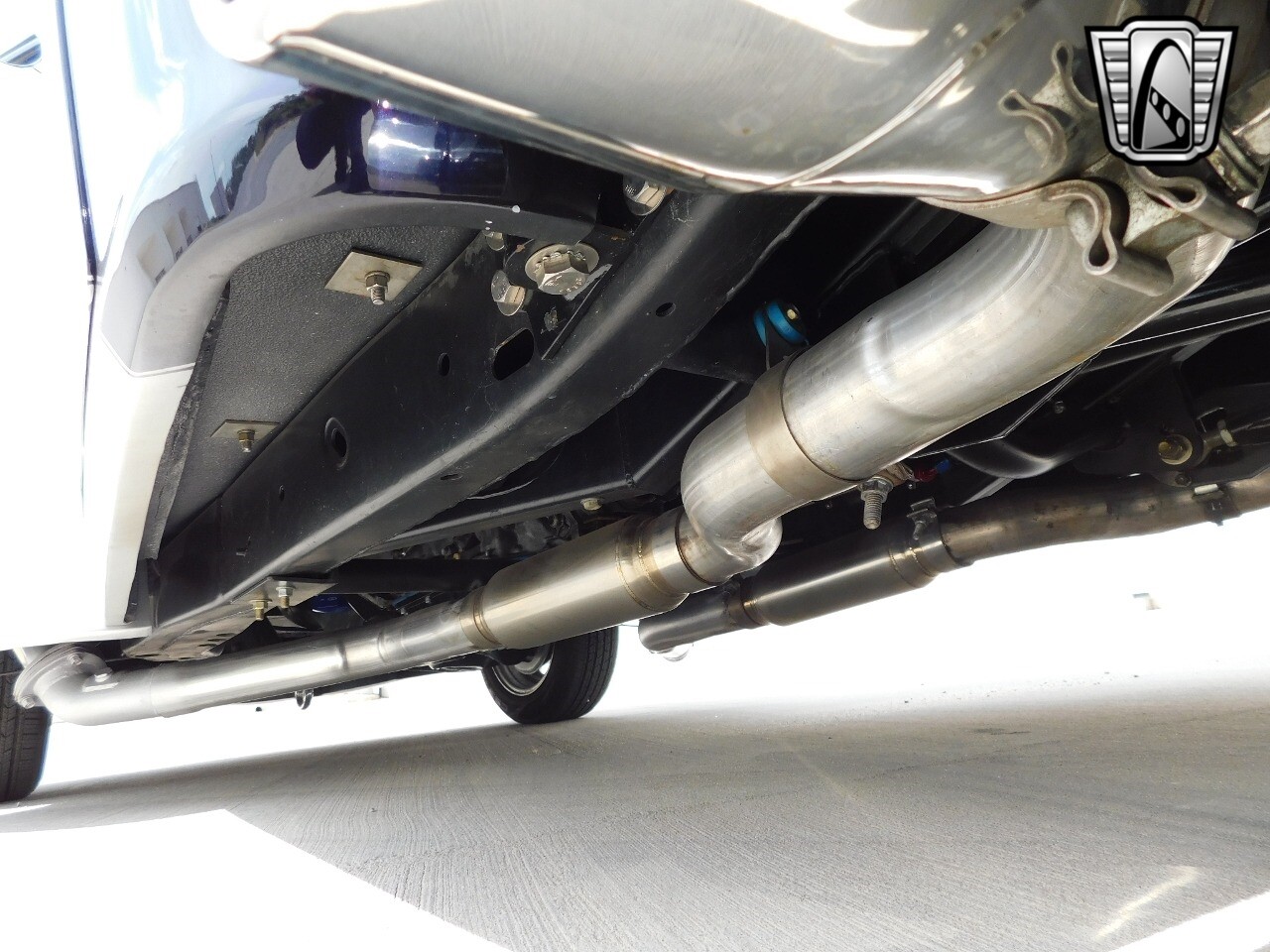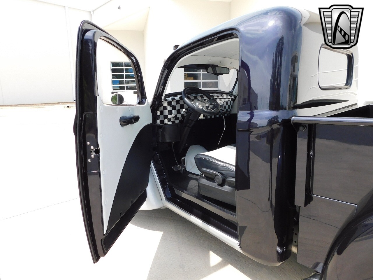 Introducing the 1941 Willys Pickup Restomod, a classic beauty with a modern twist. This stunning vehicle is dressed in a captivating Blueberry Pearl exterior that is sure to turn heads. The interior is equally impressive, boasting a sophisticated grey leather that exudes elegance and comfort.