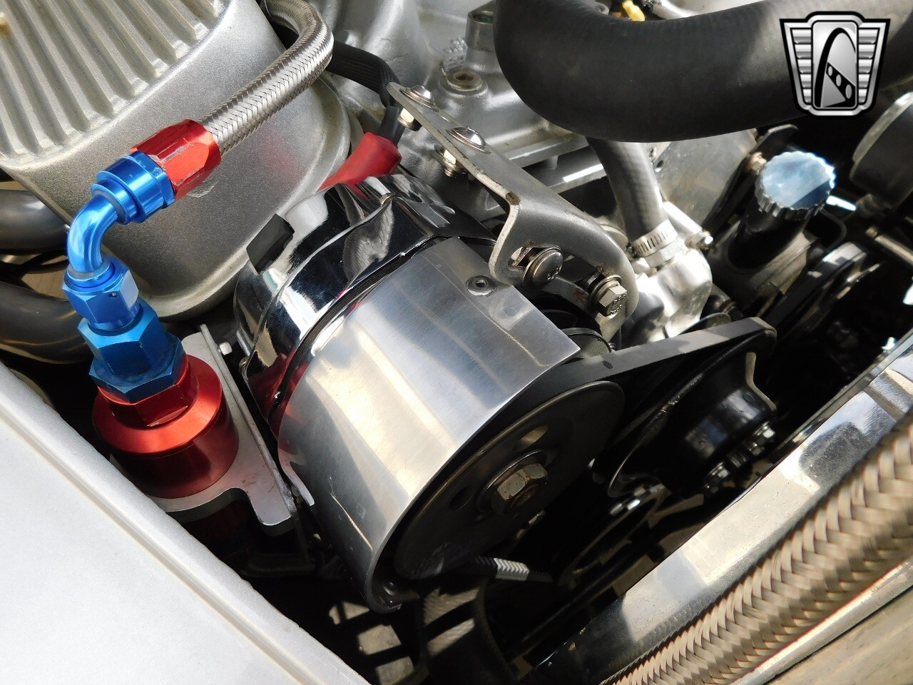 The 1941 Willys Pickup Restomod is also equipped with 3-inch stainless Bullet Flow Master mufflers, an on-board 1.5 battery charger system, and a heavy-duty cooling system by Be Cool. The vehicle's ignition system is powered by MSD Ignition Taylor 409 pro- 10.4mm plug wires- 160 amp chrome alternator.
