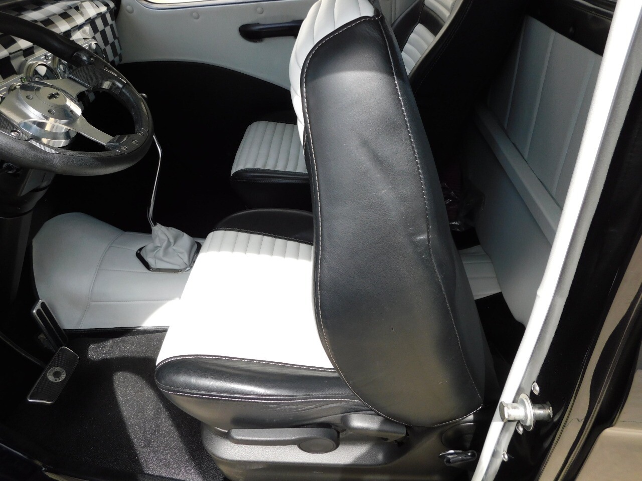 The vehicle's suspension system features chrome QA1 shocks and springs, ensuring a smooth and comfortable ride.