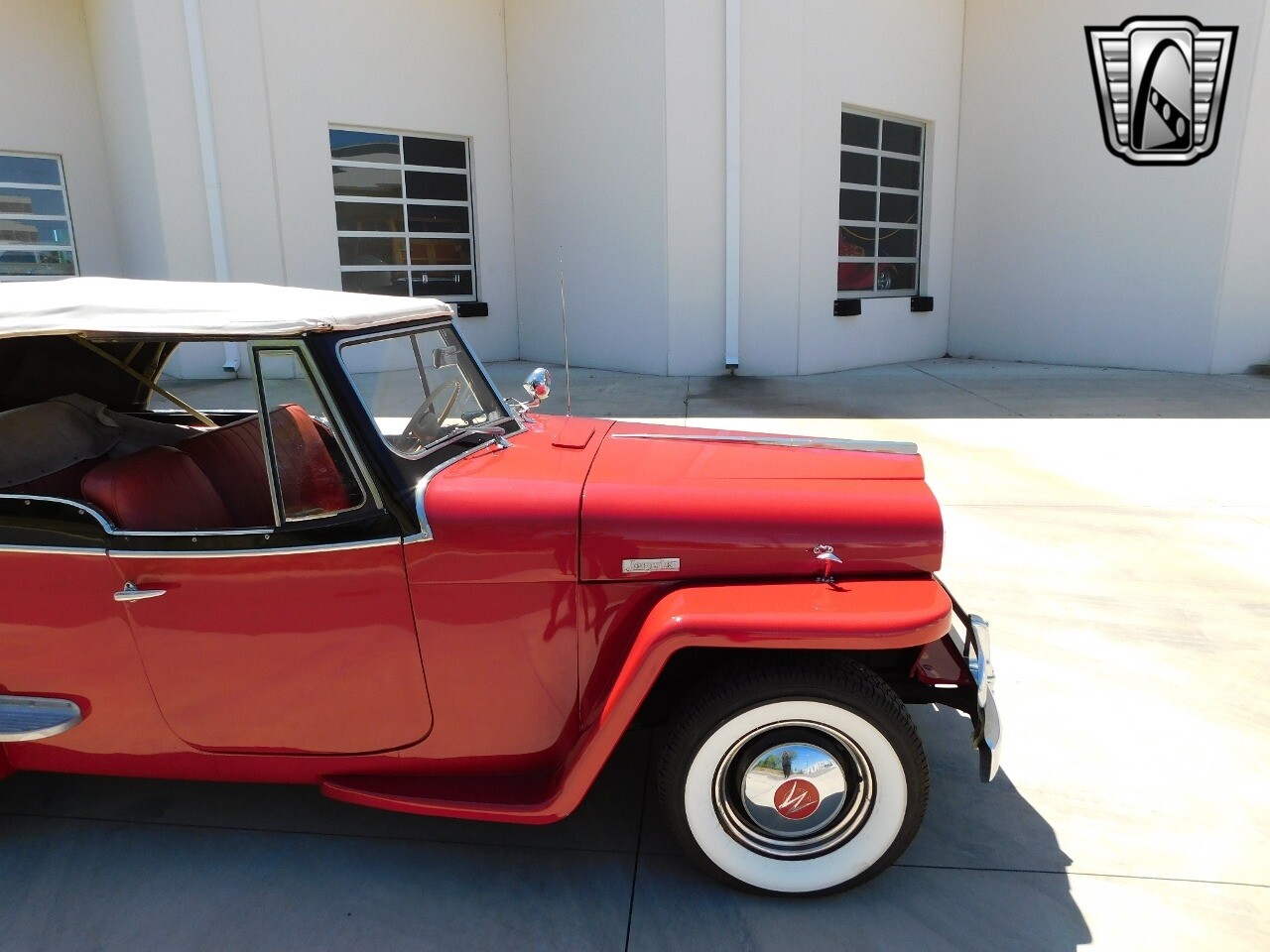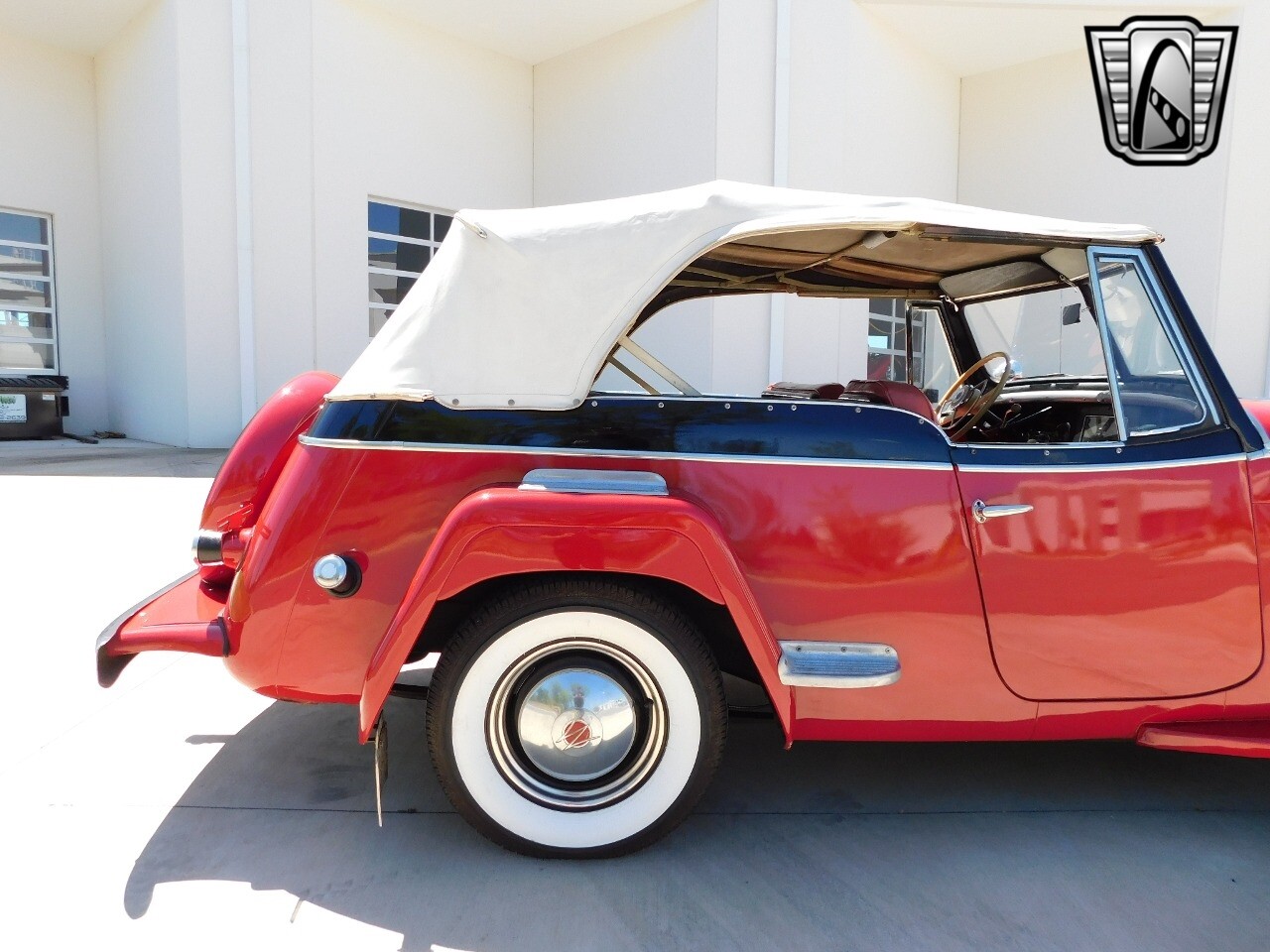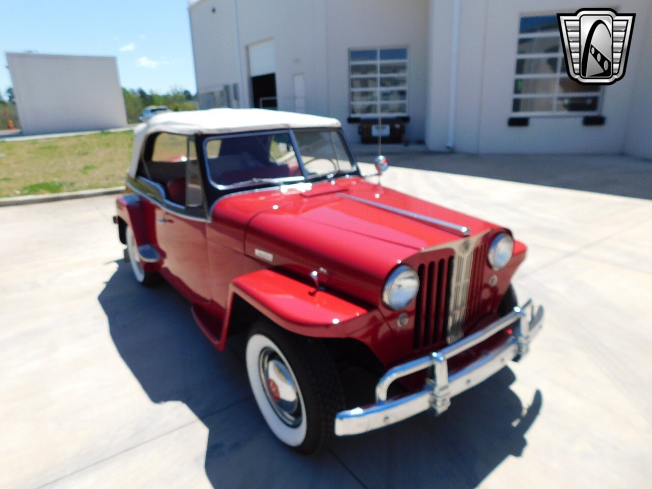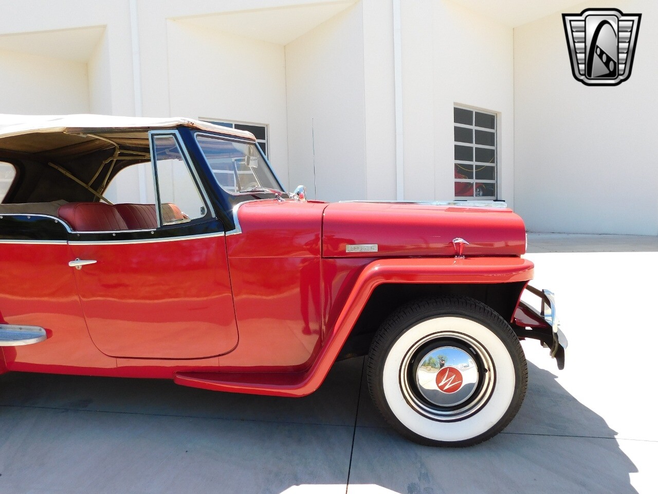 Step back in time with this classic 1949 Willys Jeepster, a true icon of American automotive history. This Jeepster is a standout with its vibrant red exterior and matching red interior, a color combination that is sure to turn heads wherever you go.