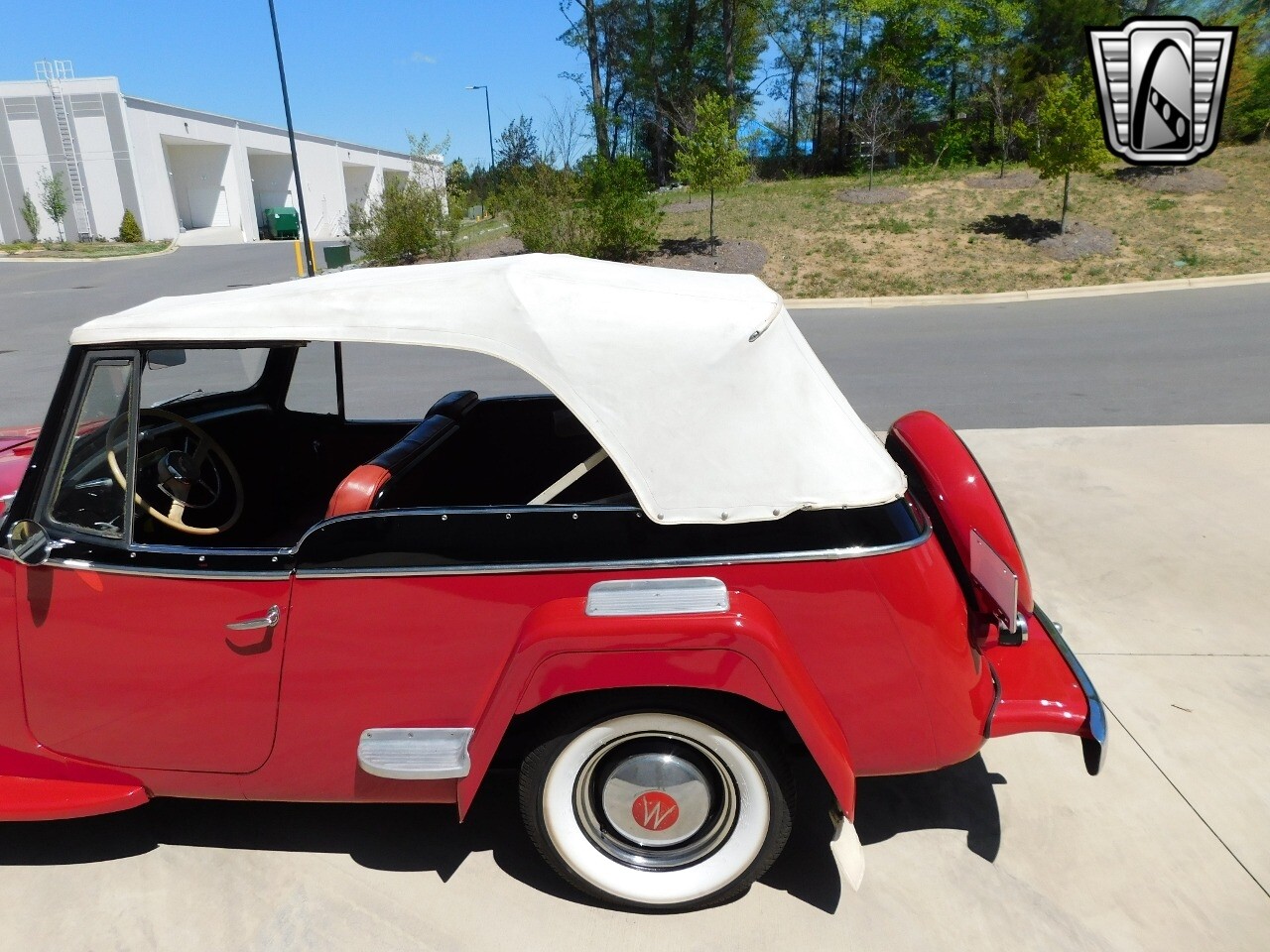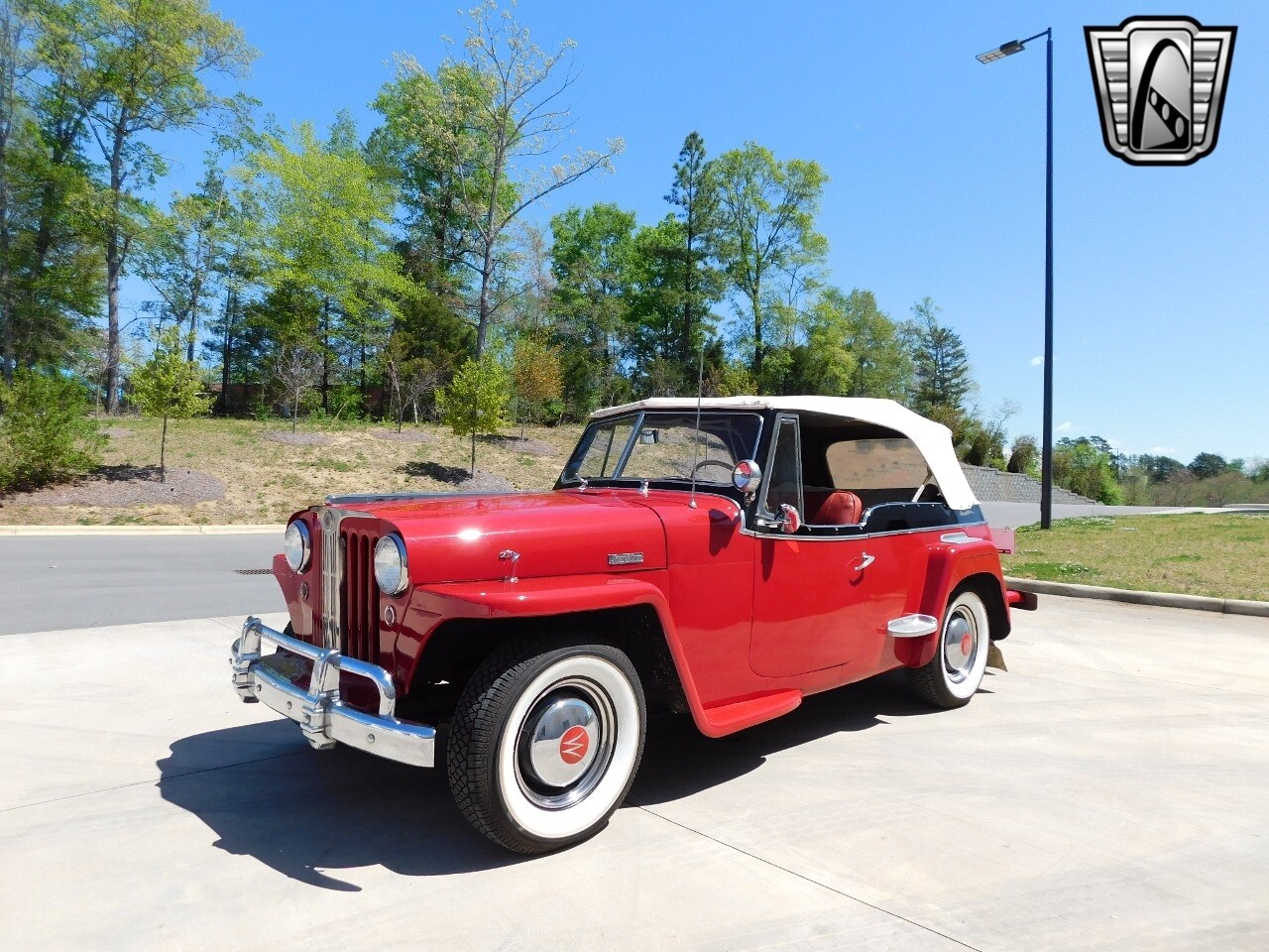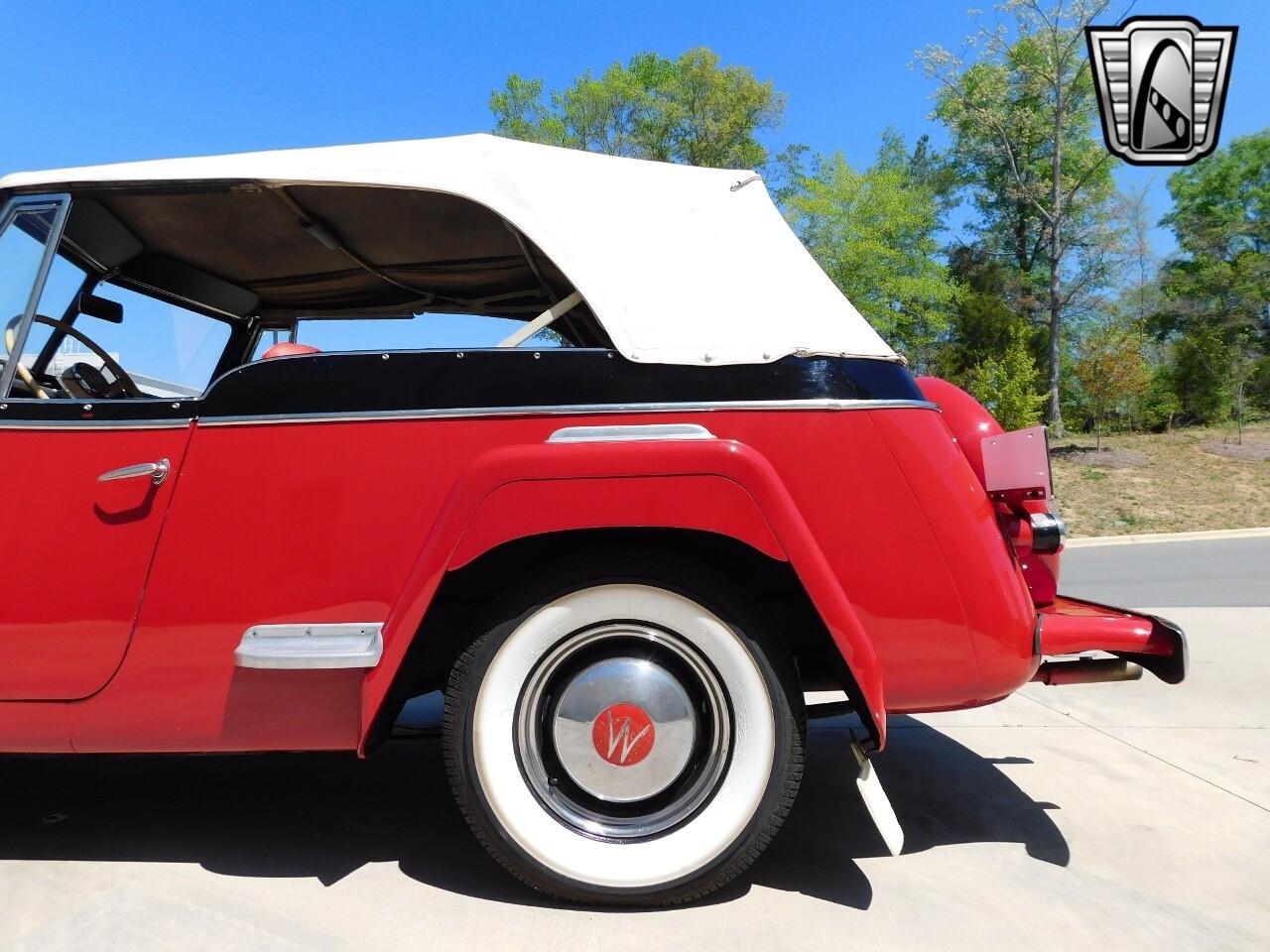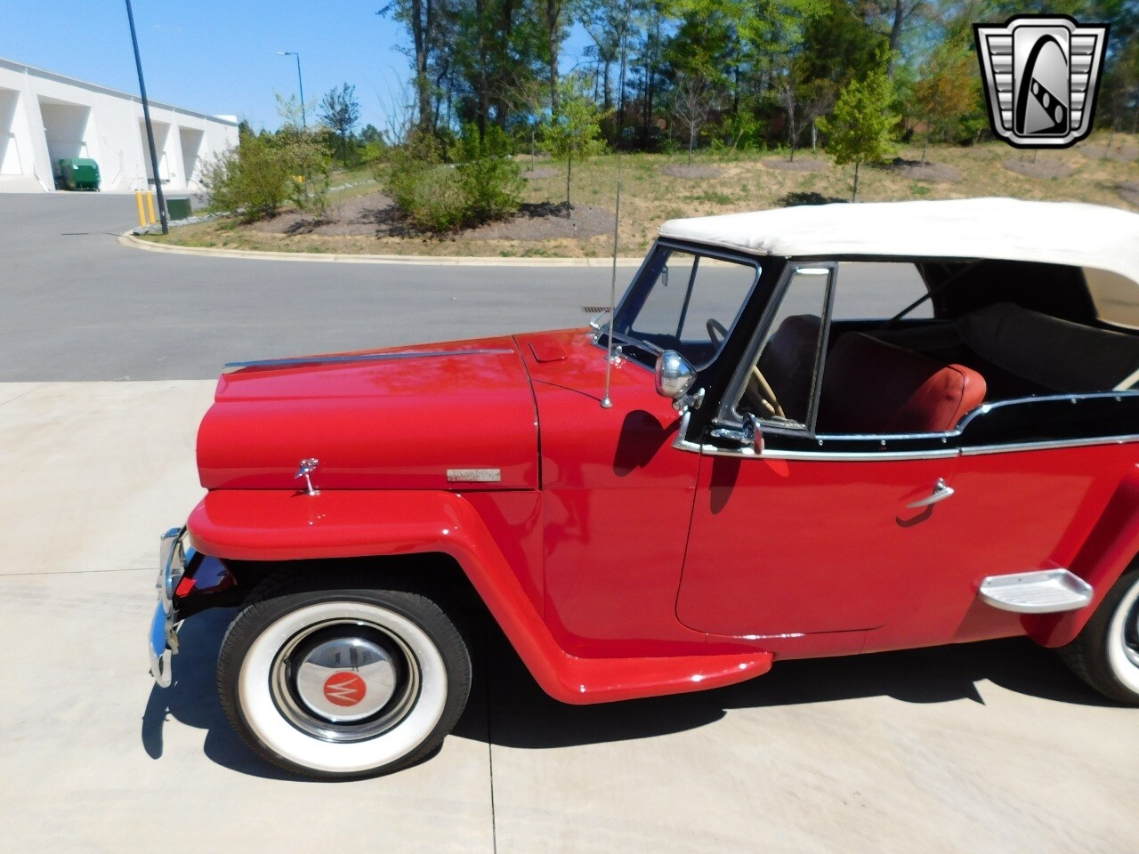 Step back in time with this classic 1949 Willys Jeepster, a true icon of American automotive history. This Jeepster is a standout with its vibrant red exterior and matching red interior, a color combination that is sure to turn heads wherever you go.