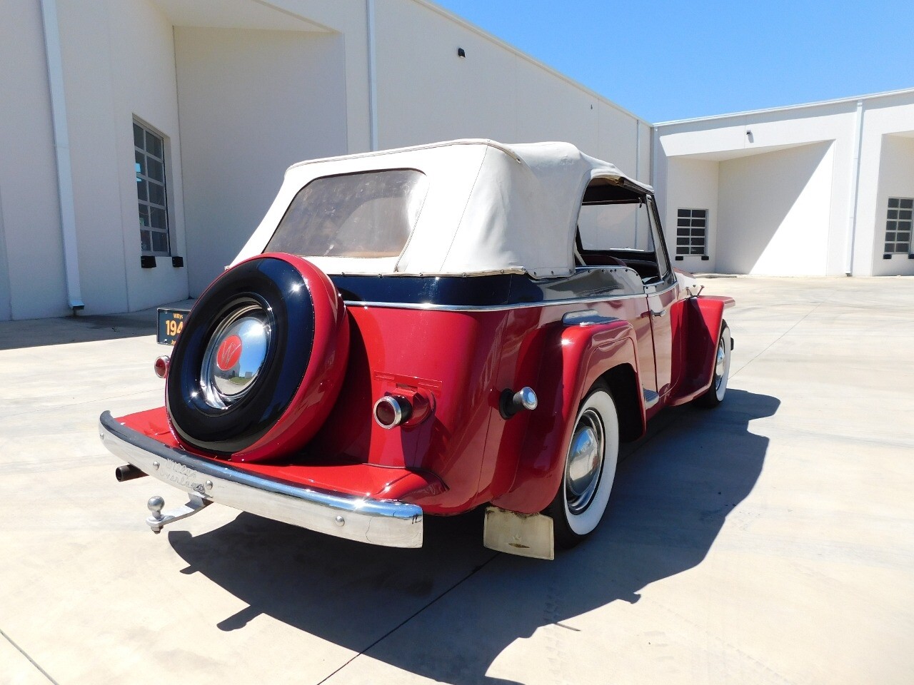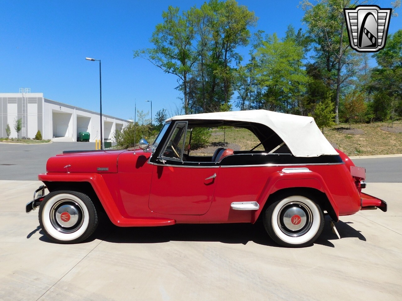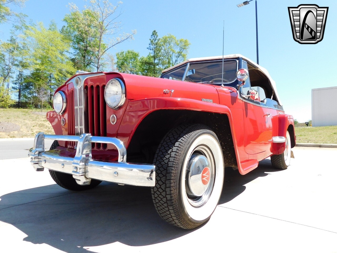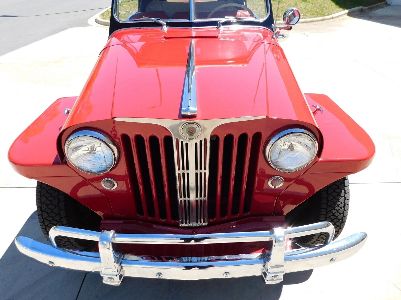 Step back in time with this classic 1949 Willys Jeepster, a true icon of American automotive history. This Jeepster is a standout with its vibrant red exterior and matching red interior, a color combination that is sure to turn heads wherever you go.
