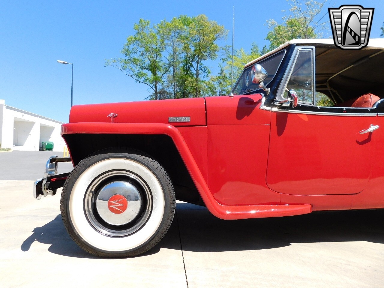 This Jeepster also features hub caps that add to its classic appeal. The interior is finished in durable vinyl, a material that is not only comfortable but also easy to clean and maintain.