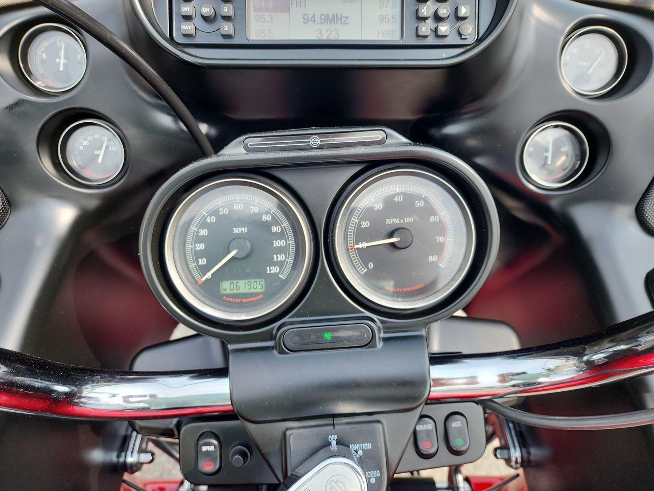 Incredibly clean condition and well maintained Road Glide Ultra finished in the beautiful Ember Red Sunglo with Dark Red scallops with Pale Gold pin striping (all factory original). This is a TN owned and serviced bike that was traded here by the previous owner on a 2021 Road Glide Special and has been extremely well cared for and serviced including: 14" large diameter ape hanger bars, S&S 585 easy start cams, Vance & Hines x-pipe headers, RCXhaust mufflers, Mustang seat with removable driver backrest, Chrome luggage rack with brake light, LED headlights, Harman Kardon premium sound with upgrade speakers, ABS Brakes, Security system, Cruise control, Highway pegs, Saddlebag guards, Kuryakyn grips, Upgraded touring windscreen, Adjustable air suspension, and more. Lots of maintenance including compensator sprocket, cam plate, newer tires, oil service, and more. Super clean bike at an incredible price, in stock and ready to ride cross county TODAY!