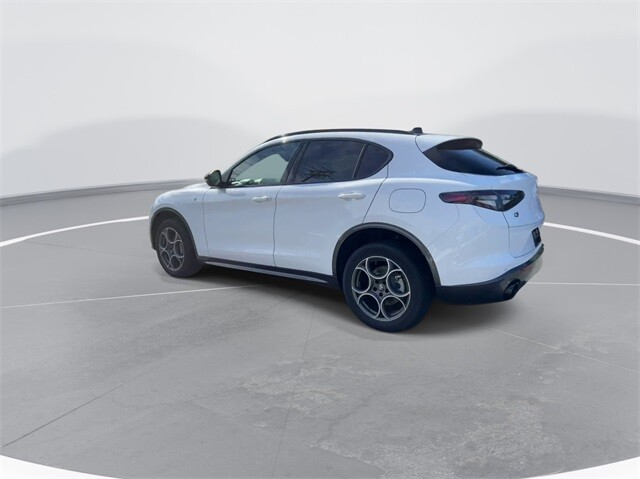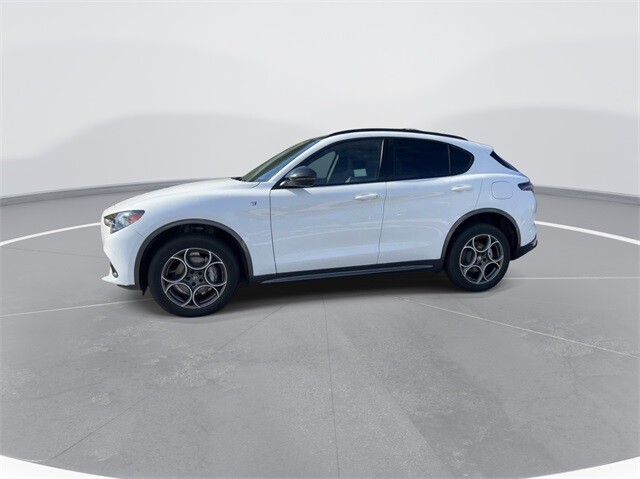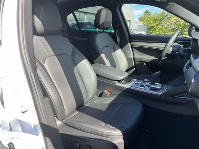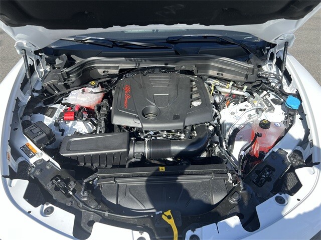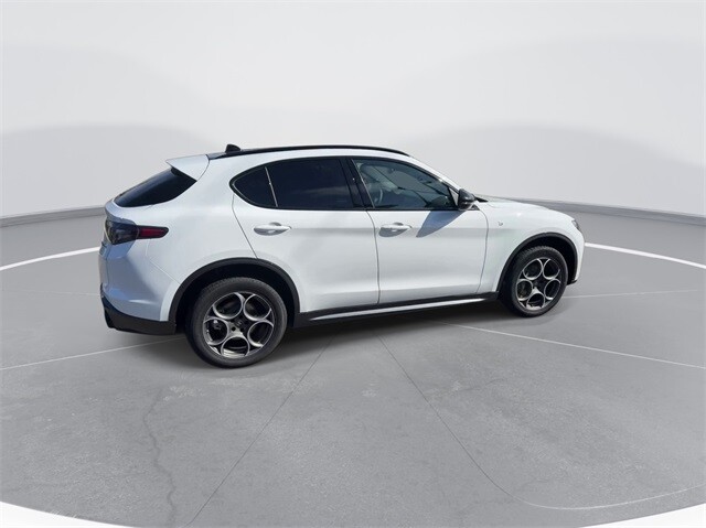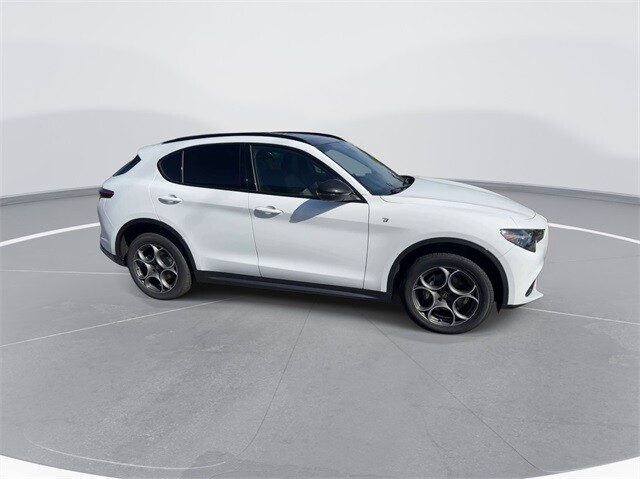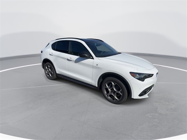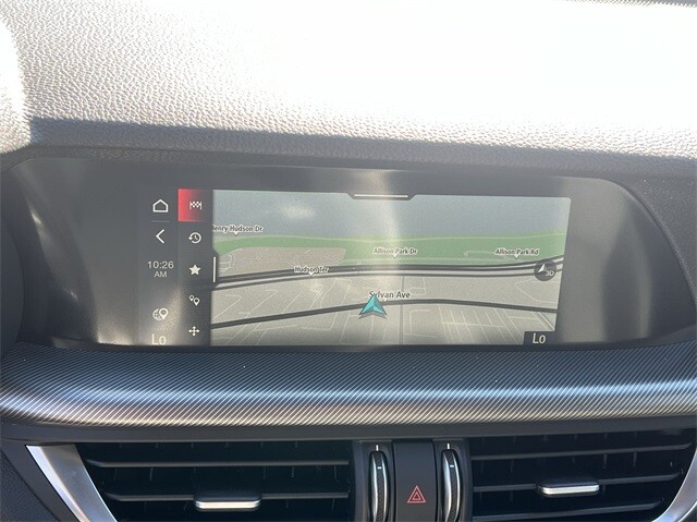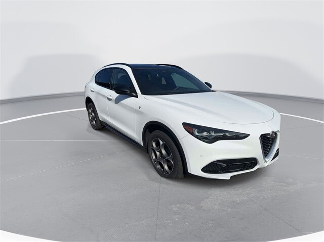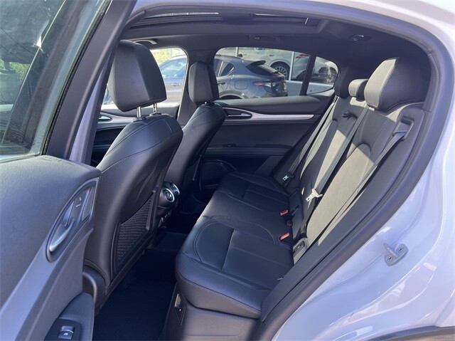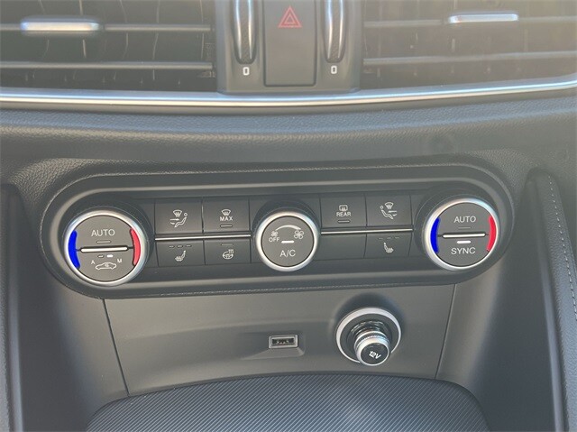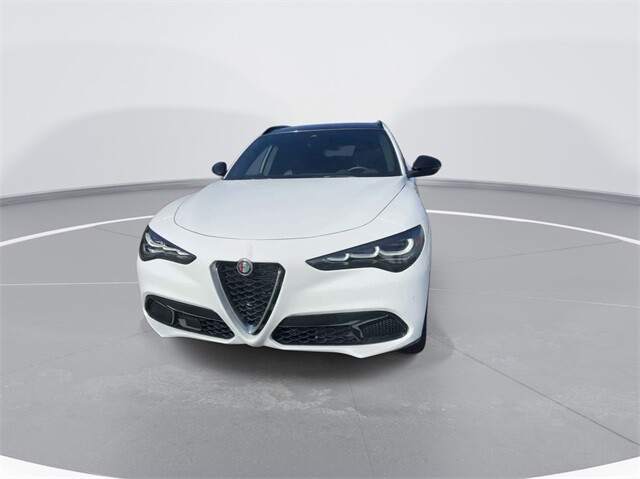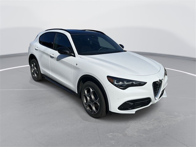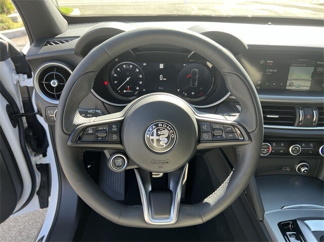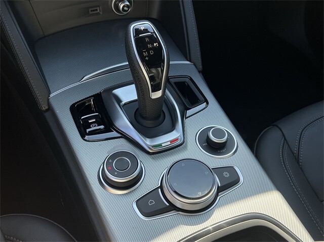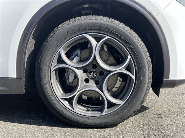 This Stelvio Ti is nicely equipped with Quick Order Package 22G Ti, Apple CarPlay/Android Auto, Auto High-beam Headlights, Auto-dimming door mirrors, Auto-dimming Rear-View mirror, Automatic temperature control, Brake assist, Compass, Electronic Stability Control, Four wheel independent suspension, Front dual zone A/C, Garage door transmitter, Heated door mirrors, Heated front seats, Heated rear seats, Heated steering wheel, High-Intensity Discharge Headlights, Illuminated entry, Memory seat, Navigation System, Outside temperature display, ParkView Rear Back-Up Camera, Power door mirrors, Power driver seat, Power Liftgate, Power moonroof, Power passenger seat, Power steering, Power windows, Radio: AM/FM/HD 8.8 w/Navigation, Rain sensing wipers, Rear audio controls, Rear window defroster, Rear window wiper, Remote keyless entry, Security system, Speed control, Speed-sensing steering, Steering wheel mounted audio controls, Traction control, Turn signal indicator mirrors, 3.73 Axle Ratio, 4-Wheel Disc Brakes, 8 Speakers, ABS brakes, Air Conditioning, Alloy wheels, AM/FM radio: SiriusXM, Bumpers: body-color, Delay-off headlights, Driver door bin, Driver vanity mirror, Dual front impact airbags, Dual front side impact airbags, Emergency communication system: Alfa Connect, Front anti-roll bar, Front Bucket Seats, Front Center Armrest, Front reading lights, Fully automatic headlights, Knee airbag, Leather Seats, Leather Shift Knob, Low tire pressure warning, Occupant sensing airbag, Overhead airbag, Overhead console, Panic alarm, Passenger door bin, Passenger vanity mirror, Radio data system, Rear anti-roll bar, Rear fog lights, Rear reading lights, Rear seat center armrest, Roof rack: rails only, Speed-Sensitive Wipers, Split folding rear seat, Spoiler, Sport steering wheel, Tachometer, Telescoping steering wheel, Tilt steering wheel, Trip computer, Variably intermittent wipers, and Wheels: 19 x 8.0 Sport 5-Hole Aluminum.