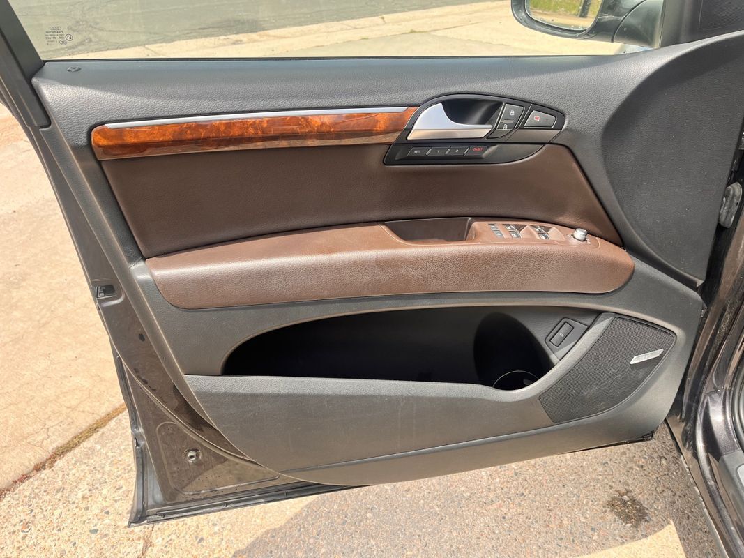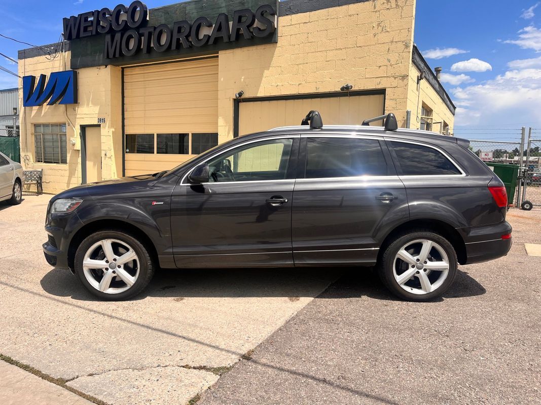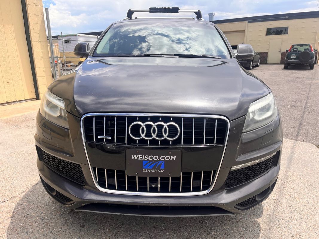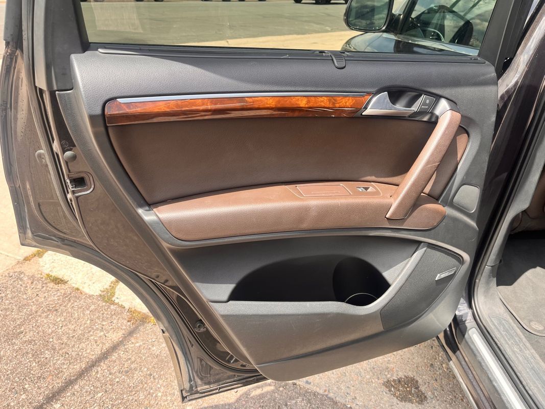 2013 Audi Q7 Quattro finished in charcoal gray exterior over espresso brown leather interior. This is the factory supercharged six-cylinder with the Quattro all-wheel-drive system. Has nice factory upgrade options like: keyless entry, keyless go, third row seat, panorama sunroof, heated and cooled front seats, heatedrear seats, backup camera, power liftgate, and so much more. the body and paint are in good shape with some small chips from use over the years. Call Weisco Motorcars for more info or to set up a time to stop by for a look over the Q7.