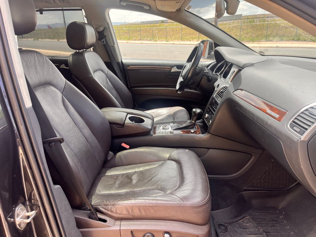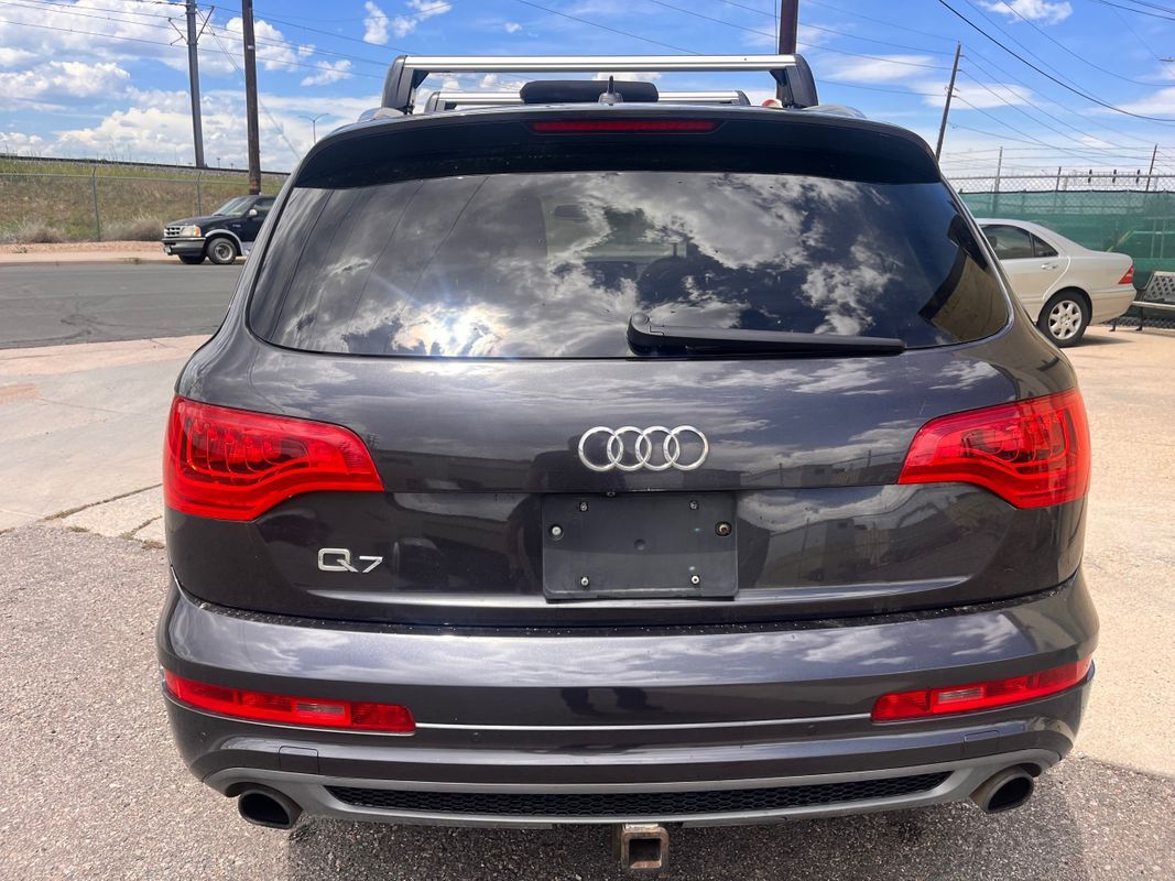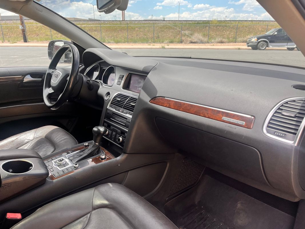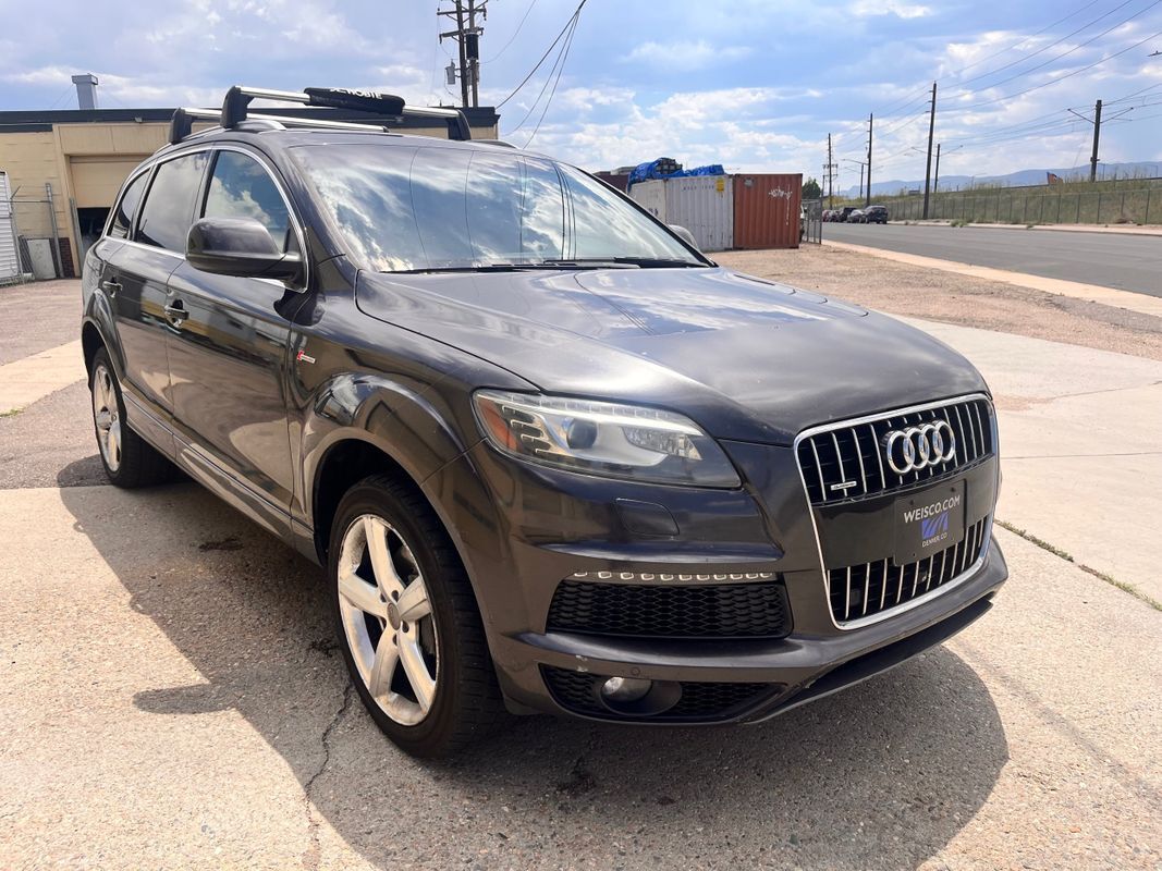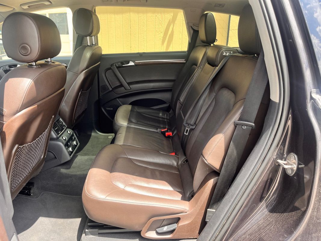 2013 Audi Q7 Quattro finished in charcoal gray exterior over espresso brown leather interior. This is the factory supercharged six-cylinder with the Quattro all-wheel-drive system. Has nice factory upgrade options like: keyless entry, keyless go, third row seat, panorama sunroof, heated and cooled front seats, heatedrear seats, backup camera, power liftgate, and so much more. the body and paint are in good shape with some small chips from use over the years. Call Weisco Motorcars for more info or to set up a time to stop by for a look over the Q7.