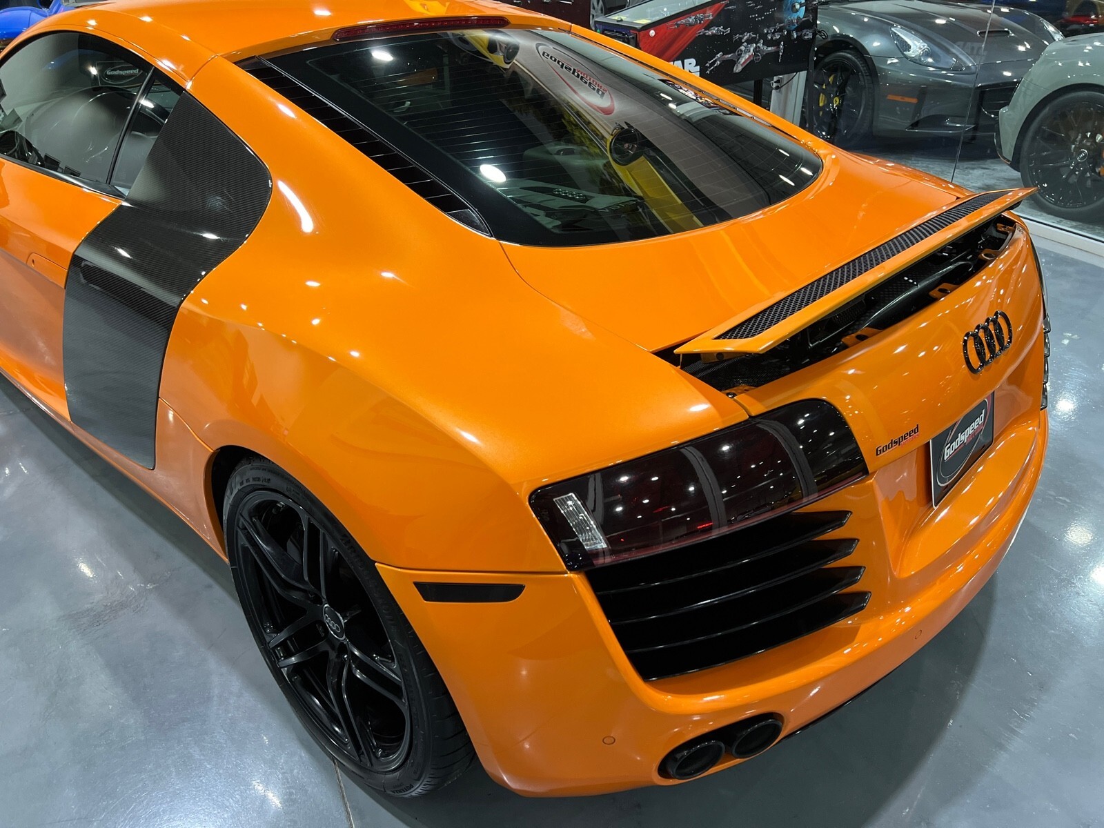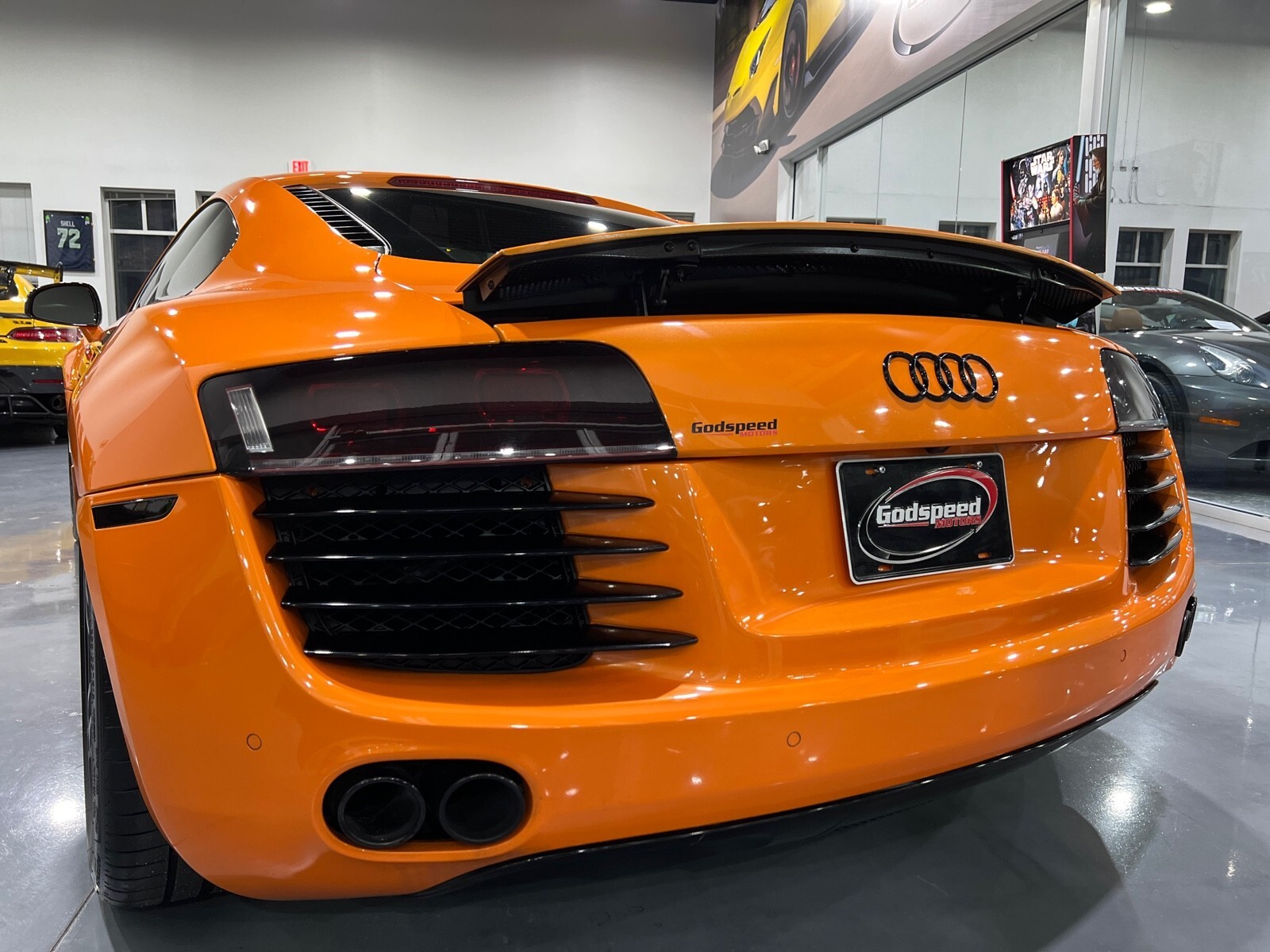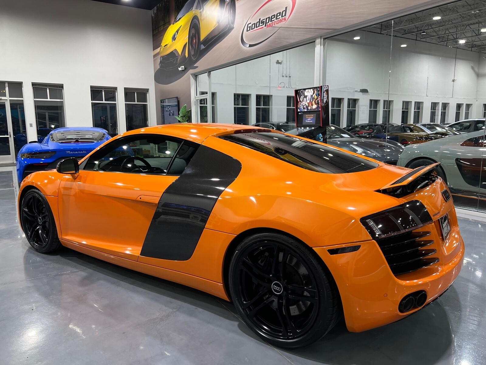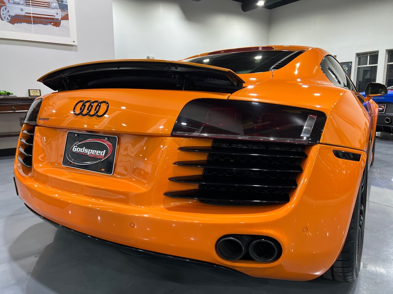 Clean CARFAX, naturally-aspirated 4.2L V8 rated at 420 horsepower, automated 6-speed transmission, custom pearl orange paint, black leather interior w/ leather dashboard/door inserts/door handles, alcantara headliner, carbon fiber side blades, carbon fiber mirror caps, 19 5-arm double spoke gloss black wheels, Bang & Olufsen audio, Bluetooth handsfree phone connectivity, navigation, front and rear parking sensors, back-up camera, and more! Desirable platform with timeless style! $137,100 MSRP when new in 2008! Link to video displaying exhaust sound: ZzX4jNsp7SU Known modifications include: Coilover suspension and cat-back exhaust! Recent service/maintenance include: NEW VALVE COVER GASKETS, OIL CHANGE, ALIGNMENT, and FOUR TIRES! (~$3,000 parts/labor) **Window sticker is a duplicate version, prices and options might vary** MSRP $118,000.00 INSTALLED OPTIONS [PLG] Fine Nappa Leather Seat Trim included [PND] Audi Navigation System Plus 6.5 TFT color display (2) SD card inserts DVD-based maps for US/Canada phase diversity radio data system (RDS) autostore function graduated audio level adjustment (GALA) voice guidance (5) language settings $2,000 [6W9] Front Grille Filler Panel $0 [PL3] Enhanced Leather PKG fine Nappa leather seat trim leather door inserts & door handles black leather dashboard black leather cowl $5,500 [PPD] Premium PKG front/rear Audi parking system w/rearview camera 6-disc CD changer Audi hill hold assist HomeLink Bluetooth phone prep auto-dimming exterior mirrors seatback storage nets luggage net on rear shelf $3,500 [PL1] Leather Elements fine Nappa leather seat trim leather door inserts & door handles $2,000 [9VK] Bang & Olufsen Sound System (12) speakers 10-channel amplifier w/465-watt combined output digital signal processing (DSP) vehicle noise compensation w/microphone True Image $1,800 [6NN] Black Alcantara Headliner $1,300 [6H3] Carbon Sigma Side Blade $2,000 Original Shipping Charge $1,000 RETAIL PRICE (ORIGINALLY NEW) $137,100.00