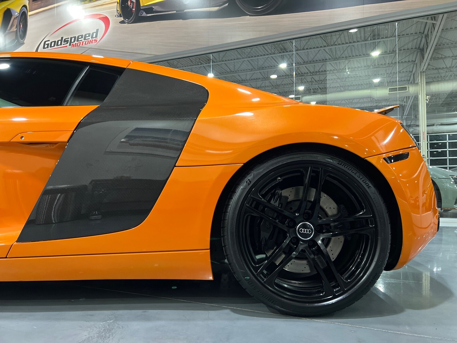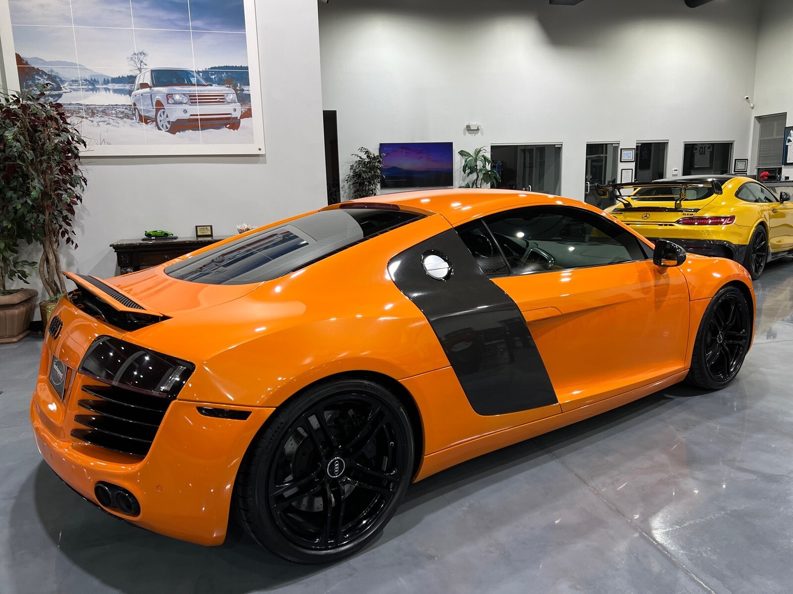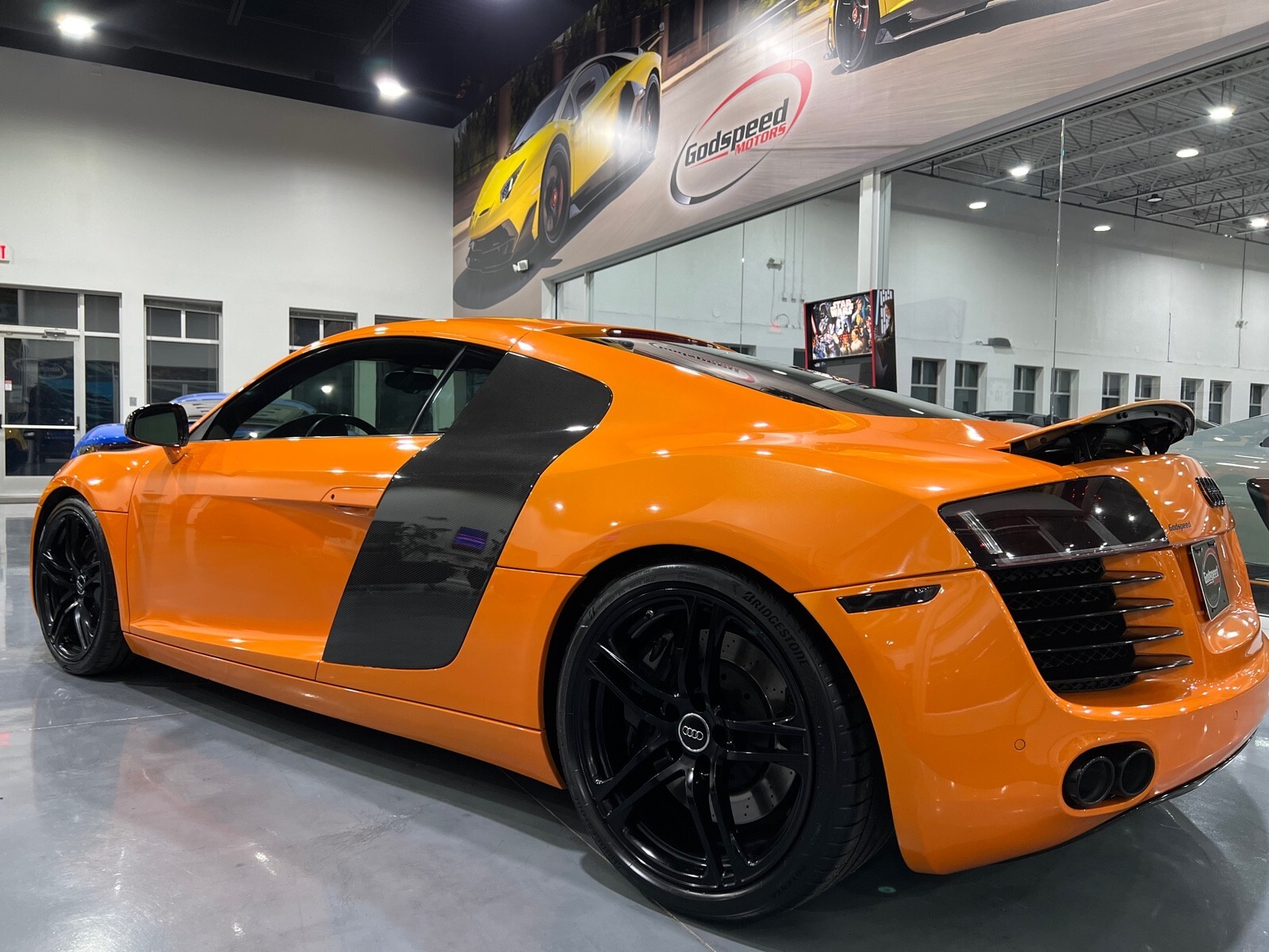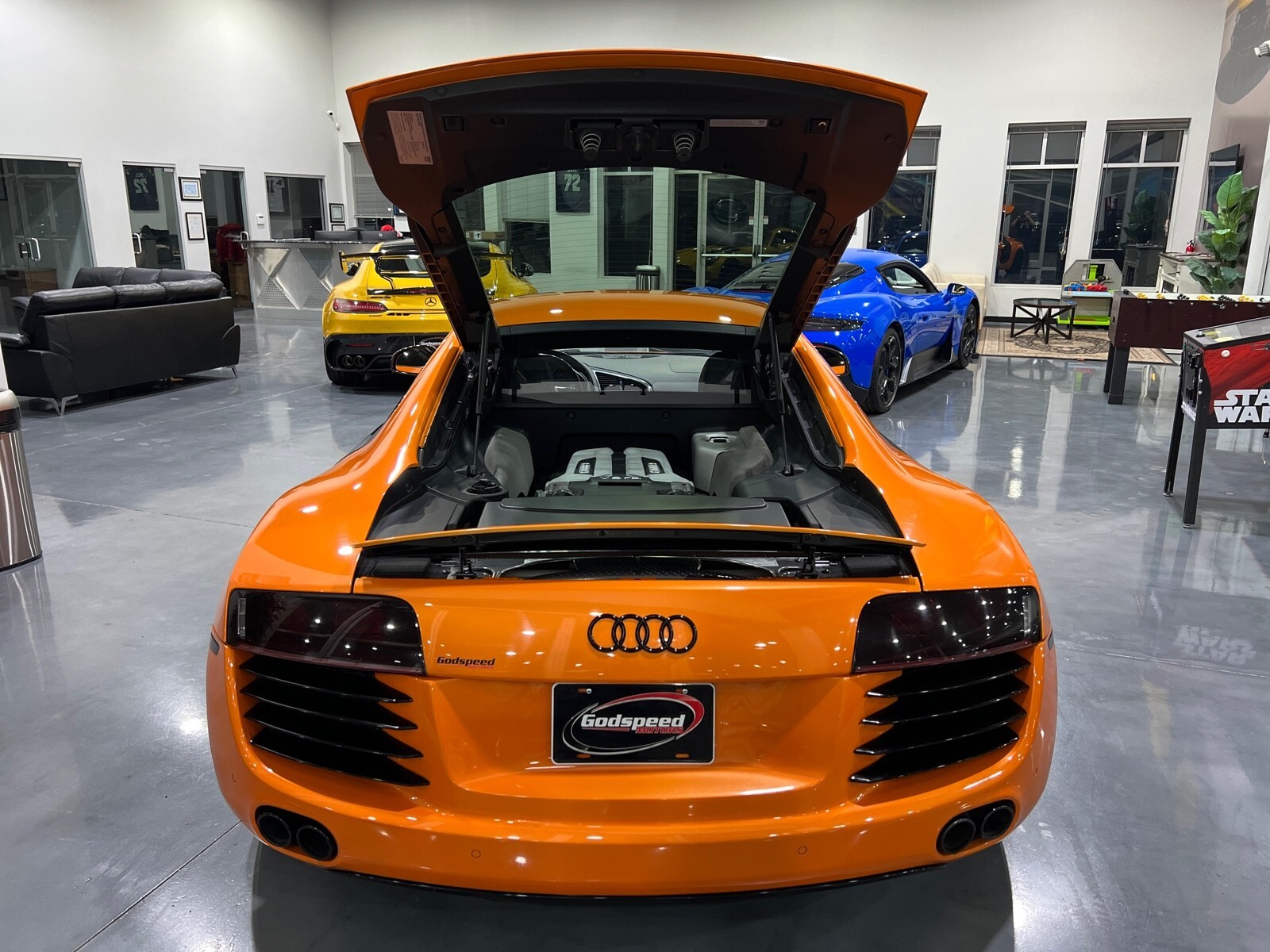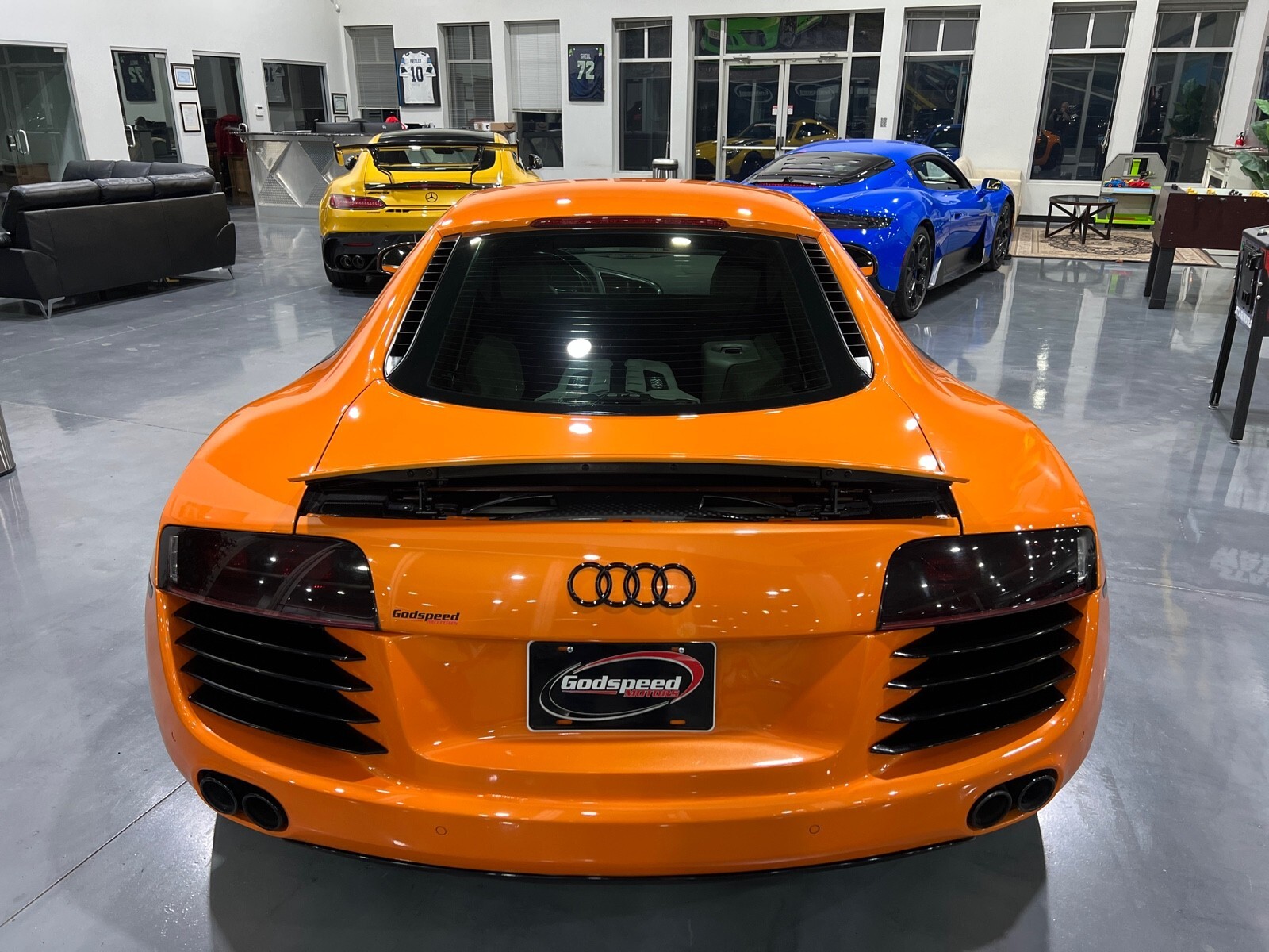 Clean CARFAX, naturally-aspirated 4.2L V8 rated at 420 horsepower, automated 6-speed transmission, custom pearl orange paint, black leather interior w/ leather dashboard/door inserts/door handles, alcantara headliner, carbon fiber side blades, carbon fiber mirror caps, 19 5-arm double spoke gloss black wheels, Bang & Olufsen audio, Bluetooth handsfree phone connectivity, navigation, front and rear parking sensors, back-up camera, and more! Desirable platform with timeless style! $137,100 MSRP when new in 2008! Link to video displaying exhaust sound: ZzX4jNsp7SU Known modifications include: Coilover suspension and cat-back exhaust! Recent service/maintenance include: NEW VALVE COVER GASKETS, OIL CHANGE, ALIGNMENT, and FOUR TIRES! (~$3,000 parts/labor) **Window sticker is a duplicate version, prices and options might vary** MSRP $118,000.00 INSTALLED OPTIONS [PLG] Fine Nappa Leather Seat Trim included [PND] Audi Navigation System Plus 6.5 TFT color display (2) SD card inserts DVD-based maps for US/Canada phase diversity radio data system (RDS) autostore function graduated audio level adjustment (GALA) voice guidance (5) language settings $2,000 [6W9] Front Grille Filler Panel $0 [PL3] Enhanced Leather PKG fine Nappa leather seat trim leather door inserts & door handles black leather dashboard black leather cowl $5,500 [PPD] Premium PKG front/rear Audi parking system w/rearview camera 6-disc CD changer Audi hill hold assist HomeLink Bluetooth phone prep auto-dimming exterior mirrors seatback storage nets luggage net on rear shelf $3,500 [PL1] Leather Elements fine Nappa leather seat trim leather door inserts & door handles $2,000 [9VK] Bang & Olufsen Sound System (12) speakers 10-channel amplifier w/465-watt combined output digital signal processing (DSP) vehicle noise compensation w/microphone True Image $1,800 [6NN] Black Alcantara Headliner $1,300 [6H3] Carbon Sigma Side Blade $2,000 Original Shipping Charge $1,000 RETAIL PRICE (ORIGINALLY NEW) $137,100.00