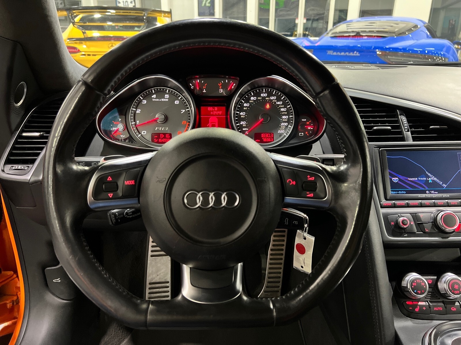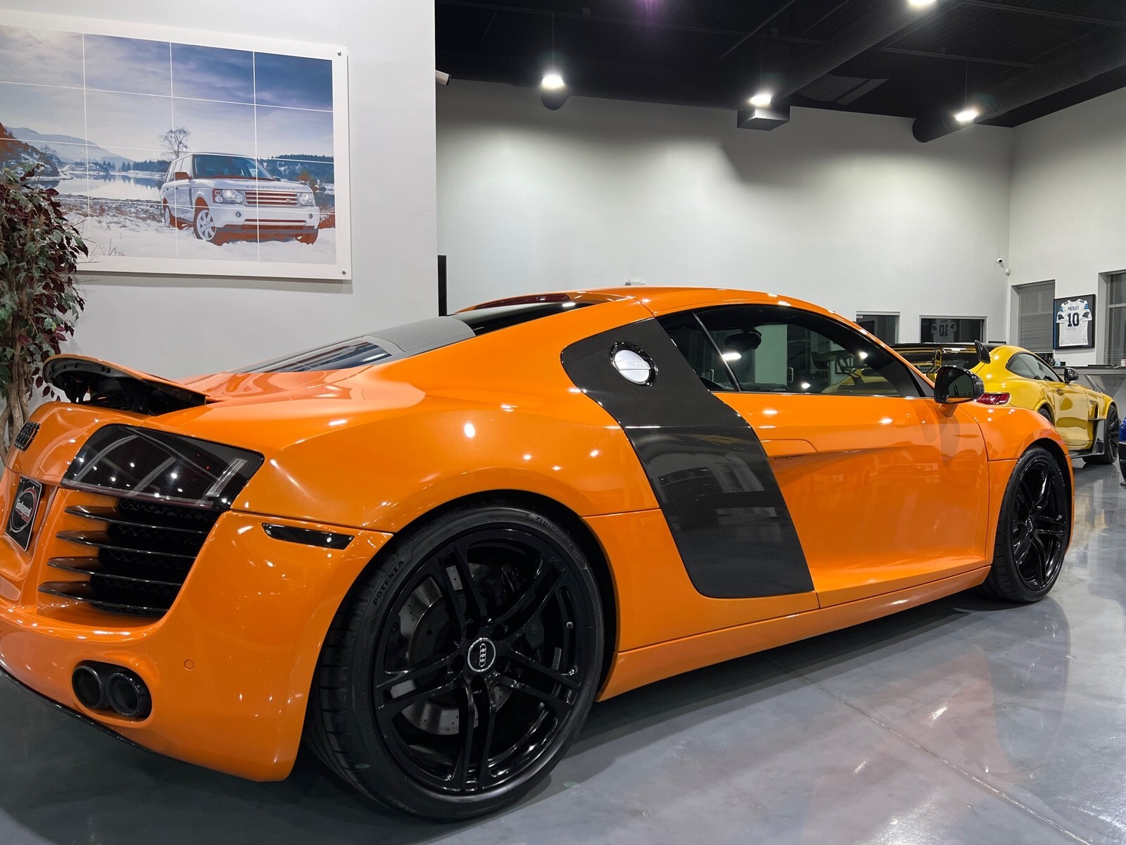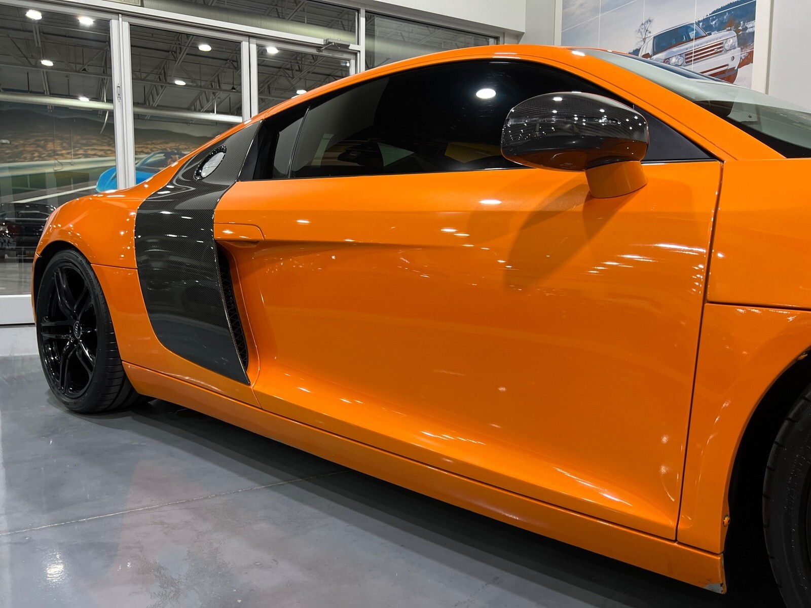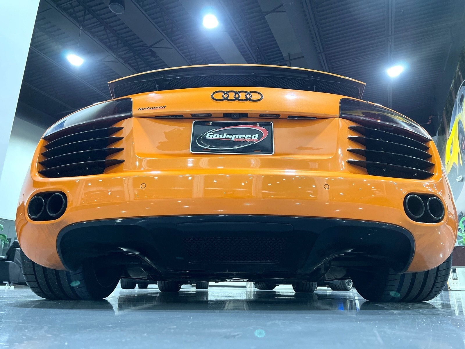 Clean CARFAX, naturally-aspirated 4.2L V8 rated at 420 horsepower, automated 6-speed transmission, custom pearl orange paint, black leather interior w/ leather dashboard/door inserts/door handles, alcantara headliner, carbon fiber side blades, carbon fiber mirror caps, 19 5-arm double spoke gloss black wheels, Bang & Olufsen audio, Bluetooth handsfree phone connectivity, navigation, front and rear parking sensors, back-up camera, and more! Desirable platform with timeless style! $137,100 MSRP when new in 2008! Link to video displaying exhaust sound: ZzX4jNsp7SU Known modifications include: Coilover suspension and cat-back exhaust! Recent service/maintenance include: NEW VALVE COVER GASKETS, OIL CHANGE, ALIGNMENT, and FOUR TIRES! (~$3,000 parts/labor) **Window sticker is a duplicate version, prices and options might vary** MSRP $118,000.00 INSTALLED OPTIONS [PLG] Fine Nappa Leather Seat Trim included [PND] Audi Navigation System Plus 6.5 TFT color display (2) SD card inserts DVD-based maps for US/Canada phase diversity radio data system (RDS) autostore function graduated audio level adjustment (GALA) voice guidance (5) language settings $2,000 [6W9] Front Grille Filler Panel $0 [PL3] Enhanced Leather PKG fine Nappa leather seat trim leather door inserts & door handles black leather dashboard black leather cowl $5,500 [PPD] Premium PKG front/rear Audi parking system w/rearview camera 6-disc CD changer Audi hill hold assist HomeLink Bluetooth phone prep auto-dimming exterior mirrors seatback storage nets luggage net on rear shelf $3,500 [PL1] Leather Elements fine Nappa leather seat trim leather door inserts & door handles $2,000 [9VK] Bang & Olufsen Sound System (12) speakers 10-channel amplifier w/465-watt combined output digital signal processing (DSP) vehicle noise compensation w/microphone True Image $1,800 [6NN] Black Alcantara Headliner $1,300 [6H3] Carbon Sigma Side Blade $2,000 Original Shipping Charge $1,000 RETAIL PRICE (ORIGINALLY NEW) $137,100.00