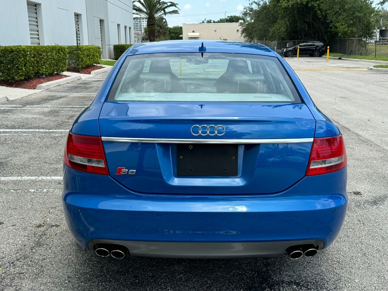 GORGEOUS 2007 AUDI S6 QUATTRO AWD 5.2 V10 WITH 101900 ORIGINAL MILES. AMAZING COBALT BLUE METALLIC OVER ASH PREMIUM LEATHER INTERIOR, LOADED WITH EVERY OPTION, DRIVES BRAND NEW LIKE A ROCKET, VERY FAST RARE UNIQUE CAR. THIS BEAUTIFUL BEAST IS IN IMMACULATE CONDITION, DRIVES ABSOLUTELY BRAND NEW, HAS NO ANY ISSUES. IOWA NON-SMOKER RUST-FREE CAR, NEVER SEEN SNOW, ALWAYS GARAGE KEPT. CLEAN 2-IA-OWNERS CARFAX REPORT, PERFECT HIGH SCORE AUTOCHECK. WE FINANCE. ANY CREDIT. WE DO TRADES. WARRANTY. WE SHIP ALL OVER 48 STATES AND ANY WORLDWIDE PORT.