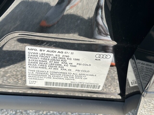 Vehicle Original VIN : WA1L2BFZ1NP050245