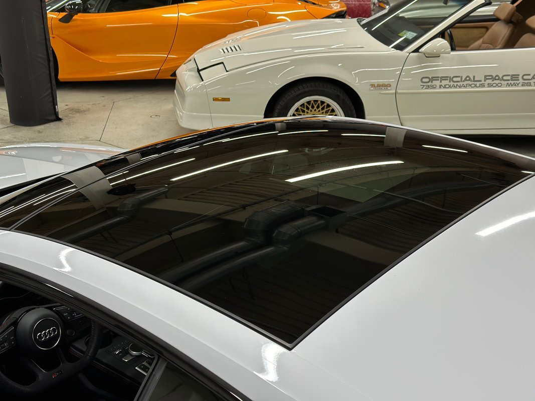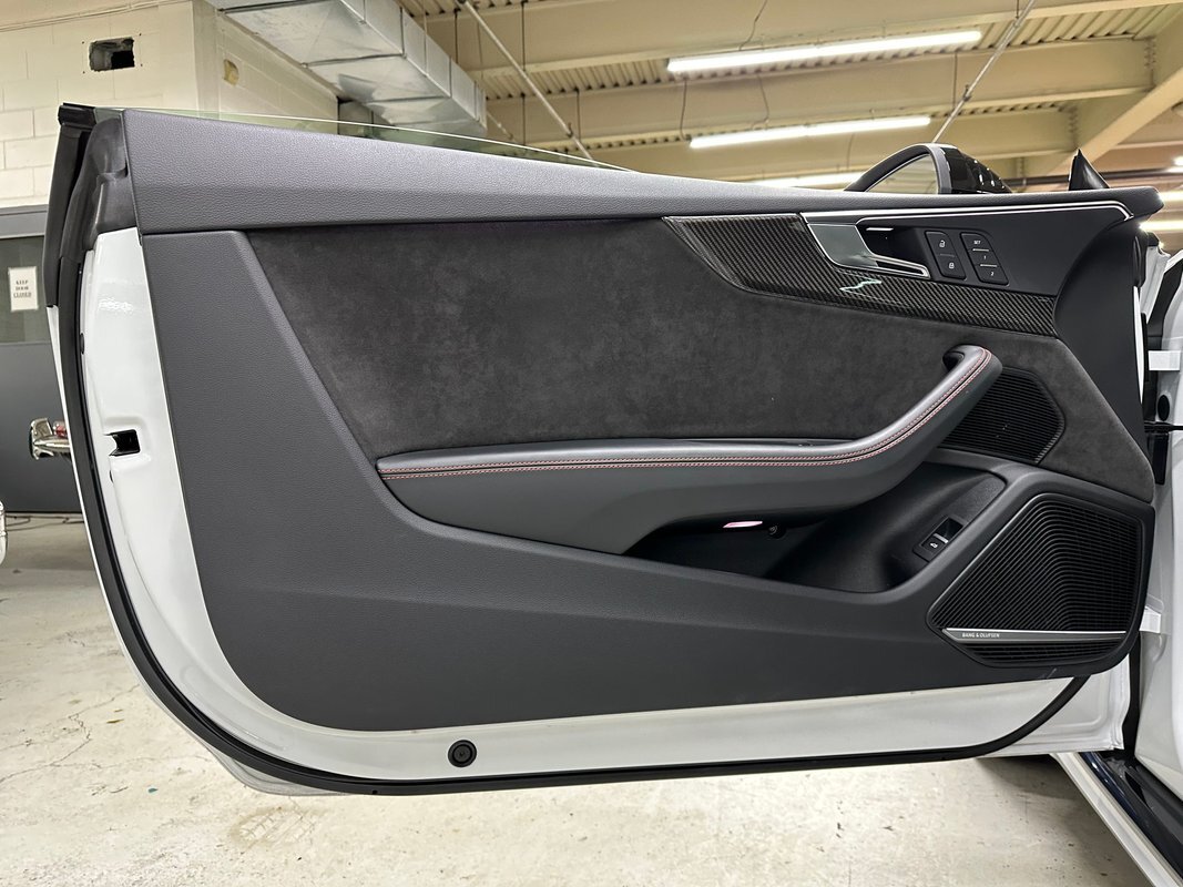 Factory Options: Glacier White Metallic, R5 Driver Assistance Package, Dynamic Package, 20" 5-Arm-Peak Design Forged Wheels, Milled Cut, Black Optic Package, Fine Nappa Leather Package, Bang & Olufsen Sound System with 3D Sound, Audi Guard All-Weather Front & Rear Floor Mats-Black RS5 Logo.