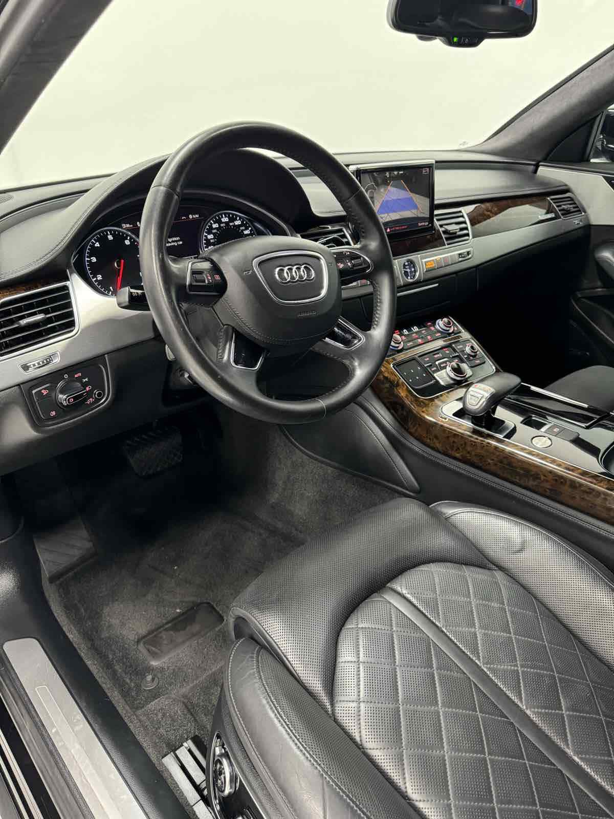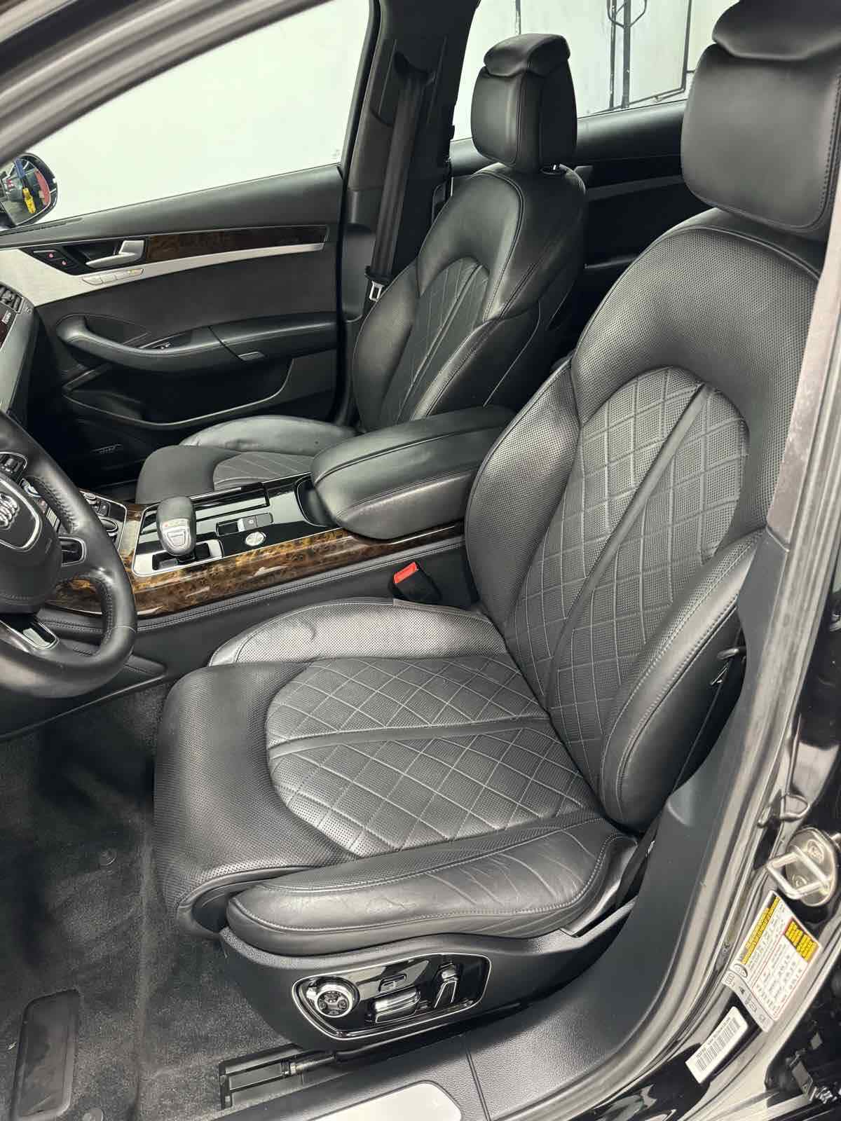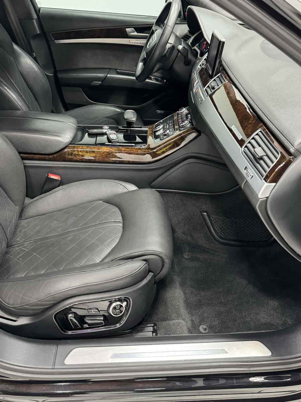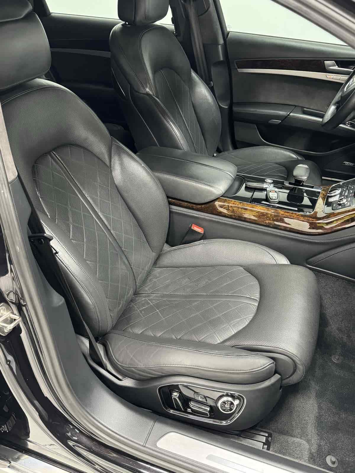 World-class luxury and style are yours to enjoy in our Brilliant Black 2014 Audi A8 3.0T quattro Sedan. Motivated by a SuperCharged 3.0 Liter V6 delivering 333hp paired with an 8 Speed Automatic transmission for impressive performance. An adaptive air suspension rewards you with an exceptionally smooth - quiet ride as you cruise down a highway earning nearly 28mpg in this sensational All Wheel Drive executive luxury sedan. Whether tackling your daily errands or enjoying a long-distance journey - our Audi looks incredible wherever it goes thanks to aerodynamic styling highlighted by a power sunroof - adaptive bi-xenon headlamps - and aerodynamic alloy wheels. Step inside our A8 3.0T - take in the ergonomic design featuring stylish wood trim - and feel the soft leather surrounding you. You'll feel your heart rate decrease once you relax in heated/cooled power front seats and enjoy our Audi's calming ambiance. Other niceties such as a multi-function steering wheel - keyless entry/ignition - ambient lighting - soft-close doors - a power rear-window sunshade - and dual-zone automatic climate control add to your comfort. In addition - a full-color MMI infotainment system keeps you informed and entertained with navigation - Bluetooth - HD/available satellite radio - and concert-quality Bose surround sound. Peace of mind adds to your driving pleasure in our Audi with myriad technologies including a backup camera - front/rear parking sensors - rain-sensing wipers - and stability/traction control. You deserve to reward yourself with our phenomenal A8 3.0T! Save this Page and Call for Availability. We Know You Will Enjoy Your Test Drive Towards Ownership!