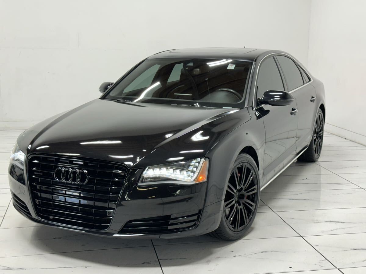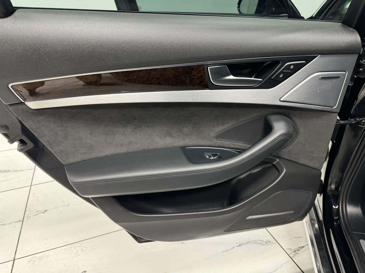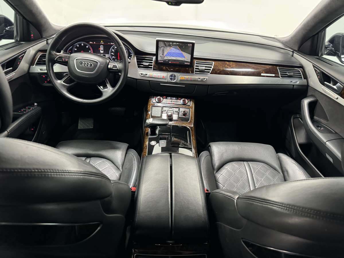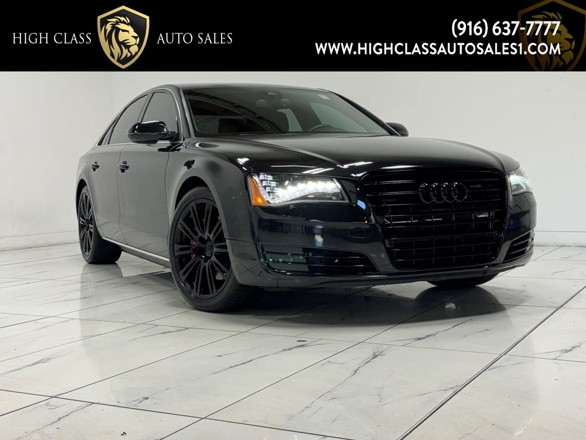 World-class luxury and style are yours to enjoy in our Brilliant Black 2014 Audi A8 3.0T quattro Sedan. Motivated by a SuperCharged 3.0 Liter V6 delivering 333hp paired with an 8 Speed Automatic transmission for impressive performance. An adaptive air suspension rewards you with an exceptionally smooth - quiet ride as you cruise down a highway earning nearly 28mpg in this sensational All Wheel Drive executive luxury sedan. Whether tackling your daily errands or enjoying a long-distance journey - our Audi looks incredible wherever it goes thanks to aerodynamic styling highlighted by a power sunroof - adaptive bi-xenon headlamps - and aerodynamic alloy wheels. Step inside our A8 3.0T - take in the ergonomic design featuring stylish wood trim - and feel the soft leather surrounding you. You'll feel your heart rate decrease once you relax in heated/cooled power front seats and enjoy our Audi's calming ambiance. Other niceties such as a multi-function steering wheel - keyless entry/ignition - ambient lighting - soft-close doors - a power rear-window sunshade - and dual-zone automatic climate control add to your comfort. In addition - a full-color MMI infotainment system keeps you informed and entertained with navigation - Bluetooth - HD/available satellite radio - and concert-quality Bose surround sound. Peace of mind adds to your driving pleasure in our Audi with myriad technologies including a backup camera - front/rear parking sensors - rain-sensing wipers - and stability/traction control. You deserve to reward yourself with our phenomenal A8 3.0T! Save this Page and Call for Availability. We Know You Will Enjoy Your Test Drive Towards Ownership!