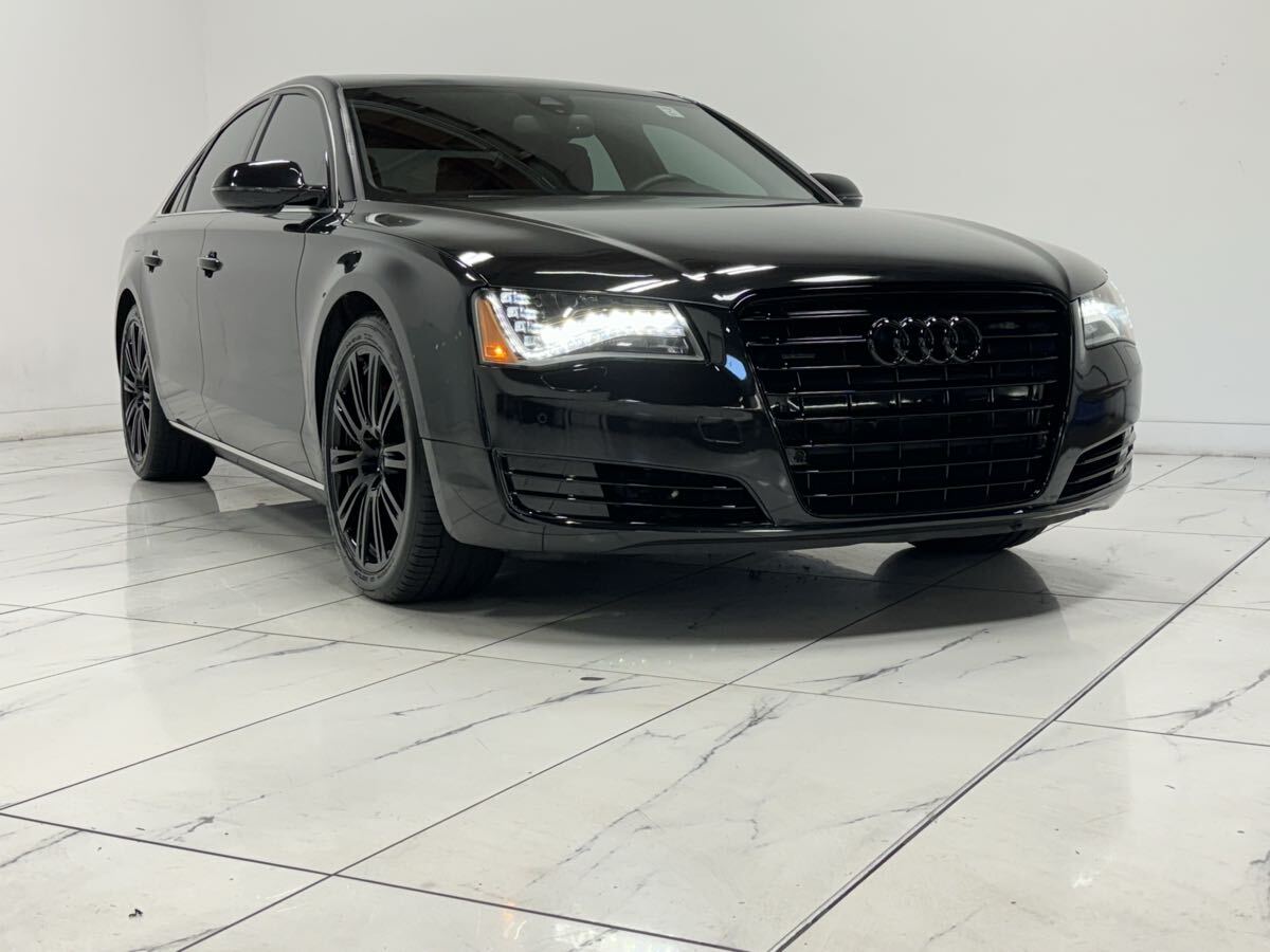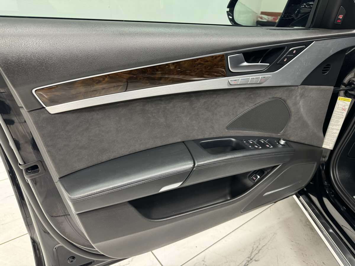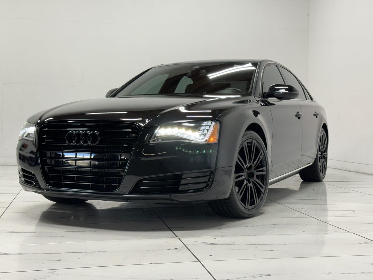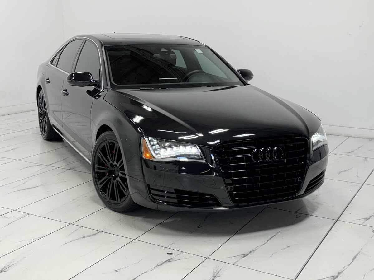 World-class luxury and style are yours to enjoy in our Brilliant Black 2014 Audi A8 3.0T quattro Sedan. Motivated by a SuperCharged 3.0 Liter V6 delivering 333hp paired with an 8 Speed Automatic transmission for impressive performance. An adaptive air suspension rewards you with an exceptionally smooth - quiet ride as you cruise down a highway earning nearly 28mpg in this sensational All Wheel Drive executive luxury sedan. Whether tackling your daily errands or enjoying a long-distance journey - our Audi looks incredible wherever it goes thanks to aerodynamic styling highlighted by a power sunroof - adaptive bi-xenon headlamps - and aerodynamic alloy wheels. Step inside our A8 3.0T - take in the ergonomic design featuring stylish wood trim - and feel the soft leather surrounding you. You'll feel your heart rate decrease once you relax in heated/cooled power front seats and enjoy our Audi's calming ambiance. Other niceties such as a multi-function steering wheel - keyless entry/ignition - ambient lighting - soft-close doors - a power rear-window sunshade - and dual-zone automatic climate control add to your comfort. In addition - a full-color MMI infotainment system keeps you informed and entertained with navigation - Bluetooth - HD/available satellite radio - and concert-quality Bose surround sound. Peace of mind adds to your driving pleasure in our Audi with myriad technologies including a backup camera - front/rear parking sensors - rain-sensing wipers - and stability/traction control. You deserve to reward yourself with our phenomenal A8 3.0T! Save this Page and Call for Availability. We Know You Will Enjoy Your Test Drive Towards Ownership!