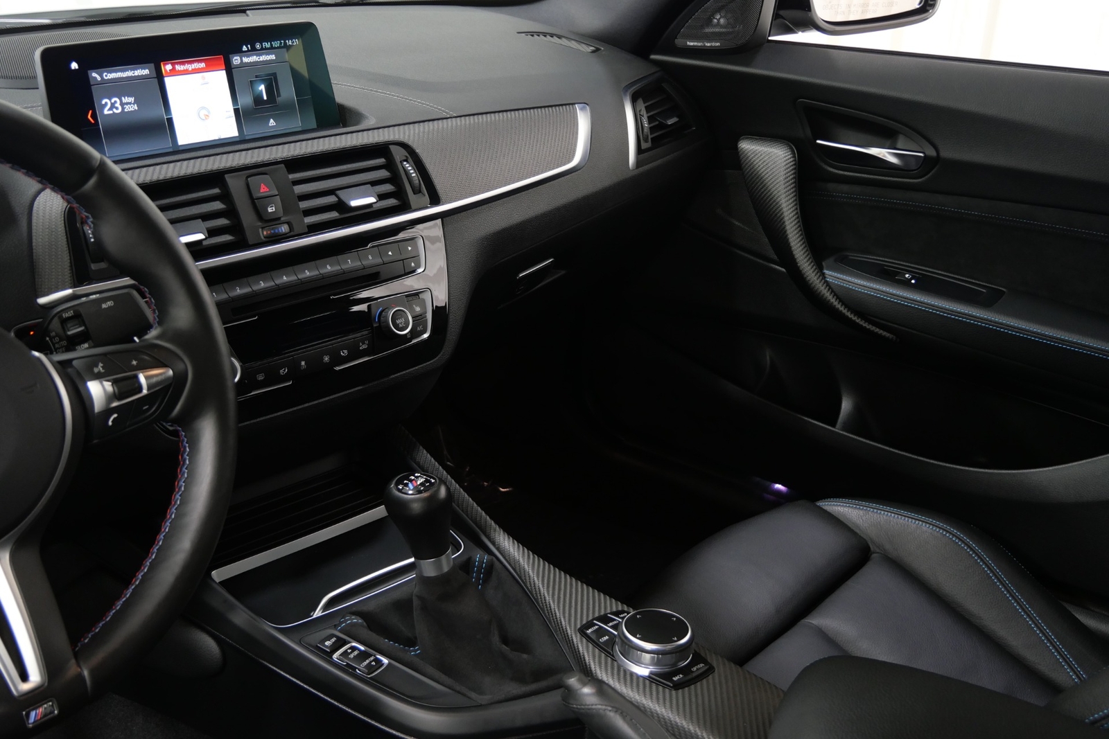 We have just added to our extensive exotic car inventory a beautiful 2018 BMW M2 in Alpine White over Black leather with only 17,931 miles. This M2 is loaded with: 3.0 Liter twin turbo I6, 6 speed manual transmission, 19 inch style 437 M wheels, executive package (heated steering wheel, rear park distance control, adaptive LED headlights, automatic high beams, active driving assistant, wireless charging, WiFi hotspot, speed limit information), navigation, carbon fiber interior trim, carbon fiber mirror caps, carbon fiber front splitter, carbon fiber rear spoiler, satellite radio, keyless start, heated front seats, Harman/Kardon surround sound, Apple CarPlay, park distance control with rear camera, dual zone climate control, floor mats and much more.