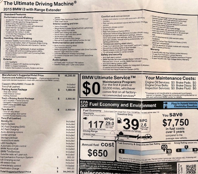 Great car in excellent condition! One owner, garage kept, all maintenance done by BMW. Never been smoked in. Just had it detailed inside and out.Tera World Edition, all leather seats. Tinted windows. Body in great condition except for some scuff marks on wheels. Great city or college town car -- fun to drive, easy to maneuver and park. Low maintenance and low operating cost. Hybrid operates on electric with gas reserve. Sad to see it go, but Tesla made an offer I couldn't refuse. Comes with all accessories and original owner's manual. This car has been babied and it shows!