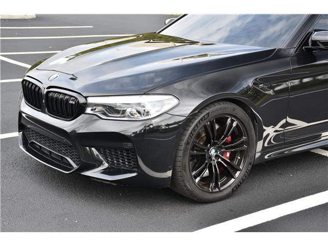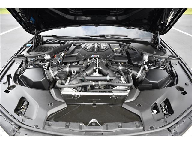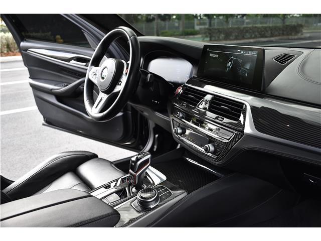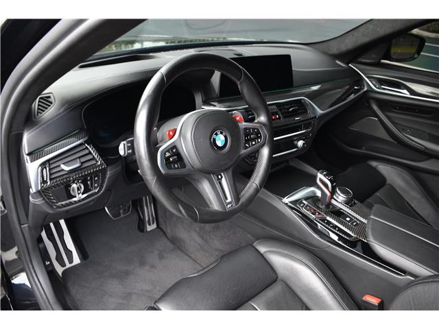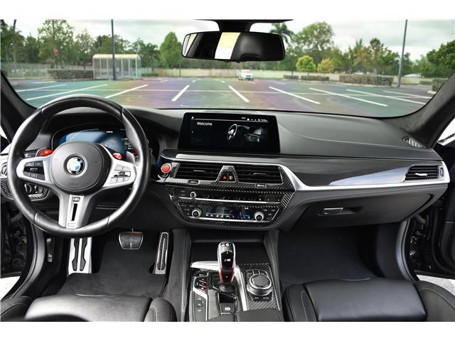 Wearing Black Sapphire Metallic exterior over black leather and Alcantara interior, carbon fiber inserts, and an exposed carbon fiber roof, this M5 Competition is a sight to be seen.