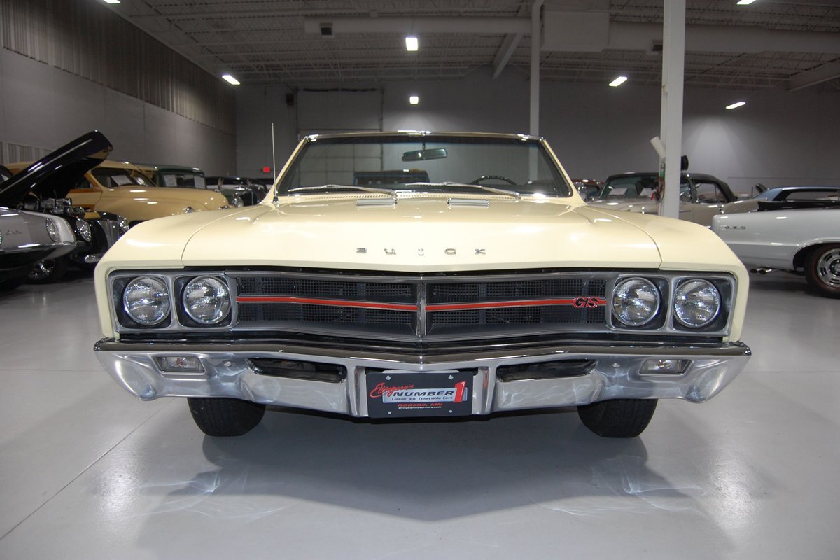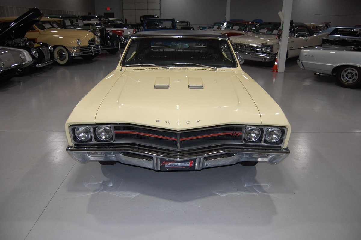 This 1967 Buick GS 400 is the quintessential gentleman's muscle car, with fantastic power and great options. The Gran Sport debuted in 1965 as a mid-year performance-oriented option package for the Skylark, which was Buick's plush intermediate model. In 1966, the GS became its own standalone model as Buick started to lean into the muscle car image of the day. Interestingly, the Gran Sports were equipped with 401 Cubic Inch V8 engines, however they were advertised as 400 V8s due to General Motors' 400 CID limit on their mid-size offerings at the time. 1967 saw the debut of the GS340 which was the low-cost version of the Gran Sport, but the GS-400 was still the big dog on the block. The advertising for the GS400 in 1967 centered around the fact that even though the GS-400 was truly a muscle car, it has rich options and plush interiors as one could expect on a Buick. The '67 GS stood out from the rest of Buick's offerings at the time with twin air scoops on the hood, special badging, and GS grille. The 2 door convertibles are pretty rare with only 2,140 units produced in 1967. This particular GS400 comes to us from a Southern-based collector who purchased the car from a Nevada-based collector. Under the hood on this Buick is a 401 Cubic Inch V8 engine with a single 4 barrel carburetor tucked under a super cool looking twin-inlet "Star Wars" air cleaner that pushed out 340 horsepower in its day. Anybody can take this Buick Convertible for a spin because the 400 V8 is hooked up to an Automatic Transmission. Being that Buicks were luxury cars at the time, the Gran Sports typically came loaded with options. With power steering, getting in and out of tight spaces at car shows is much easier as is squeezing into a tight garage spot. Power brakes assist you bringing this Buick to a stop with all that extra muscle under the hood. The black vinyl power convertible top goes up and down with ease with the simple flick of a switch under the dash. This GS400 is even equipped with power windows for that extra touch of luxury. The exterior on this Buick GS has been beautifully refinished in Ivory. This Buick GS-400 rides on whitewall radial tires wrapped around Rallye rims that give this muscle car a fantastic look and an even better ride. The interior on this Buick GS is stunning! The front bucket seats and rear bench seat have been correctly reupholstered in Madrid grain black vinyl that provides a nice contrast to the exterior look of the car. This GS400 is also equipped with a center console that houses the Automatic shifter and provides a bit more storage. The padded dash, door panels, and steering wheel are all in wonderful condition and appear to be in their stock configuration. The dash is equipped with a 120 MPH speedometer, fuel gauge, indicator lights, clock, and Sonomatic radio. Whether your garage is filled with 60s muscle cars or you're in search of your very first classic car, this 1967 Buick GS 400 Convertible would be an excellent choice. Give us a call today!