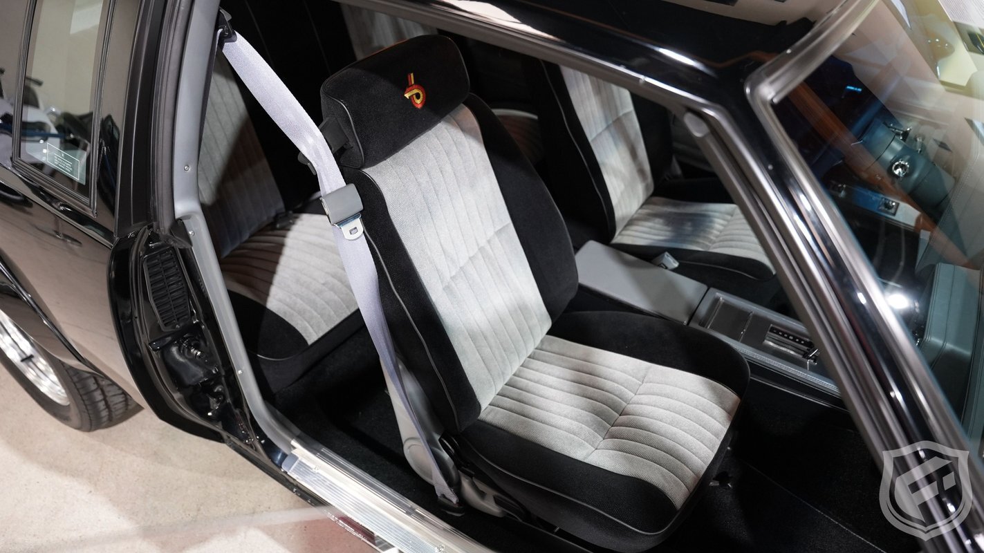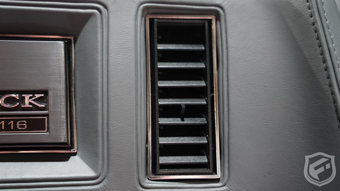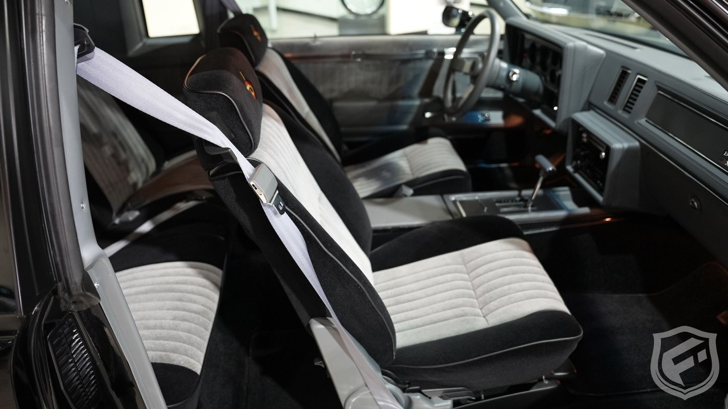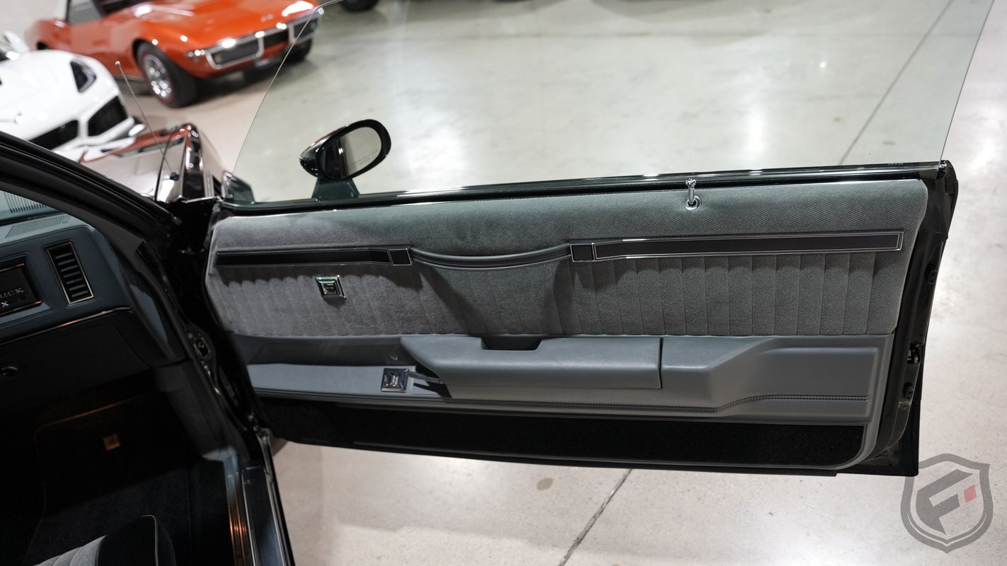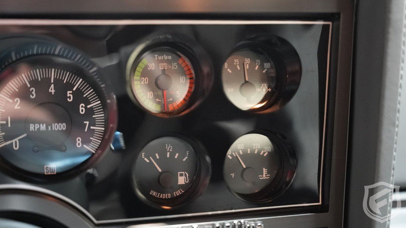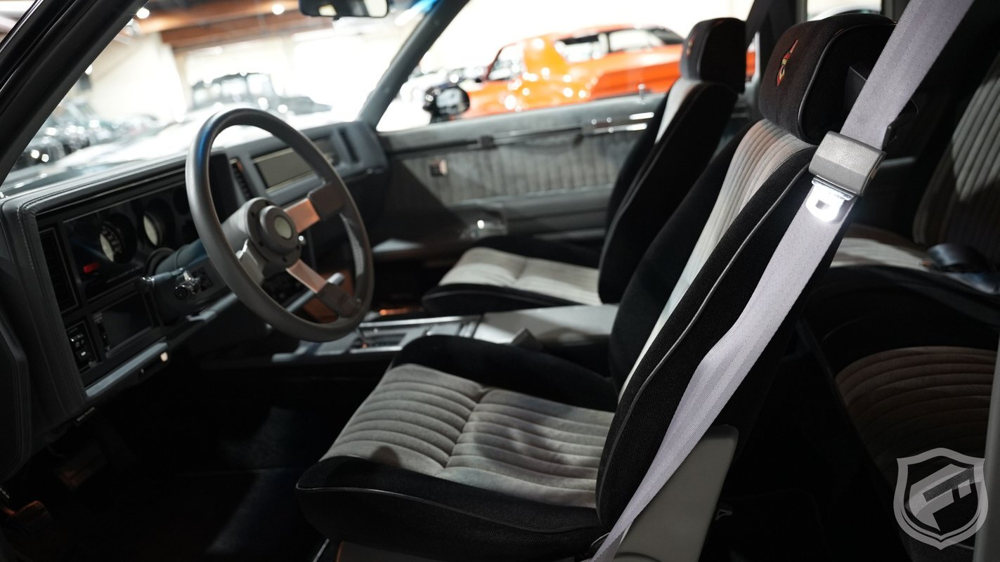 Exterior styling changes include vents located on each front fender, 16 inch black mesh style wheels with VR-speed rated tires, and deletion of the hood and fender emblems. The interior changes of the GNX included a serial number on the dash plaque and a revised instrument cluster providing Stewart-Warner analog gauges, including an analog turbo boost gauge.