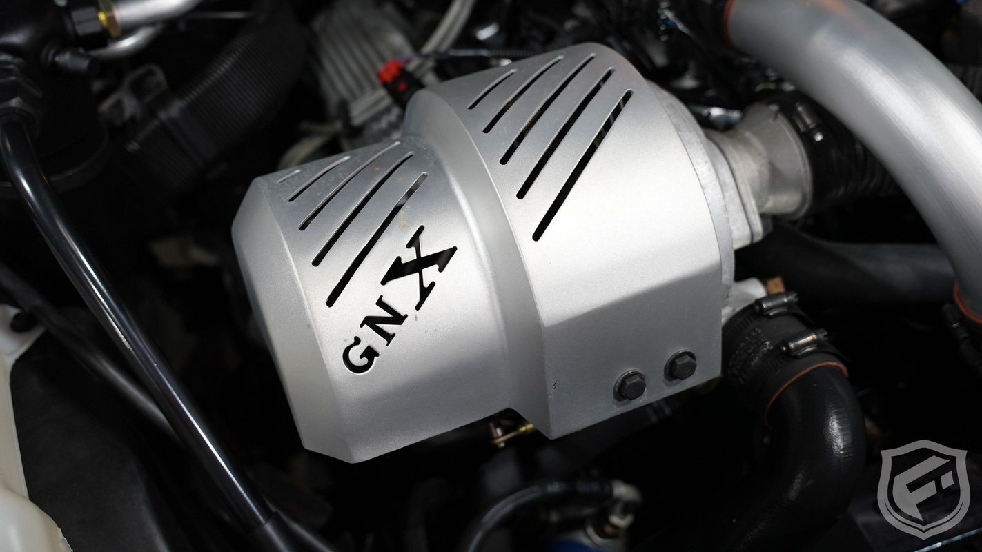 This was created to be the "Grand National to end all Grand Nationals." Changes made included a special Garrett AiResearch T-3 turbocharger with a ceramic-impeller blowing through a more efficient and significantly larger capacity intercooler with a "Cermatel (ceramic-aluminum) coated" pipe connecting the intercooler to the engine. A GNX specific EEPROM, low-restriction exhaust with dual mufflers, reprogrammed turbo Hydramatic 200-4R transmission with a custom torque converter and transmission cooler, and unique differential cover/Panhard bar included more of the performance modifications.