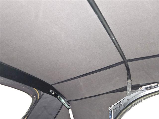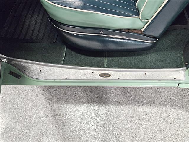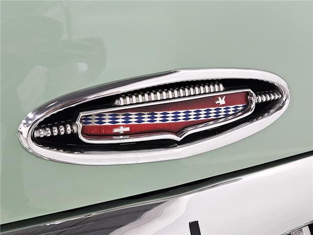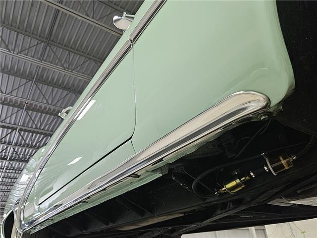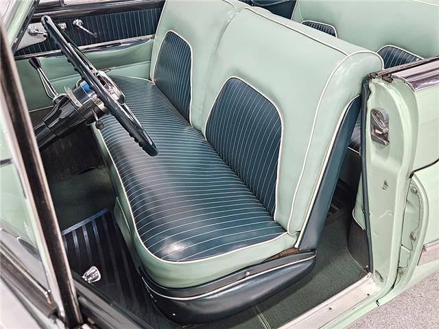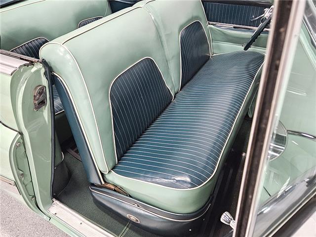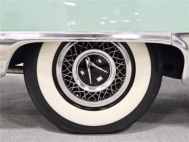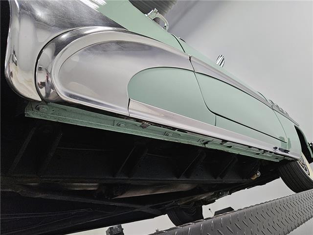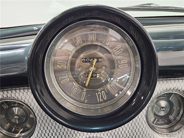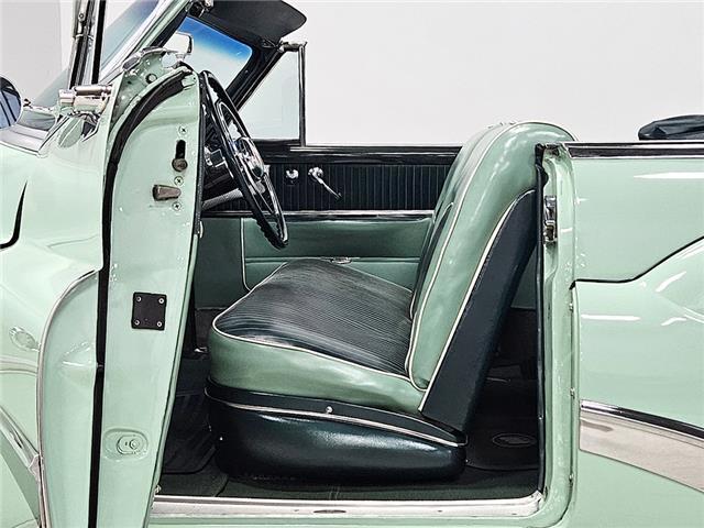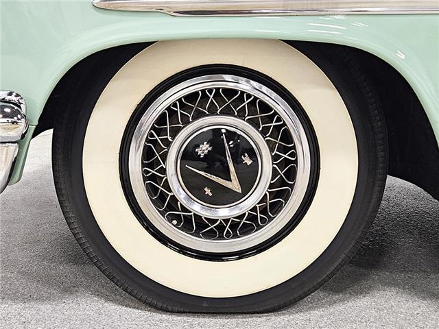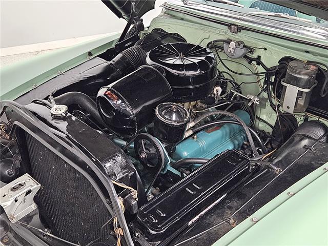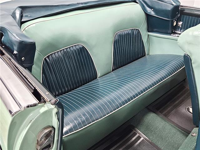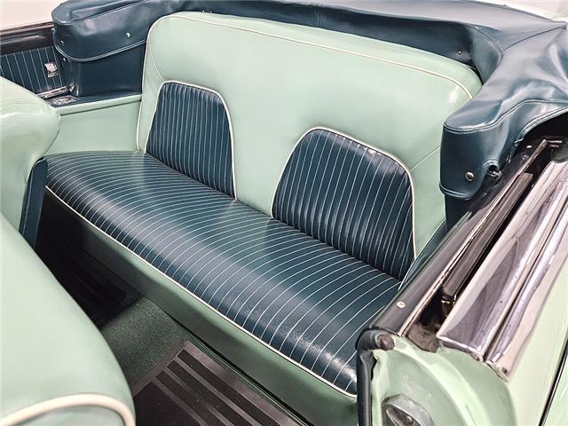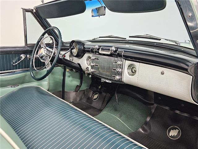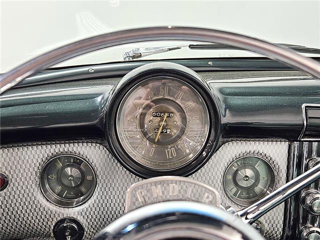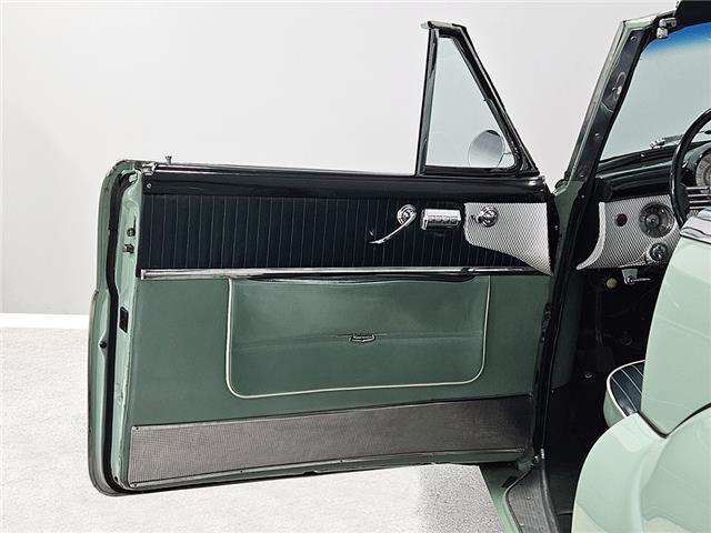 The matching two-tone green interior is likewise how this car was built in 1953, and it’s quite stylish with contrasting white piping. The door panels continue the theme and were restored with the rest of the interior, and the carpets offer the proper nap and texture. The instrument panel is a cool pattern that stretches from end to end, and the gauges are contained in three round pods that are easy to read. The big steering wheel is color-matched to the interior and shows both a “POWER STEERING” callout and a 50th anniversary emblem on the horn button. The original AM radio works and has a supplemental connector that will enable you to use your phone, a great feature! Even the clock ticks away reliably over there on the passenger’s side. Power windows, a power seat, and a power convertible top were standard equipment and the entire hydraulic system has just been serviced so they all work like they should. And speaking of the top, it’s beautifully fitted black canvas with a correct green vinyl boot to give the car a finished look. Back seat space is big enough for real-sized adults and there’s a massive, well-upholstered trunk that includes a full-sized spare tire.