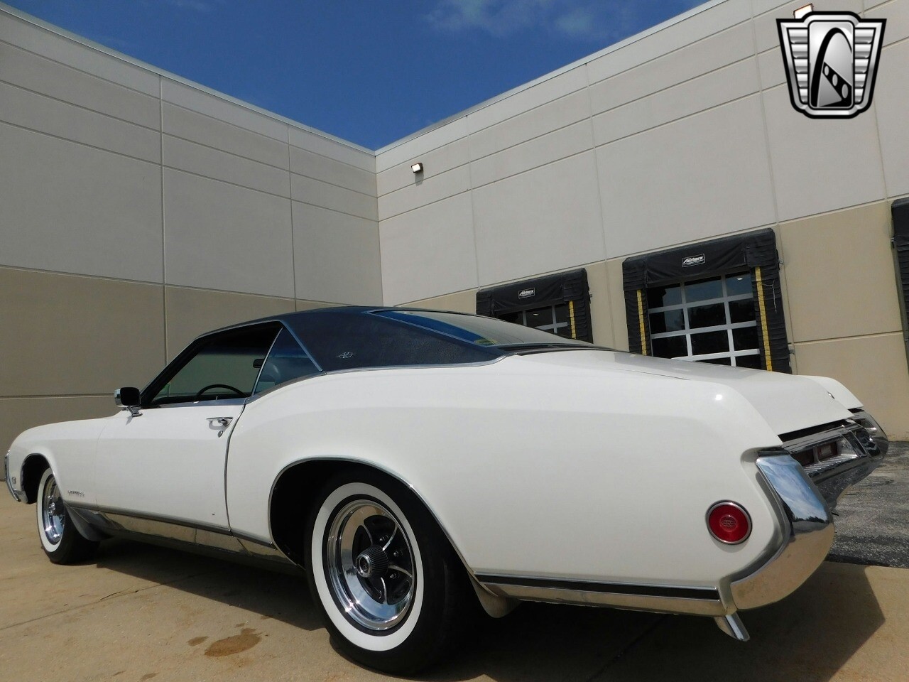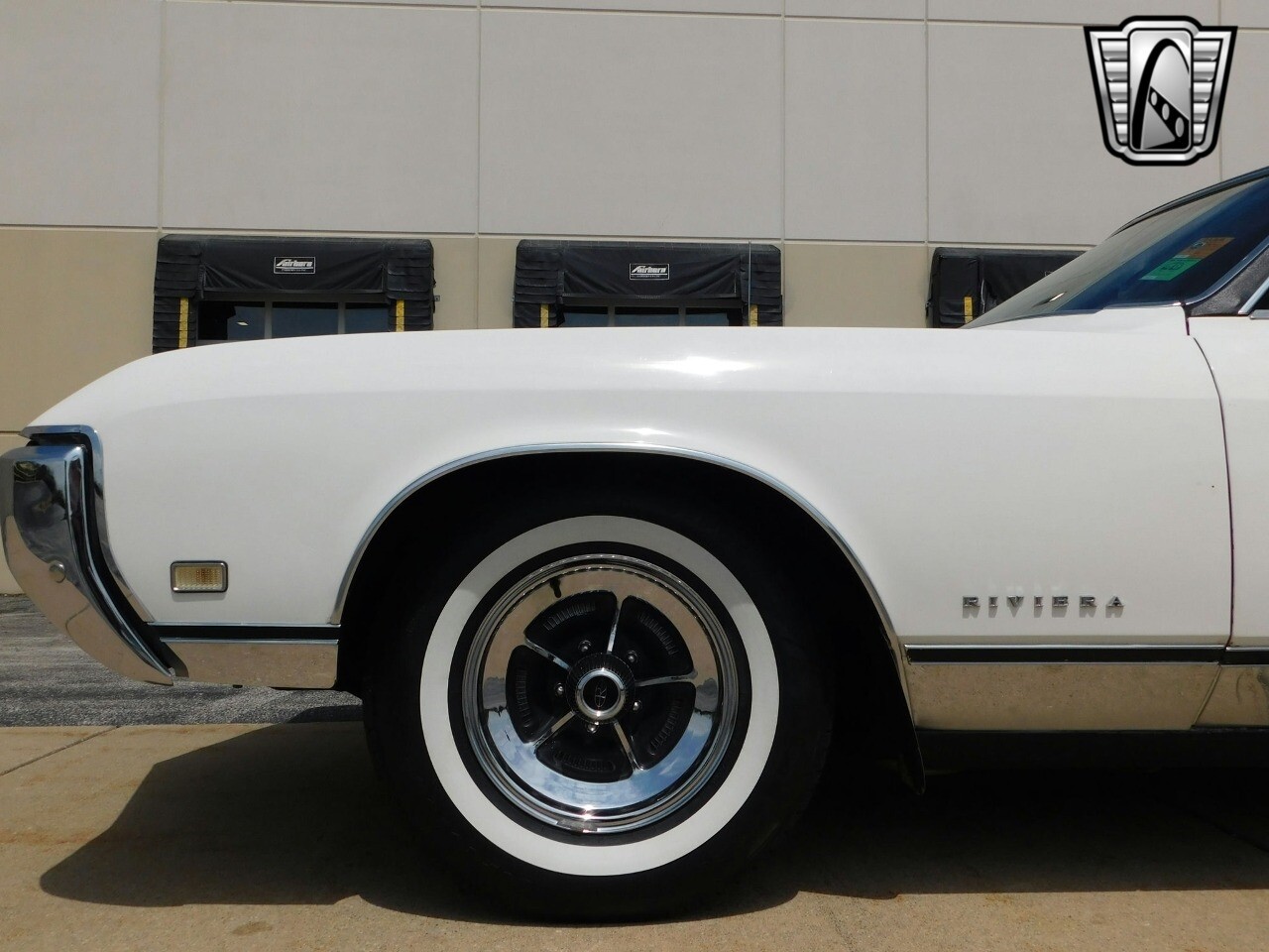 To complete the look, this Buick Riviera sits on whitewall tires, a nod to its era that enhances its overall vintage appeal.