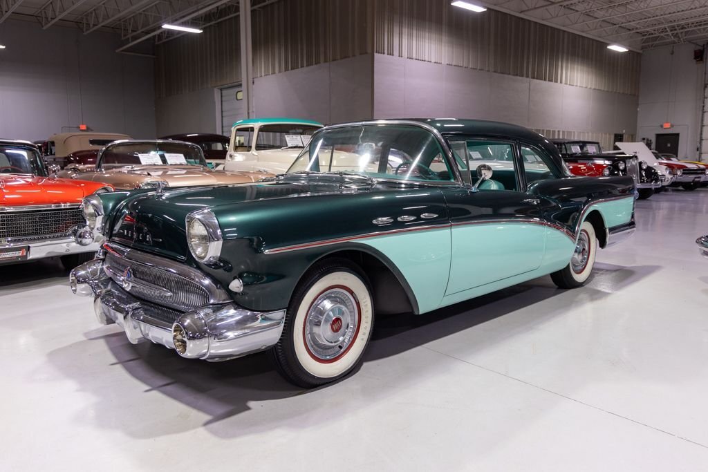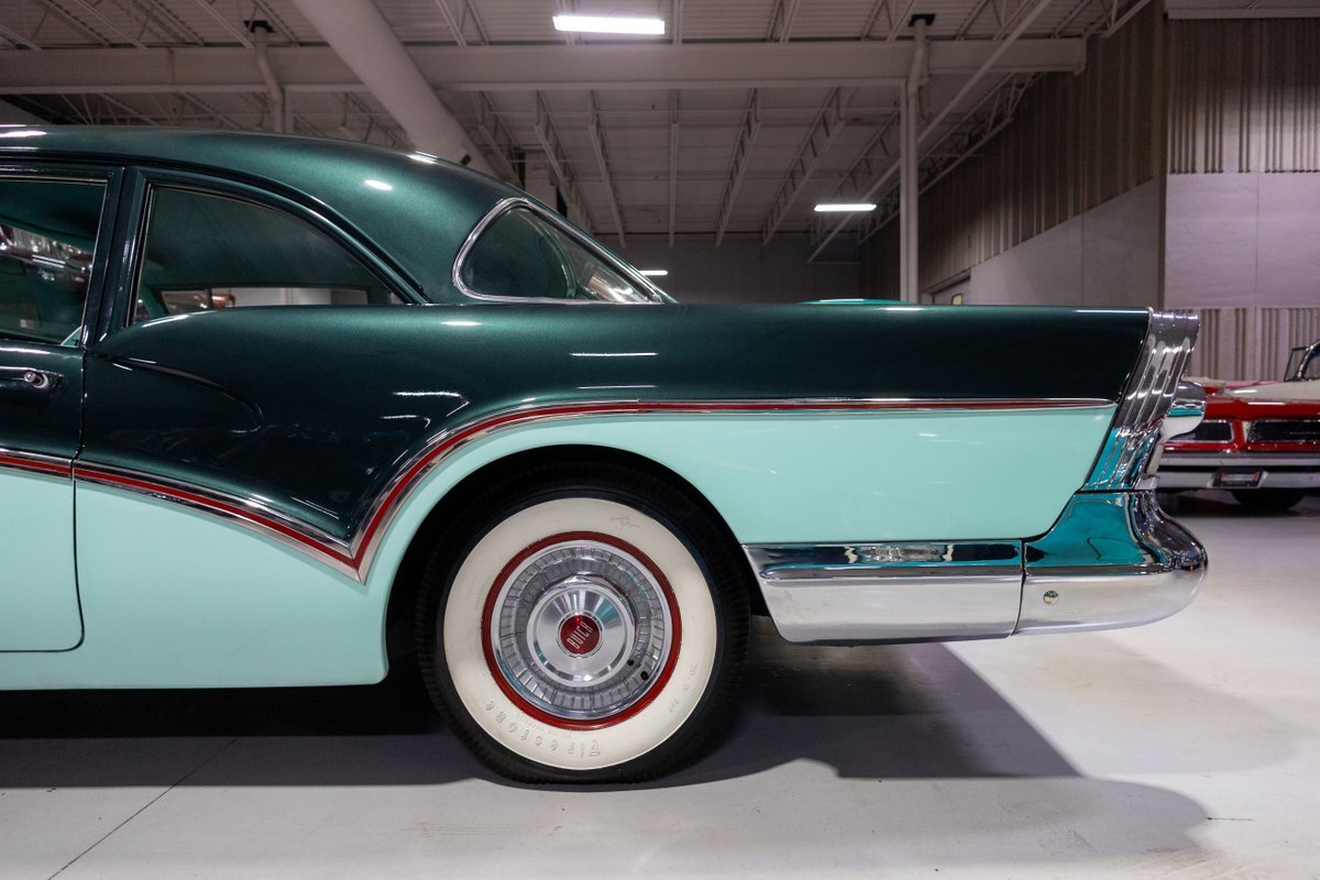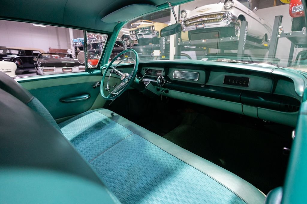 This 1957 Buick Special is a charming 50s cruiser that would make a great entry-level classic car. To much surprise, Buick seemed to take a step back in terms of its sale in 1957. In fact, the GM marque saw a nearly 25% decline in sales and dropped to 4th place among America's automakers, replaced by Plymouth. The reason for Buick's decline in 1957 is a bit of a mystery and it certainly wasn't for Buick's lack of effort. When the 1957 Buicks debuted, there were absolutely gorgeous and sported completely redesigned bodies that were lower and wider which gave them a much more modern look. Up front, the grilles and front bumpers sported a completely new look, with the grilles featuring a thin vertical bar design capped off with a Buick emblem. Down the sides, a red-filled chrome sweepspear ran nearly the entire length of the car and, like virtually all post-war Buicks, the front fenders were trimmed with the iconic Buick ventiports. At the tail, the taillights were completely redesigned with prominent chrome trim as was the rear bumper which housed the partially hidden fuel filler door. The interiors were also considerably updated by Buick in 1957. The instrument cluster was completely enclosed into a modern-looking single unit that was mounted between a pair of large circles that housed the lights and wiper knobs. The rest of the dash had an entirely new profile that looked almost space-age. In addition to Buick's brand-new style in 1957, both inside and out, Buick also rolled out a brand-new engine across its entire passenger car lineup, the 364 "Nailhead", an architecture that would be used by Buick for nearly the decade that followed. In total, Buick produced 23,180 Special 2 door Sedans which explains why you don't see many of them at the local car shows or cruising down the road. Under the hood on this Buick Special is a Numbers Matching 364 Cubic Inch "Nailhead" V8 fed by a single 2 barrel carburetor that together were said to have created 250 horsepower when new. The 364 Nailhead V8 is backed by a Dynaflow Automatic transmission which was a $220 option back in 1957 and makes this 50s Buick an easy car for just about anybody to drive. A driver's side chrome outside mirror is a welcome addition to this '57 Buick Special since it makes squeezing in and out of a tight parking space much easier. Riding on a set of wide whitewall bias-ply tires mounted on red painted steel rims and accented with full Buick wheelcovers, this Series 40 Special has a fantastic look while parked or while cruising down the road. The exterior of this 1957 Special has been refinished in a gorgeous two-tone paint scheme consisting of a Kearney Green over Mint Green, with red accents, completing the exterior look of the car. The interior on this 1957 Buick Special 2 door sedan is charming! The front and rear bench seats are correctly upholstered in two-tone green vinyl with cloth inserts. The green carpeting, door panels, painted dash, and steering wheel have a fantastic stock look and appear to retain a nice stock look. The instrument cluster is outfitted with a a 120 MPH ribbon-style speedometer, temperature gauge, oil pressure gauge, amp gauge, and gasoline gauge. The dash is completed with the heater/defroster and lighting controls, along with a locking glove box. Whether you're buying your very first classic car or you're adding to an exisiting collection, this 1957 Buick Special would make an excellent choice. Give Ellingson's a call today at763-428-7337!