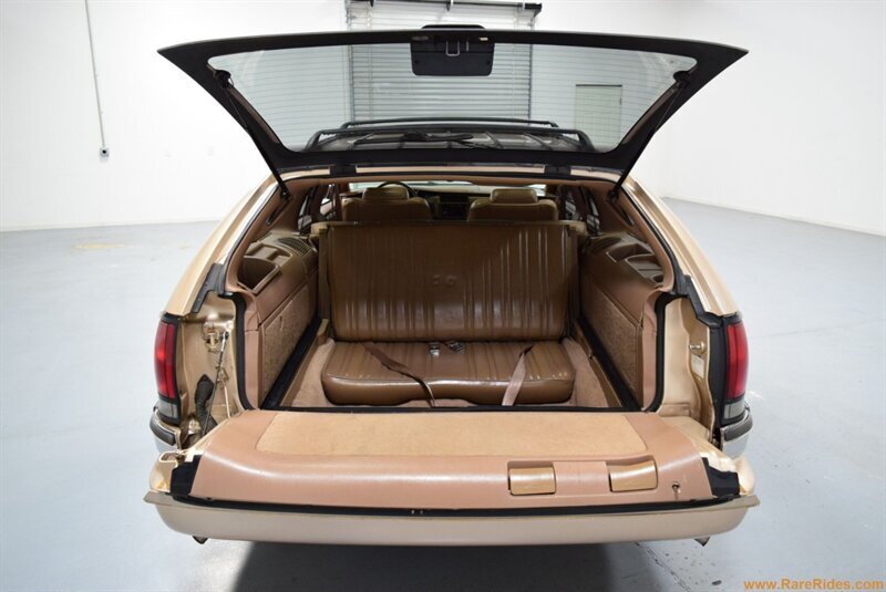Step inside to discover an excellent original interior, showcasing the comfort and functionality of the classic Roadmaster. The rear-facing third-row seating provides a unique touch, and the two-way tailgate adds practicality. Though there's a small hole in the driver's seat and some loosening of the headliner, these are minor considerations given the vehicle's age and character.