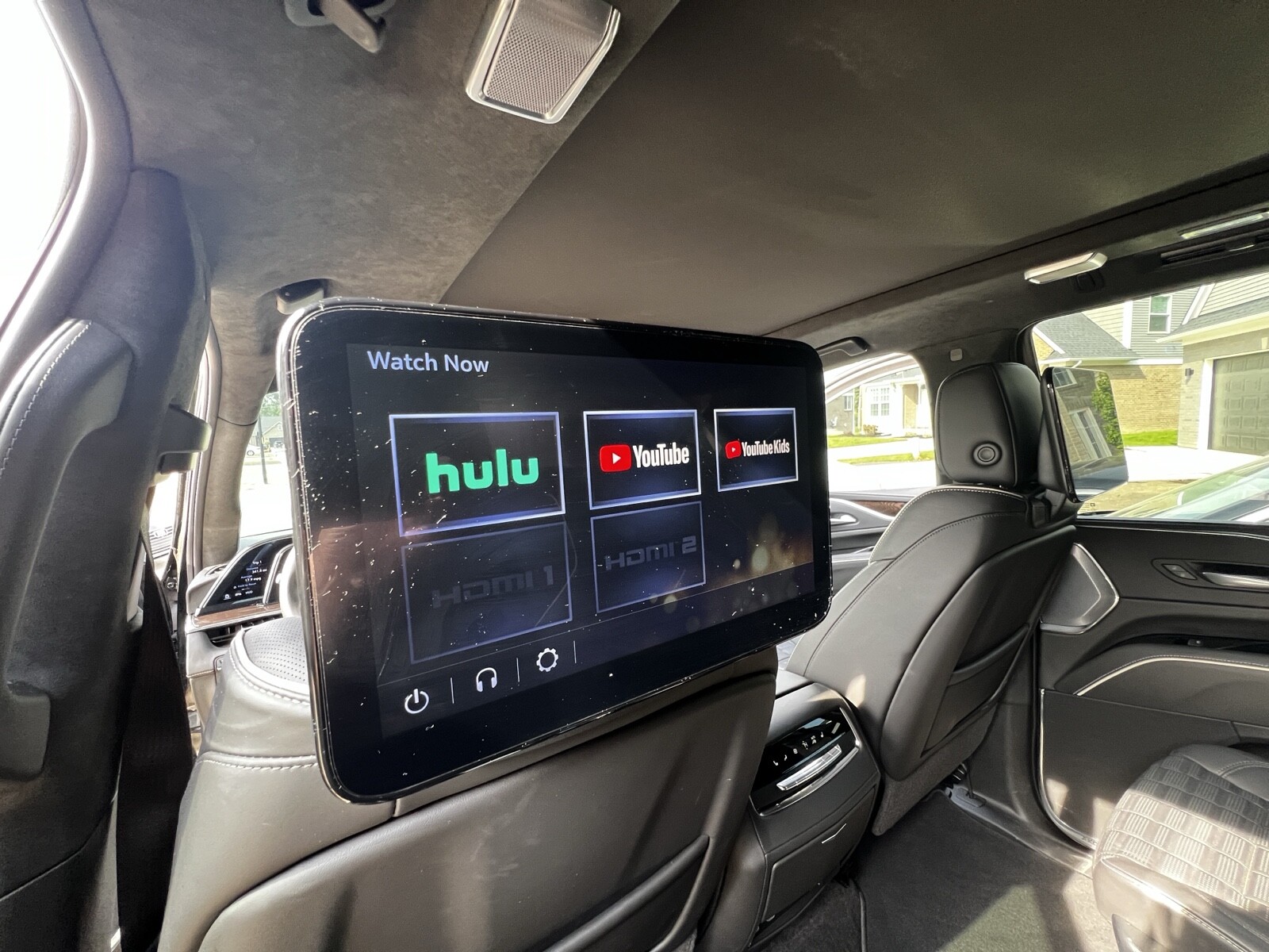 Rear-seat entertainment system with dual 12.6-inch displays.