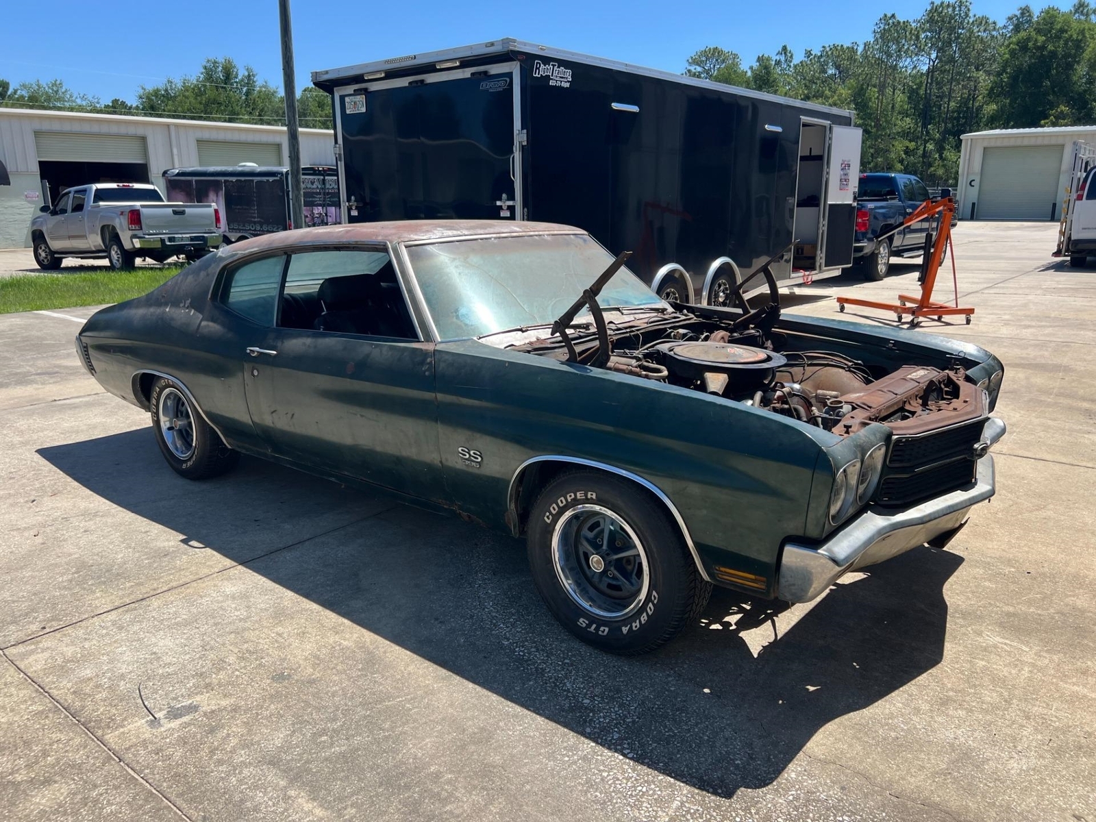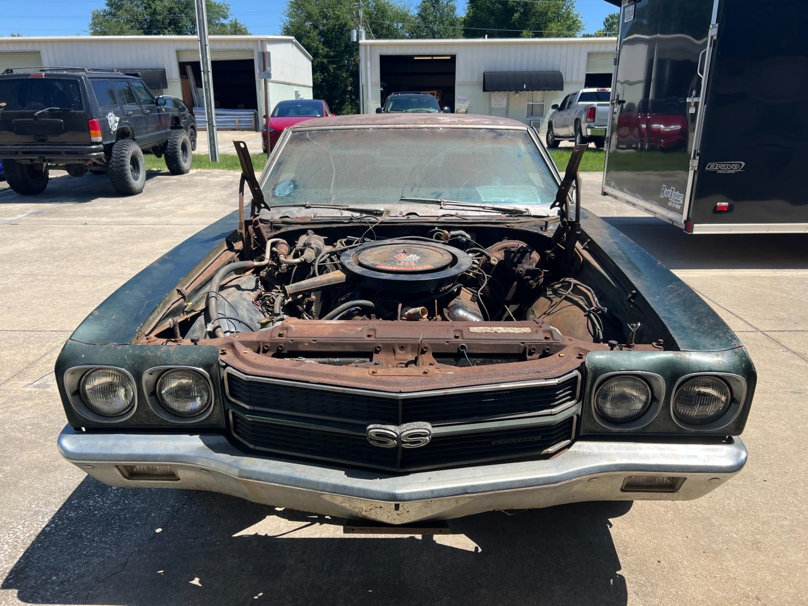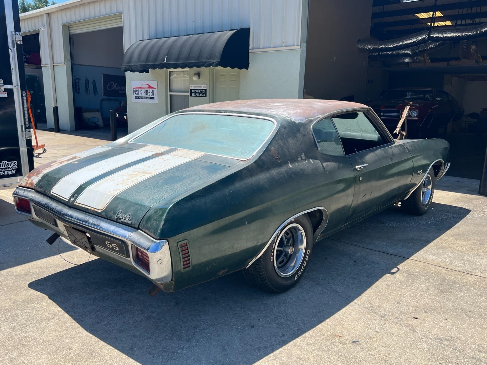 1970 CHEVELLE SS 396 L34 SURVIVOR PROJECT FACTORY AIR CONDITIONING This is an Amazing example of a complete Survivor type project. Fathom Green Code 48 with Black Interior full of Options and 2 Build Sheets Kansas Built with Amazing Solid Floors and Trunk. Build Date 04E – April 5th Week 1970 L – Indicates a SS model 48 48 PNT – Fathom Green W – White D88 Stripes 756 – Black Bucket Seat Interior Car is full of factory Options including the following: A01 – Tinted Glass A51 – Strato Bucket Seats C60 – Air conditioning D55 - Console D88 - Hood and Deck Stripes F41 - Special Performance Suspension (Standard on SS) G80 - Positraction Axle G94 – 3.31 Ratio Axle M40 – Turbo 400 Transmission N40 – Power Steering UM1 – AM Radio with Tape Player U14 – Gauge Package including Tachometer ZL2 – Special Ducted Hood (Cowl Induction) Z25 – SS 396 Package This is the Car to have and Invest in... Everything is there on this car to restore back to original. Has Factory Crayon Markings on the Firewall and Original Components throughout. Engine has evidence of never being out of the car. Original Motor Mounts, Factory Harrison 4 Core PD Coded Radiator with correct HD Radiator Support and Top Plate and the list goes on. Car is Located in our Ocala Location and available to be seen with an appointment. While we do our best to provide the highest quality muscle cars with an honest and reliable description and realize the importance of transparency when selling vehicles. That being said, we have not built, modified, changed or personally owned this vehicle. Whether this vehicle is consigned or owned by Past & Present Motor Cars we do not know the vehicles complete history since new. We want to be clear and try to answer any questions our customers might have prior to purchasing. Additionally, we not only welcome but we encourage 3rd party independent inspections. Please inquire prior to purchase to make sure the advertised vehicle has not already been sold. We list our vehicles on multiple websites and a vehicle can sell at any time. If a customer chooses to purchase sight unseen (many of our customers choose this option) the customer accepts the vehicle AS IS and WHERE IS and understands we cannot address concerns after purchase. For this reason, it's important all concerns are addressed prior to purchase. We make every effort to present accurate and reliable information, but use of this information is voluntary, and should only be deemed reliable after an independent review of its accuracy, completeness, and timeliness. It is the sole responsibility of the customer to verify the existence of options, accessories and the vehicle condition before time of sale. Financing is Available with low rates and Vehicle Shipping is available from our Showroom to your Garage. A Classic Car Warranty is Available for Purchase from a 3rd Party. Please speak to our Sales Associate or Company Representative for more information. Our team is working and available anytime by Phone or Text for your convenience at 407-559-7759. Thank you for your interest!