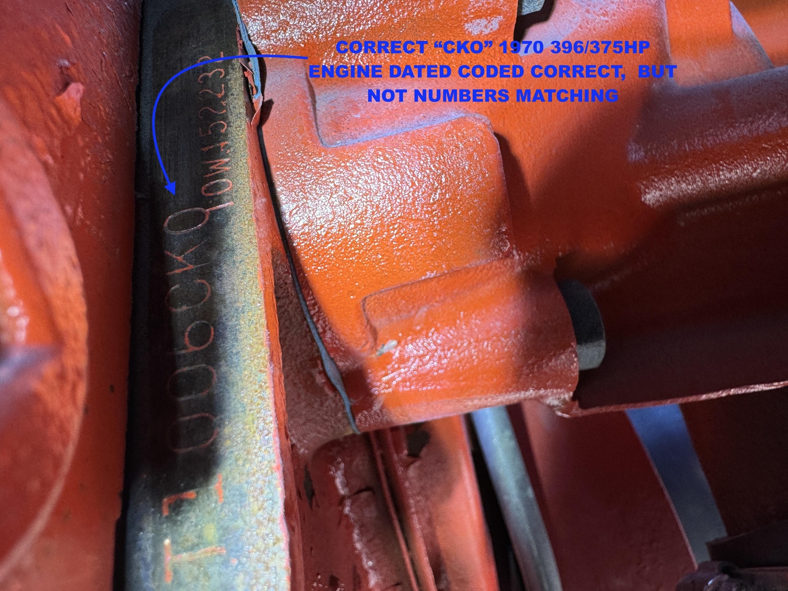 FRESH REBUILT CORRECT DATED CODED OCTOBER 1969 “CKO” 1970 L78 396/375HP ENGINE ..LESS THAN 200 MILES ON