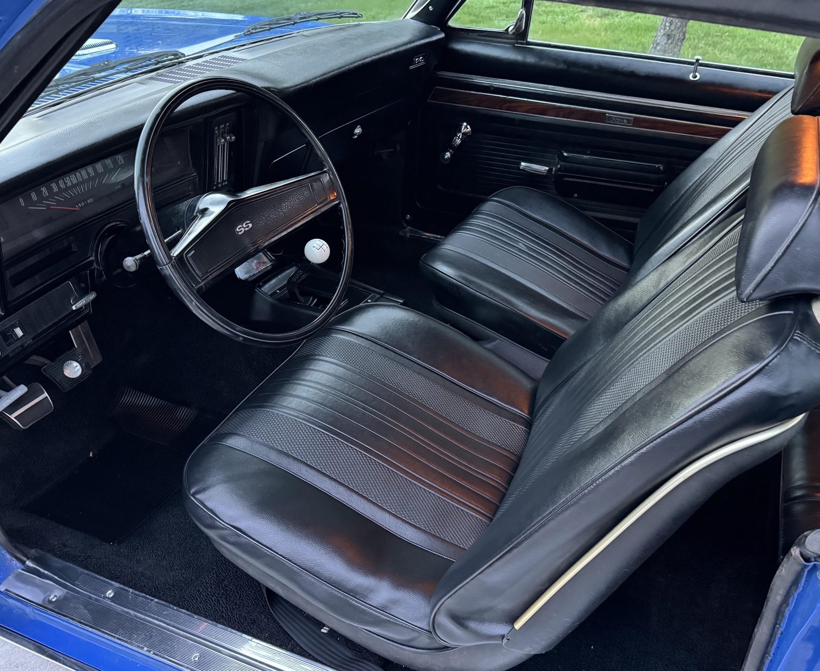 SUPER SHARP AND RARE FULLY DOCUMENTED WITH ORIGINAL SALES INVOICE 1970 NOVA SS L78 396/375HP 4SPD 12 BOLT PDB TACH GAUGES SOLID METAL FACTORY FATHOM BLUE CAR WITH BLACK BUCKETS CONSOLE INTERIOR
