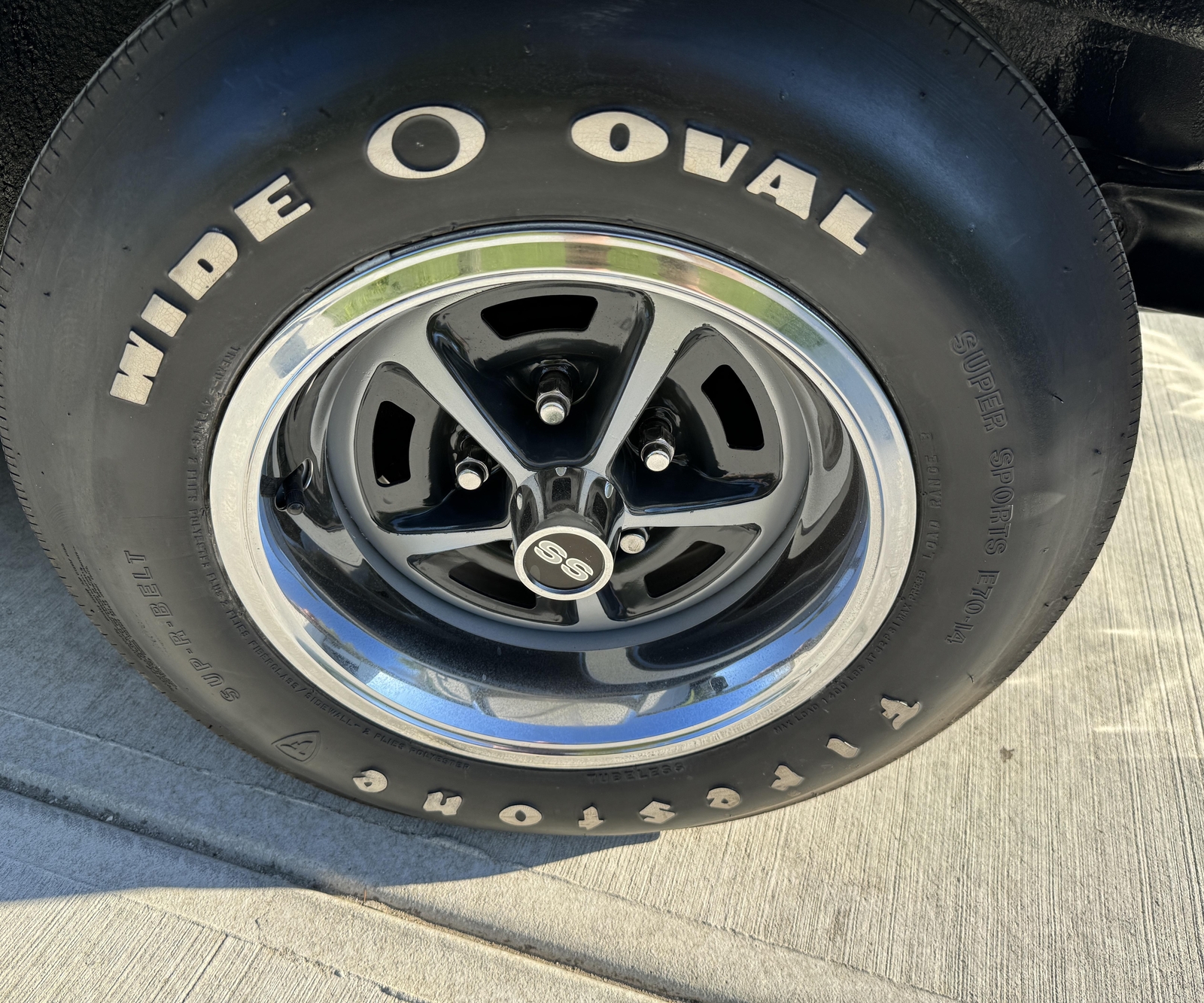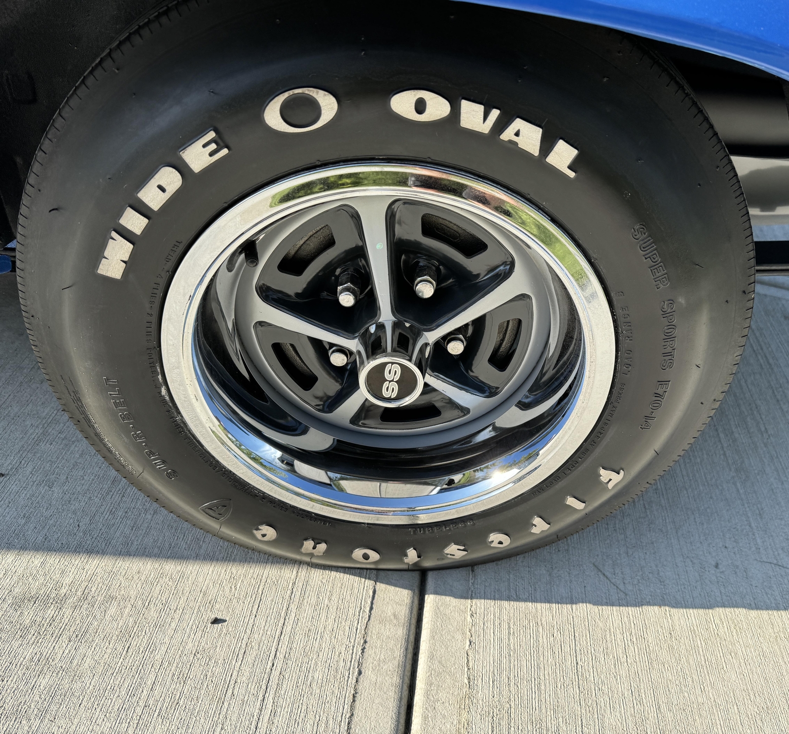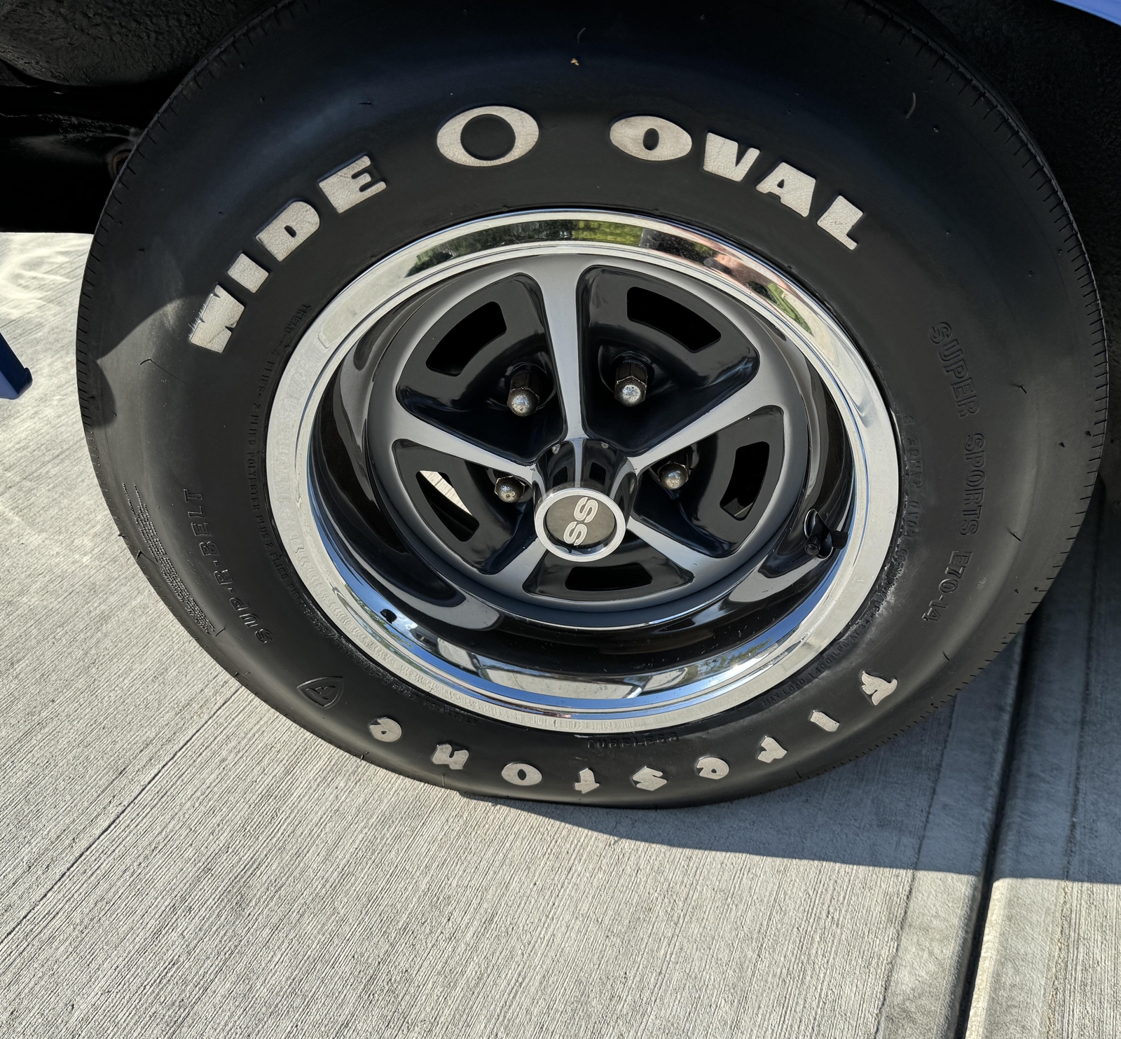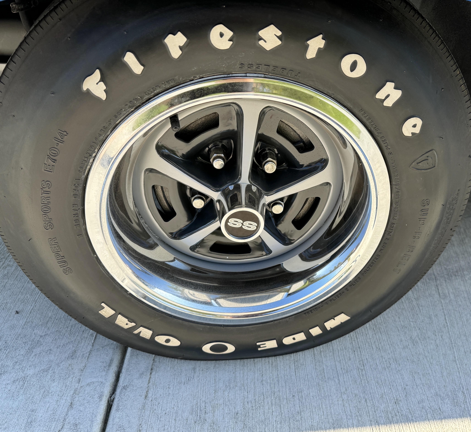 CORRECT RESTORED SS WHEELS WITH FIRESTONE WIDE O OVAL TIRES