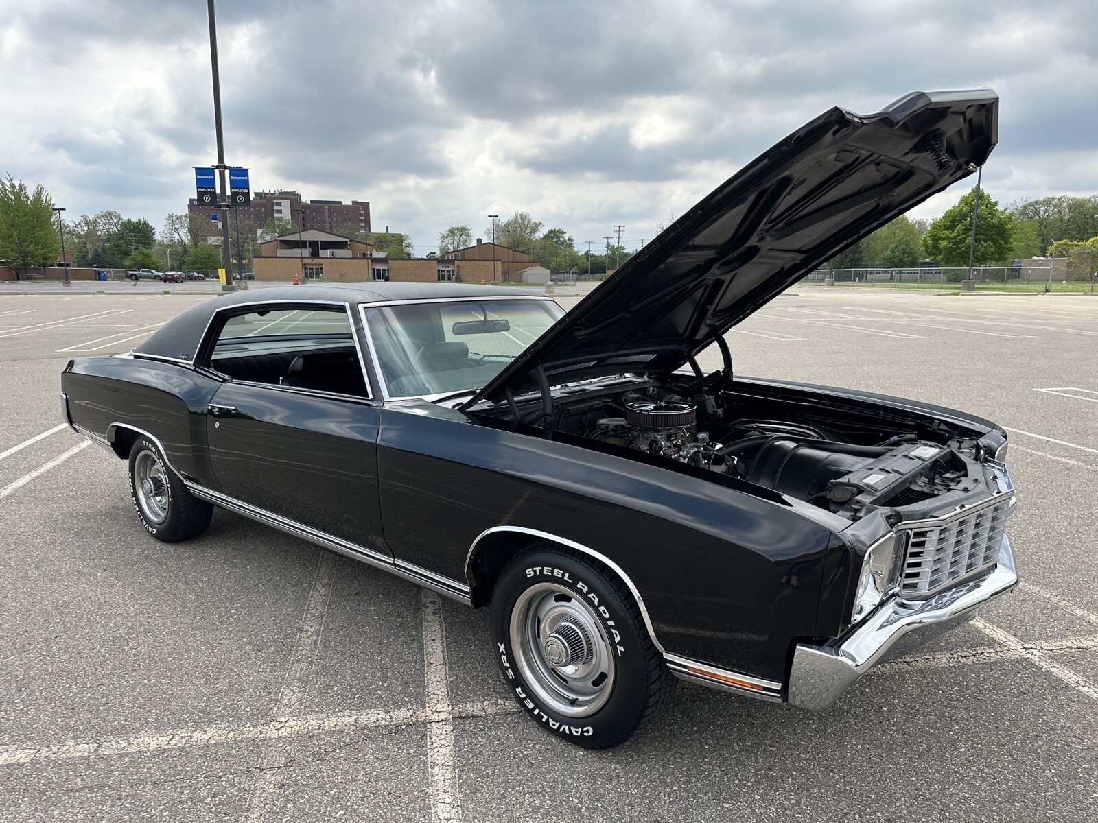 1972 Chevrolet Monte Carlo in excellent shape. Black, black bench seat interior, black vinyl top with Chevrolet rally wheels wrapped in raised white letter tires. Jasper 350cid V8 with Edelbrock Performer Aluminum Intake and Edelbrock AVS2 4 Barrel Carburetor. All have less than 5k miles and in excellent shape. TH350 was also rebuilt with less than 5k miles. Quarters, fenders and doors are new sheet metal, no bondo. Interior upholstery is all newer, no rips or tears. Awaiting a retrofit radio. Call or text for any additional information. Can help with shipping anywhere in the world. Pre purchase inspections welcomed. No PayPal, No Escrow Payments. Phone calls preferred. Cash in person, wire transfer or certified check from major bank.Vehicle Details