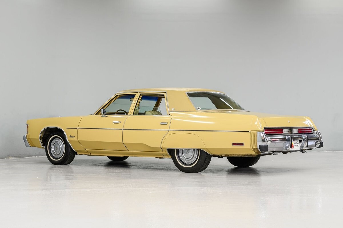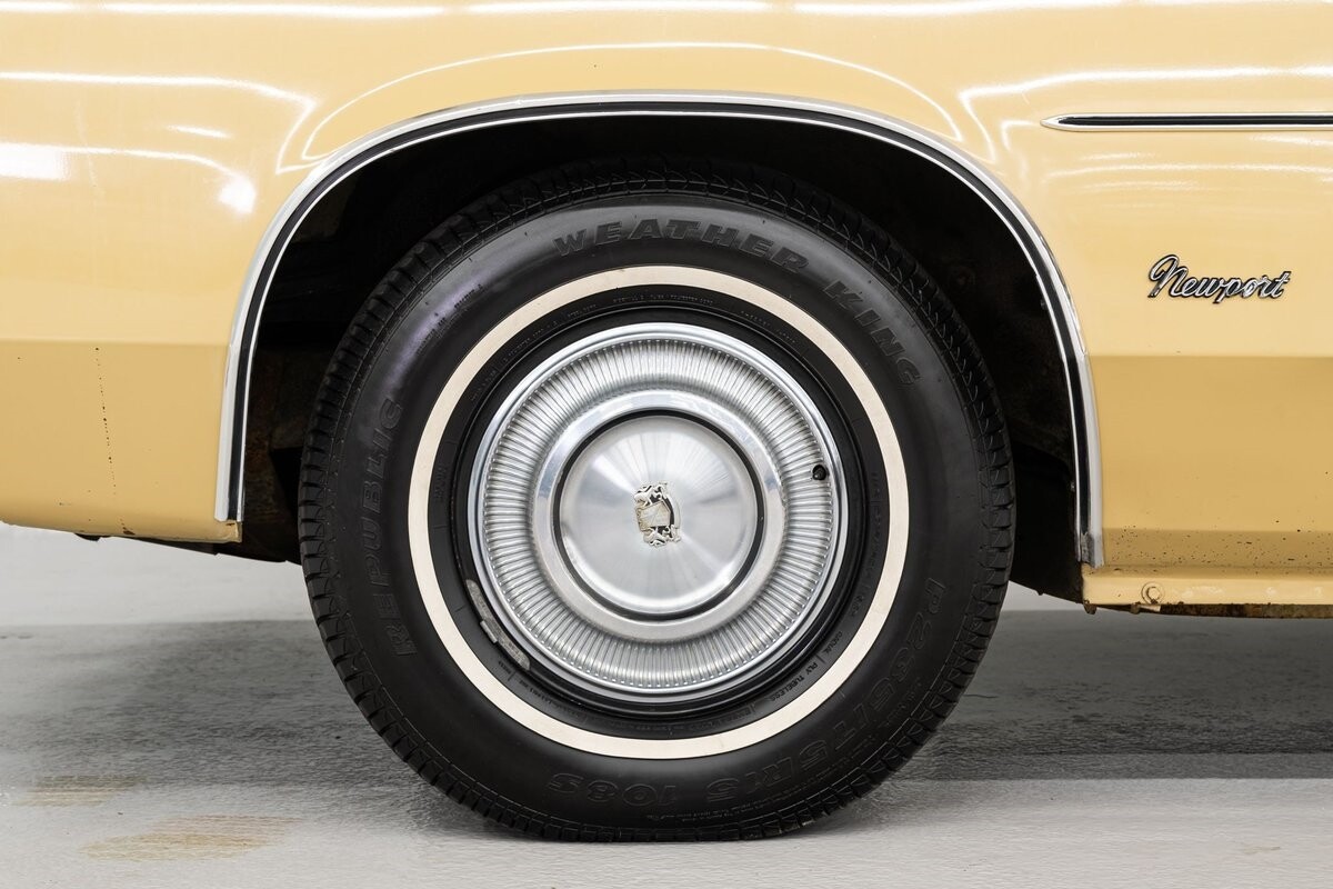 This 1977 Chrysler Newport sedan is in virtual original condition and the current owner believes that the indicated mileage of 57,800 is accurate. The exterior is very, very straight and the factory Jasmine Yellow finish is in good condition. There is a wealth of chrome, rear fender skirts and a complementary full vinyl top that is in excellent condition - this Chrysler appears to have been garage kept. The stunning Brougham cloth interior shows virtually no wear and dashboard, door cards and headliner are outstanding. Convenience features include a factory AM/FM sound system, cruise control, tinted windows and a fully operational factory air conditioning system. Horsepower is provided by what is said to be the original 400ci 'B-series' V8 with factory output of 205hp that has never required a rebuild. We are told that the carburetor was replaced at some point and the 'wedge' is running superbly. It is backed by a Chrysler 3-speed TorqueFlite automatic transmission and stock differential. The chassis is equipped with power steering and power disc/drum brakes. Factory 15" wheels mount nice whitewall radial tires. There are few of these beautiful Newports around today - fewer still in this fine original condition. This 'Cruiser-Extraordinaire' belongs in your MOPAR garage. ALL VEHICLES SOLD "AS IS".