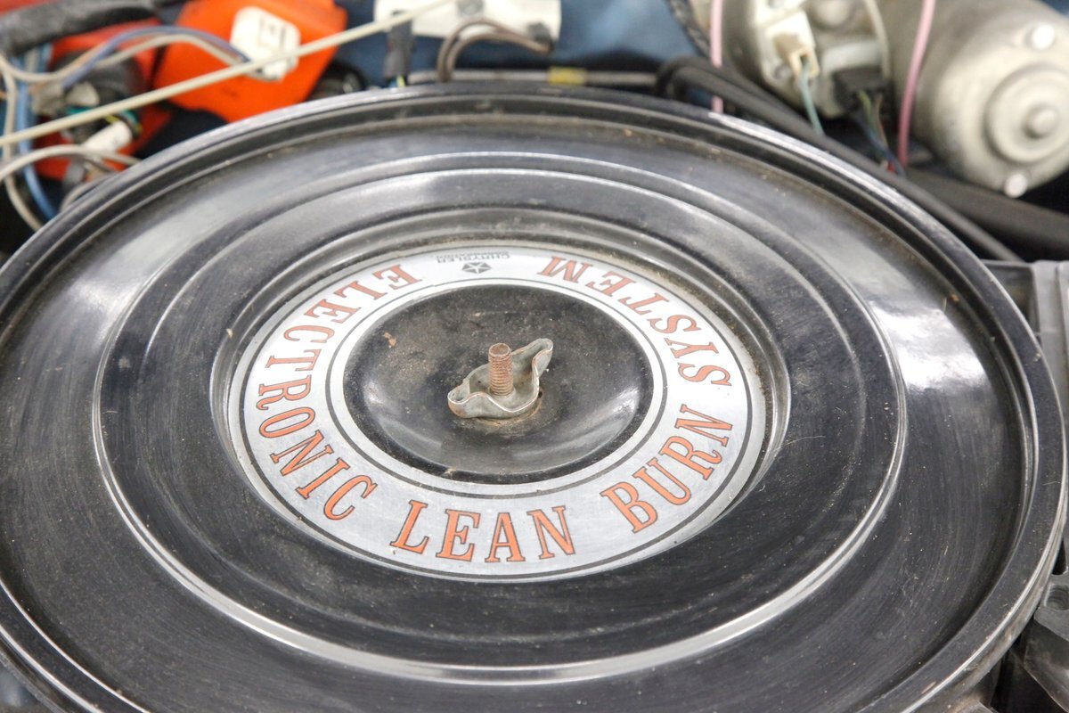 A flip of the hood and we see a government over-regulated with emission controls engine in 318ci V8 configuration. It is a numbers matching engine and has a single 2-barrel carburetor and an A904 3-speed automatic transmission on back. There is an 8-1/4 inch rear axle on this car.
