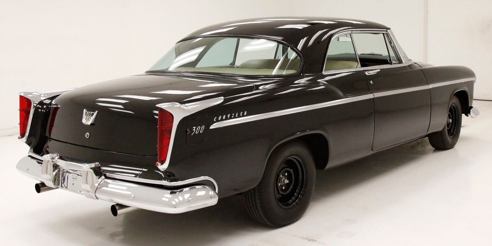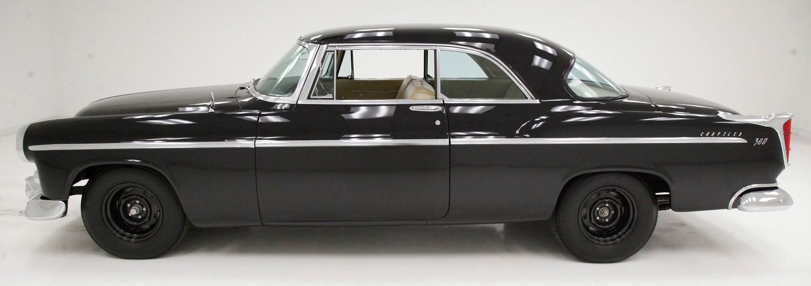 For consignment, adorned with a deep black paint job, a correct drive train featuring an original dual-quad Hemi, the fact that it is extremely rare (only 1,725 were built), and you have one of today's strongest automotive investments currently available. It's lower, wider, and almost devoid of extraneous trim and definitely had the competition looking over their shoulders when this baby hit the showroom floors. Having won 37 Grand National and AAA races in its inaugural year, along with holding a 165mph speed record, Tom McCahill said that the 300 was a "hardboiled magnificent piece of semi-competition transportation built for the real automotive connoisseur". With a $4,110 sticker price new, this was the second most expensive car Chrysler had to offer. Born and coming to our Hallowed Halls in its factory correct colors and sporting the legendary Hemi V8, this car was, and still is, a powerhouse to be reckoned with.