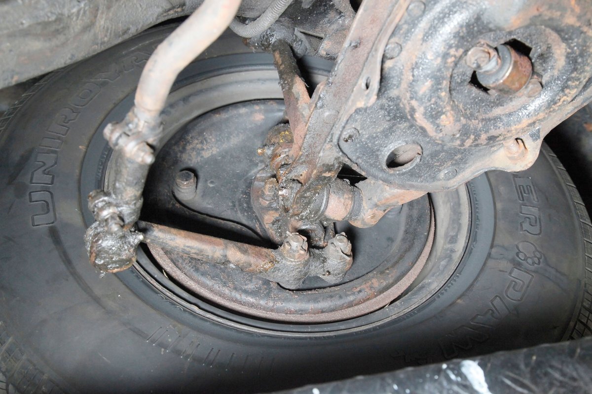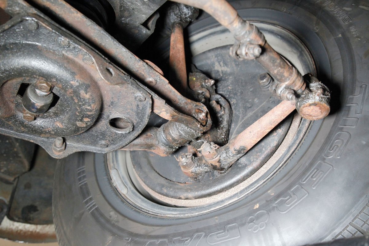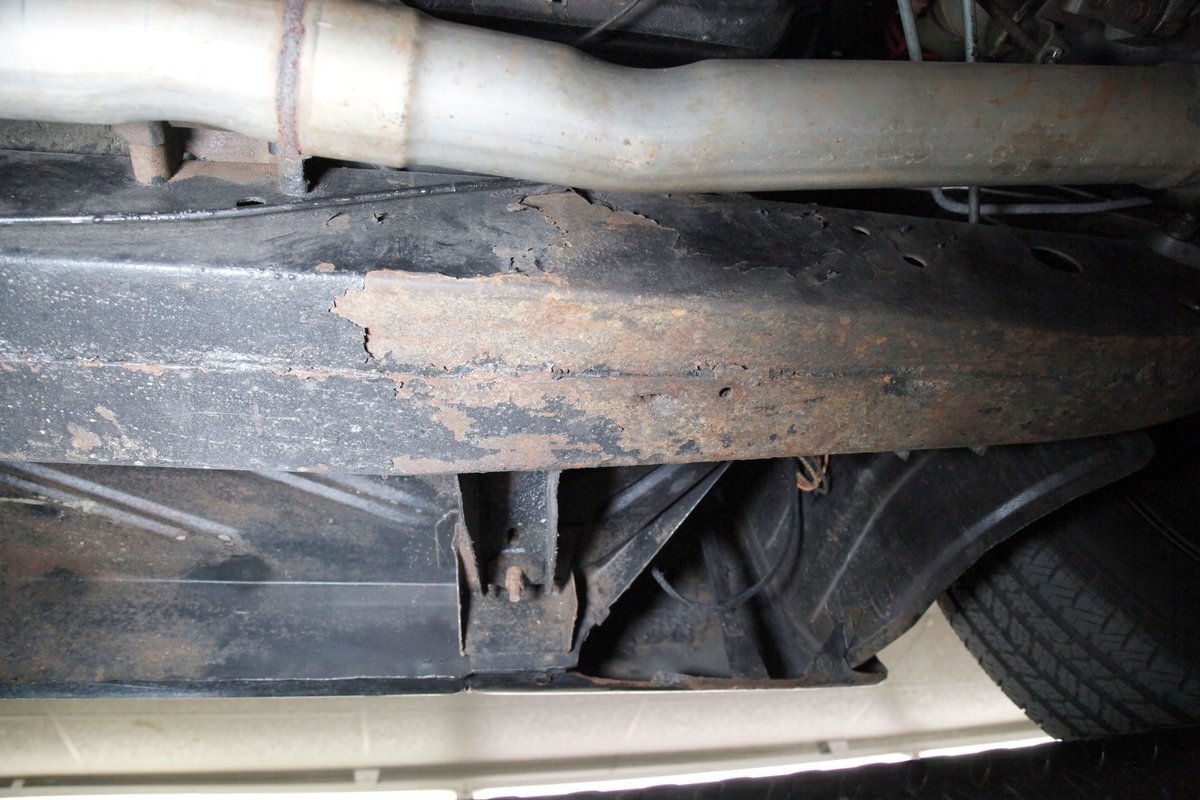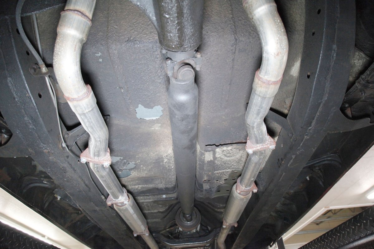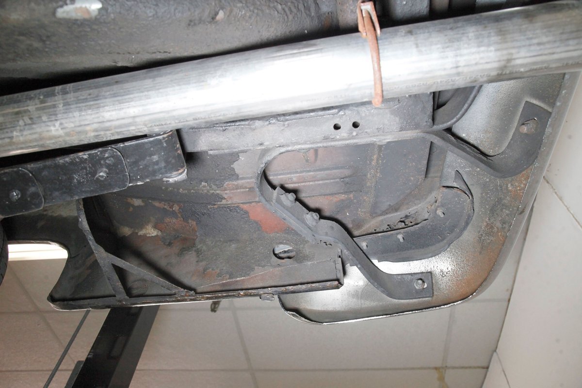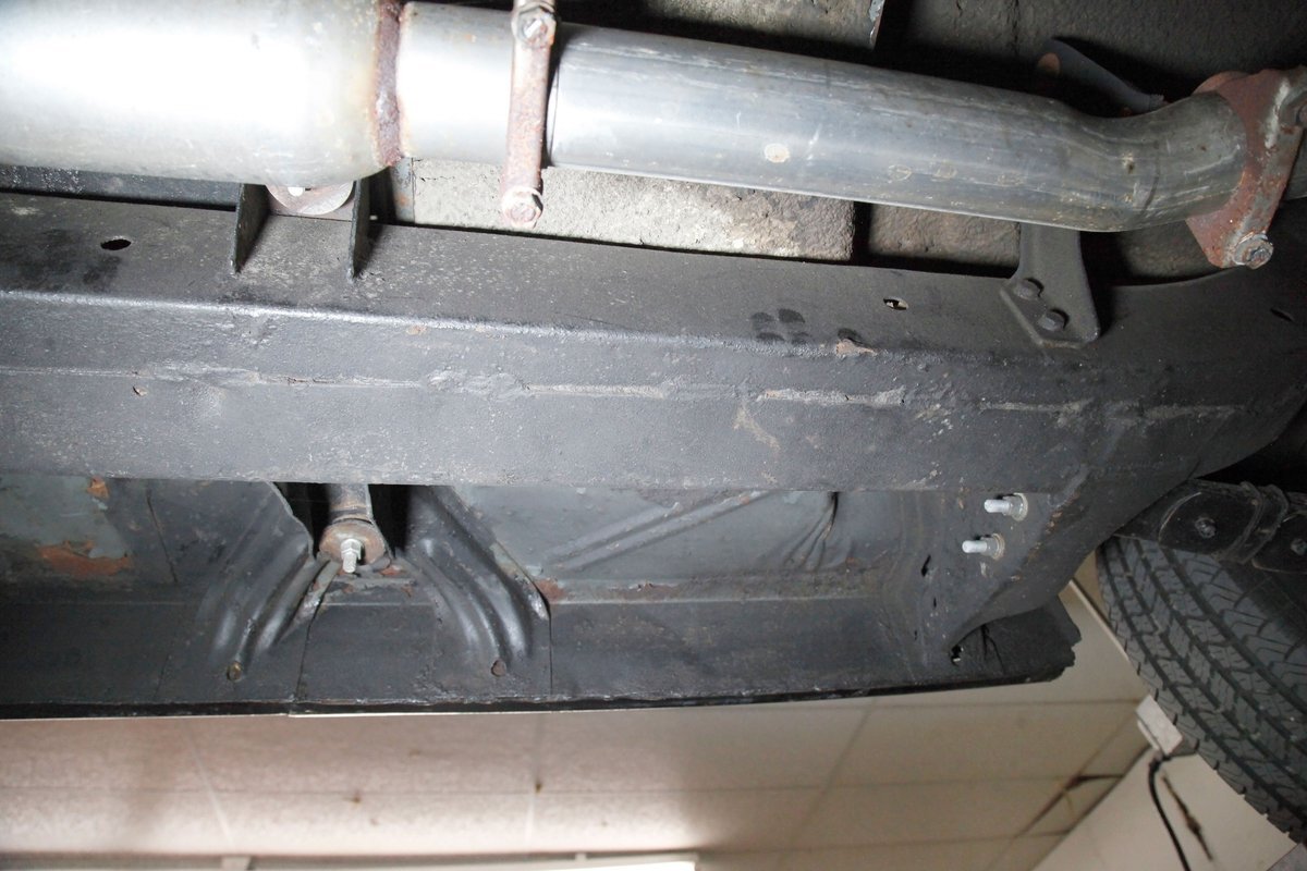 Here we find a heavy coating of rustproofing and can see some chips exposing the factory steel underneath. A strong black painted frame provides the backbone for the body and bolt ons and we note the body hangers remain intact as do the inner rockers. Custom built headers are on along with like new glasspack muffler equipped dual exhaust and independent coil spring suspension is in front and leaf springs for the back provide the ride. Drum brakes are on all 4 corners with the added benefit of a dual reservoir master cylinder.