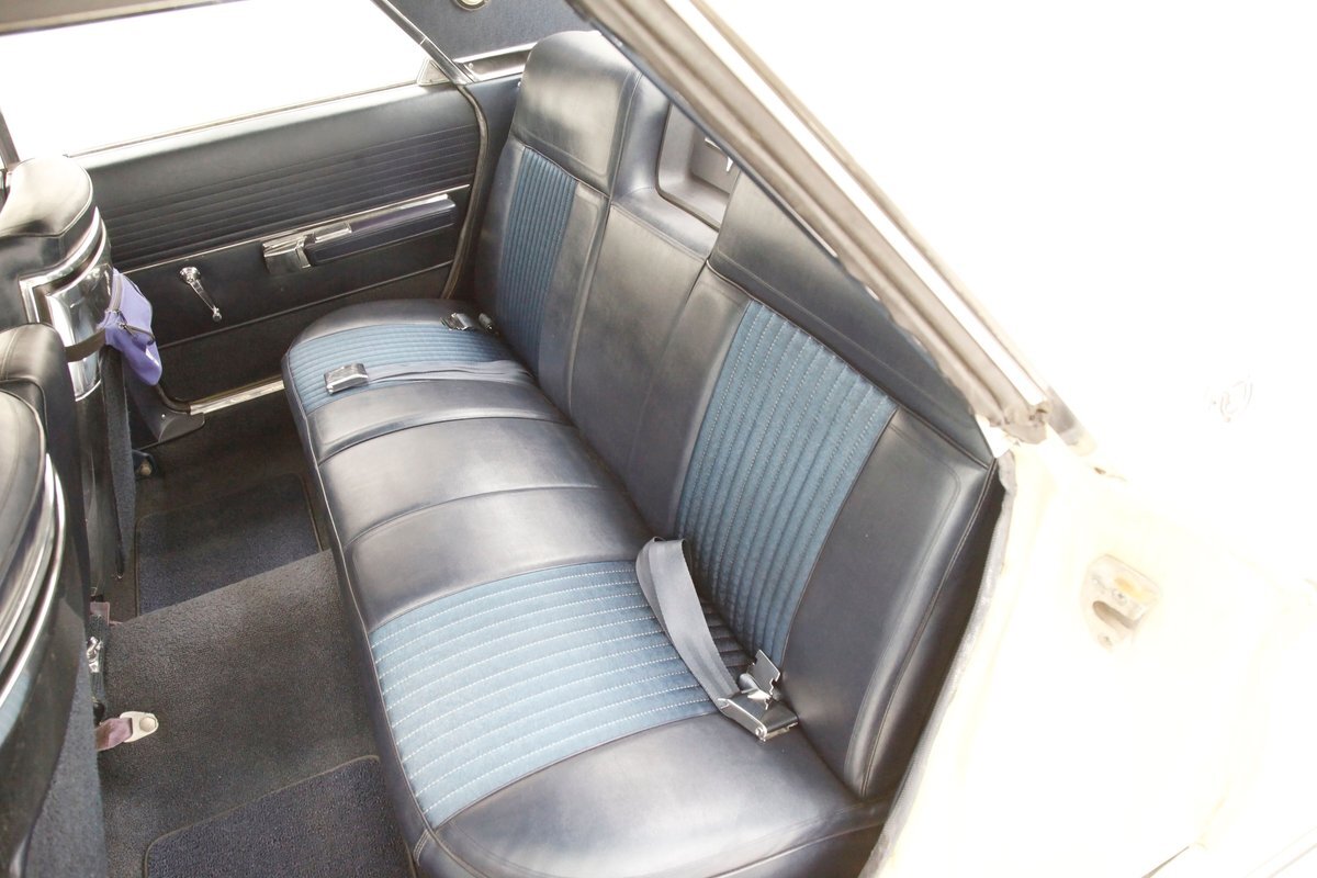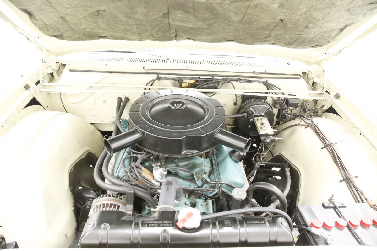 A V8 of 383 cubes with hardened valve seats pumps out 305hp and is fed by a single 2-barrel carburetor, sits in a clean but original engine bay. Transmission is a correct A727 Torqueflite 3-speed automatic which sends power back to an 8 3/4" SureGrip rear axle. All looking good in the engine cosmetic department, which screams period correct and has the original radiator rebuilt and recored to a 3 row unit for superior cooling power.