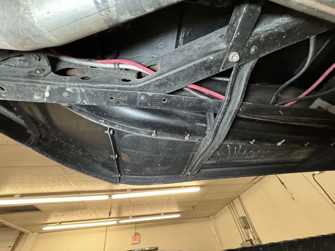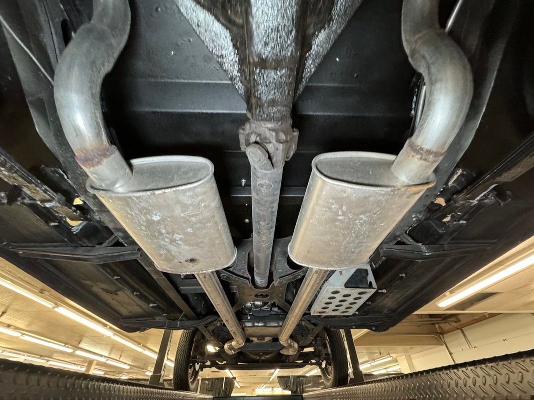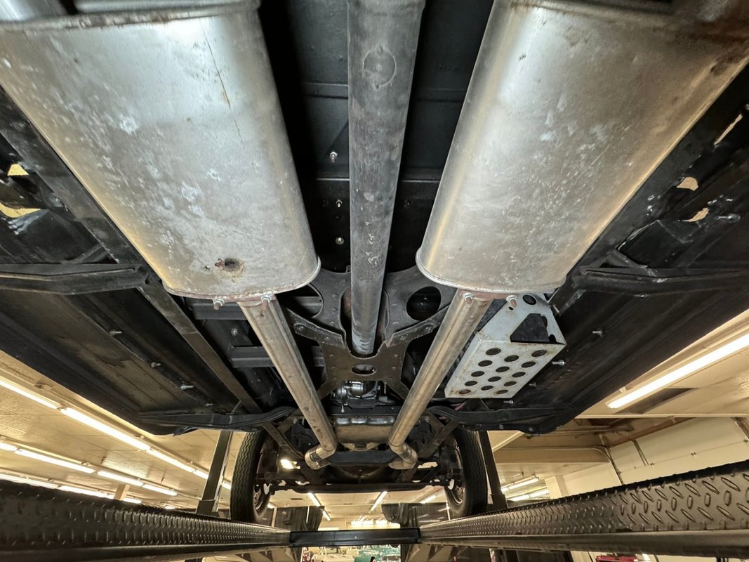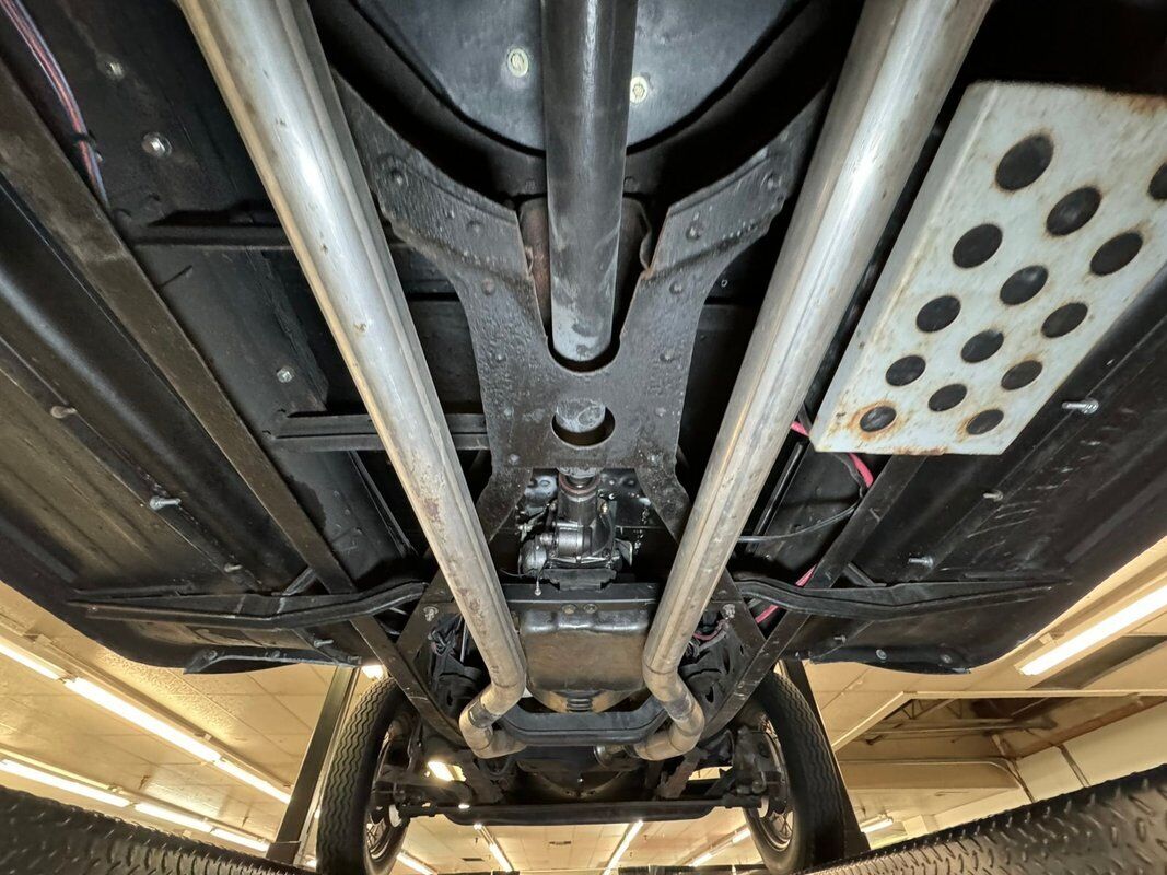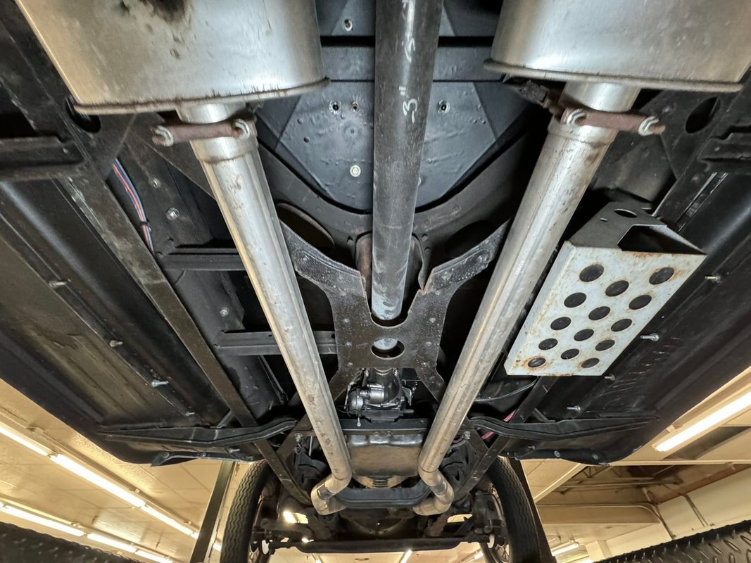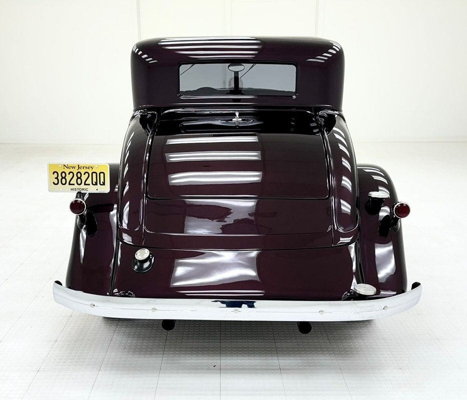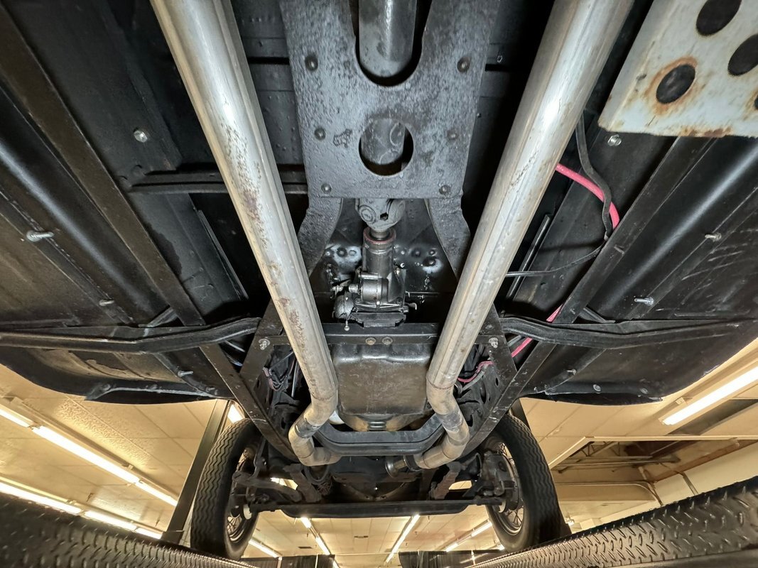 Our consignor states the undercarriage has been undercoated, and it is relatively clean and dry underneath in uniform black. The dual exhaust flows back from the headers into a pair of turbo mufflers then exits discreetly just below the rear bumper. Leaf spring suspension, as it was in 1933 is found front and rear. We note a bit of residual oil on the rear differential.