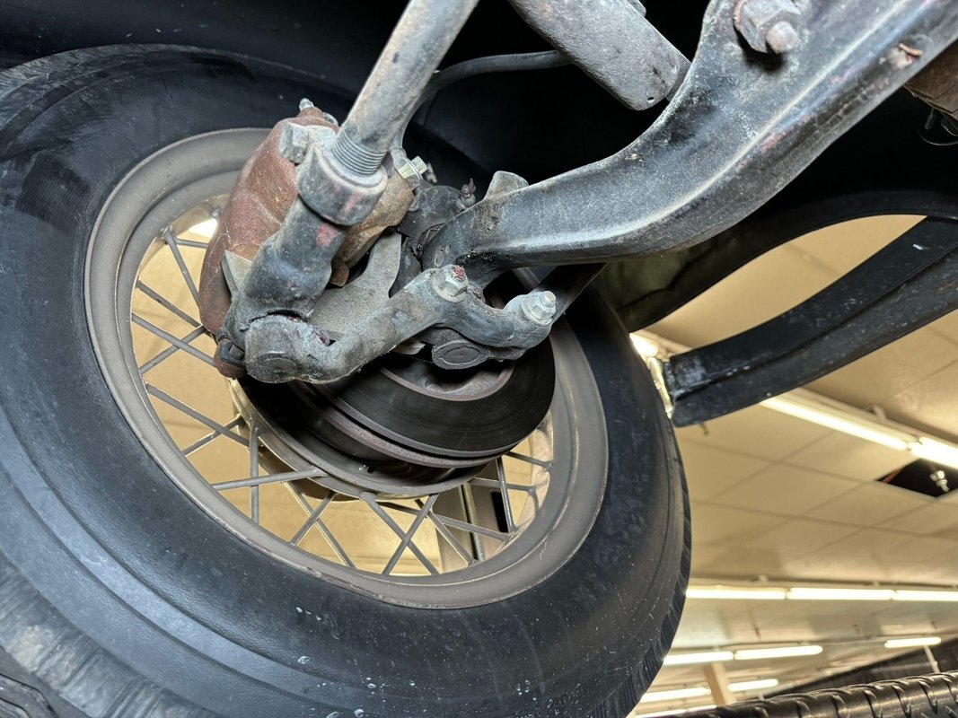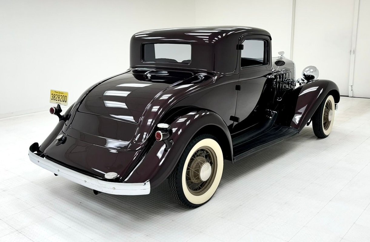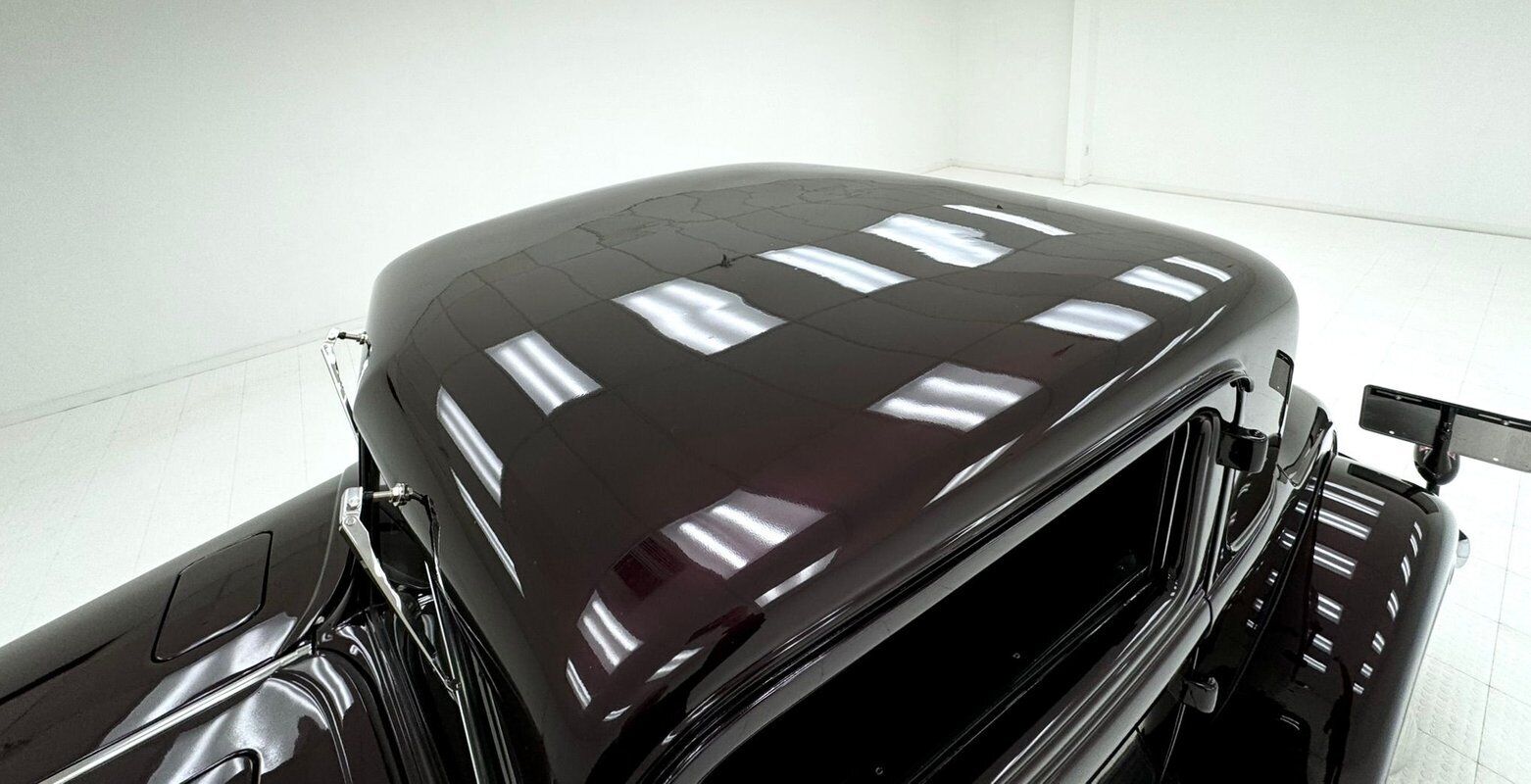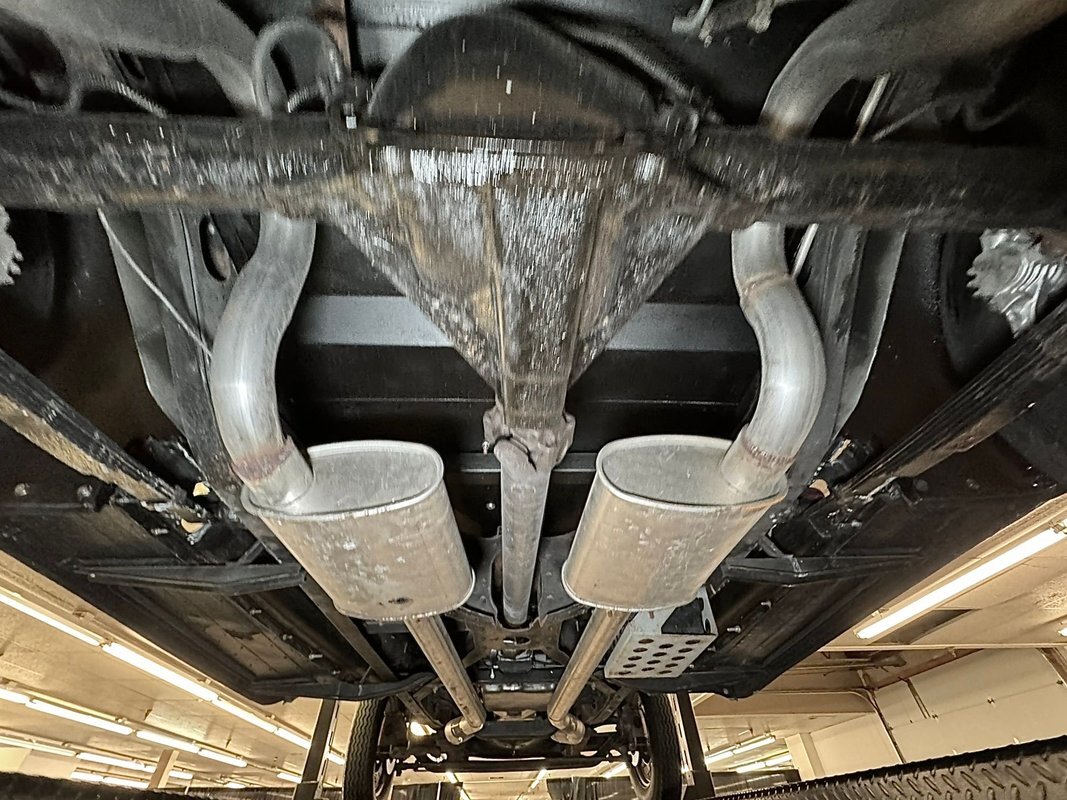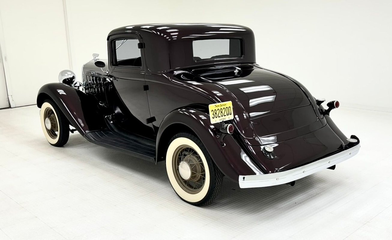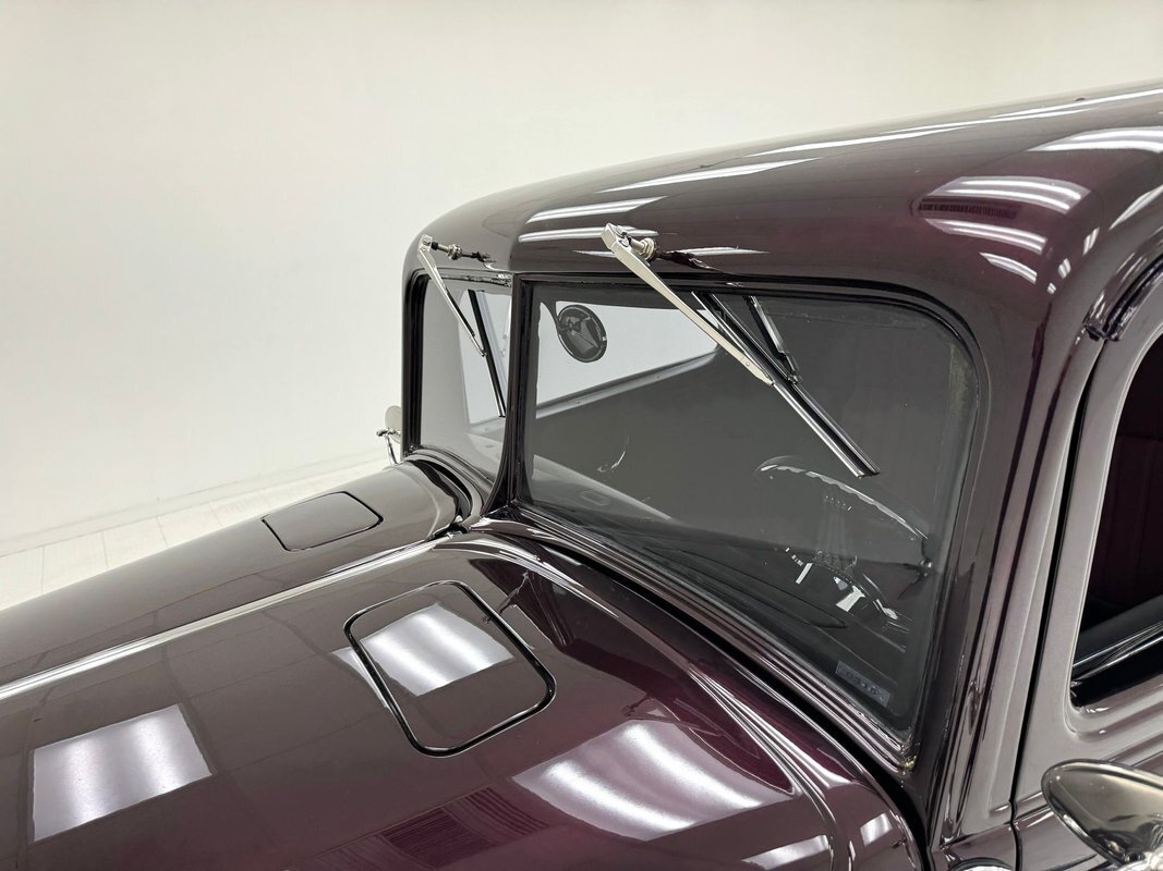Our consignor states the undercarriage has been undercoated, and it is relatively clean and dry underneath in uniform black. The dual exhaust flows back from the headers into a pair of turbo mufflers then exits discreetly just below the rear bumper. Leaf spring suspension, as it was in 1933 is found front and rear. We note a bit of residual oil on the rear differential.